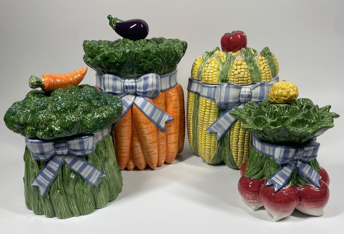 Fitz and Floyd Classics Hand Crafted Vegetable Garden Bouquet Canister Jar Set