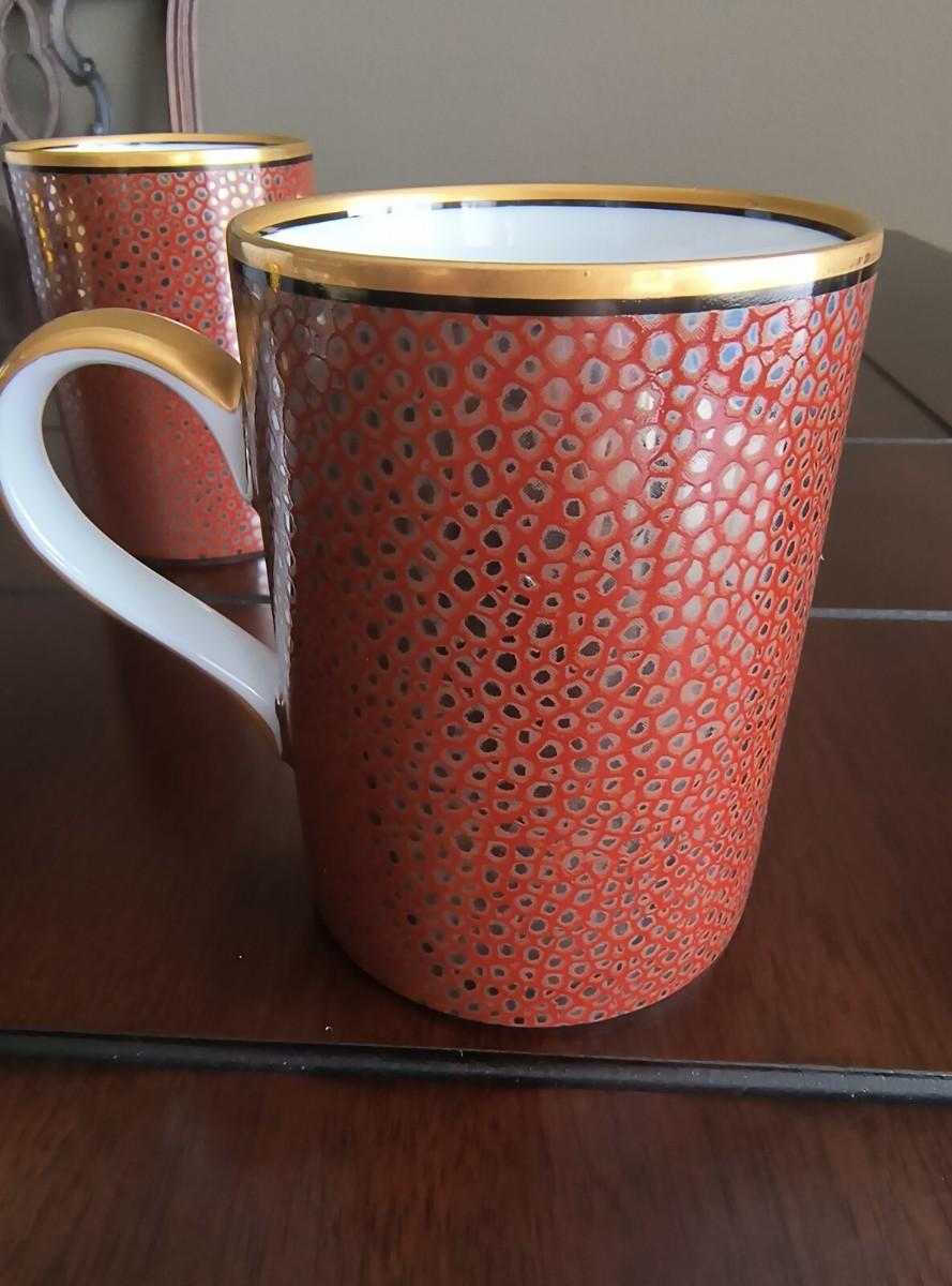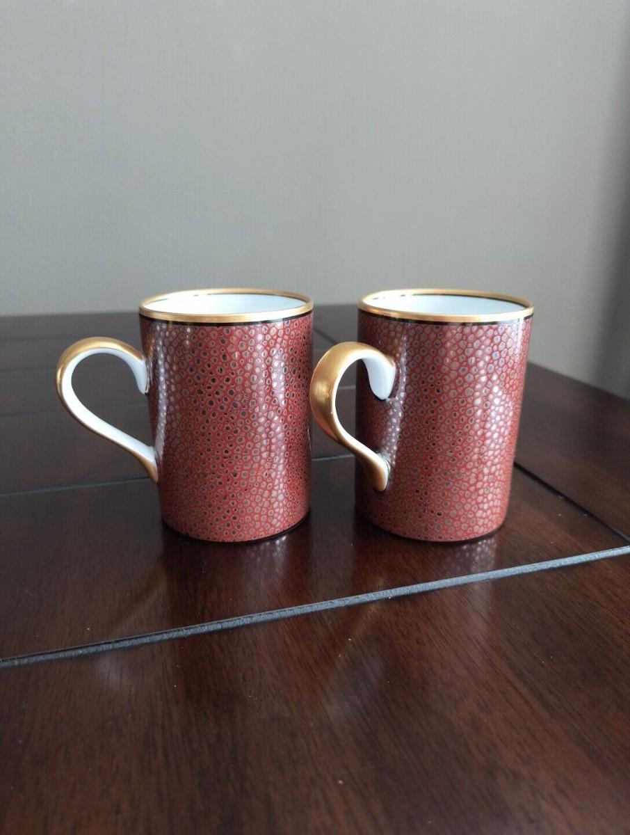 Fitz and Floyd shagreen coffee mugs mint, set of 2