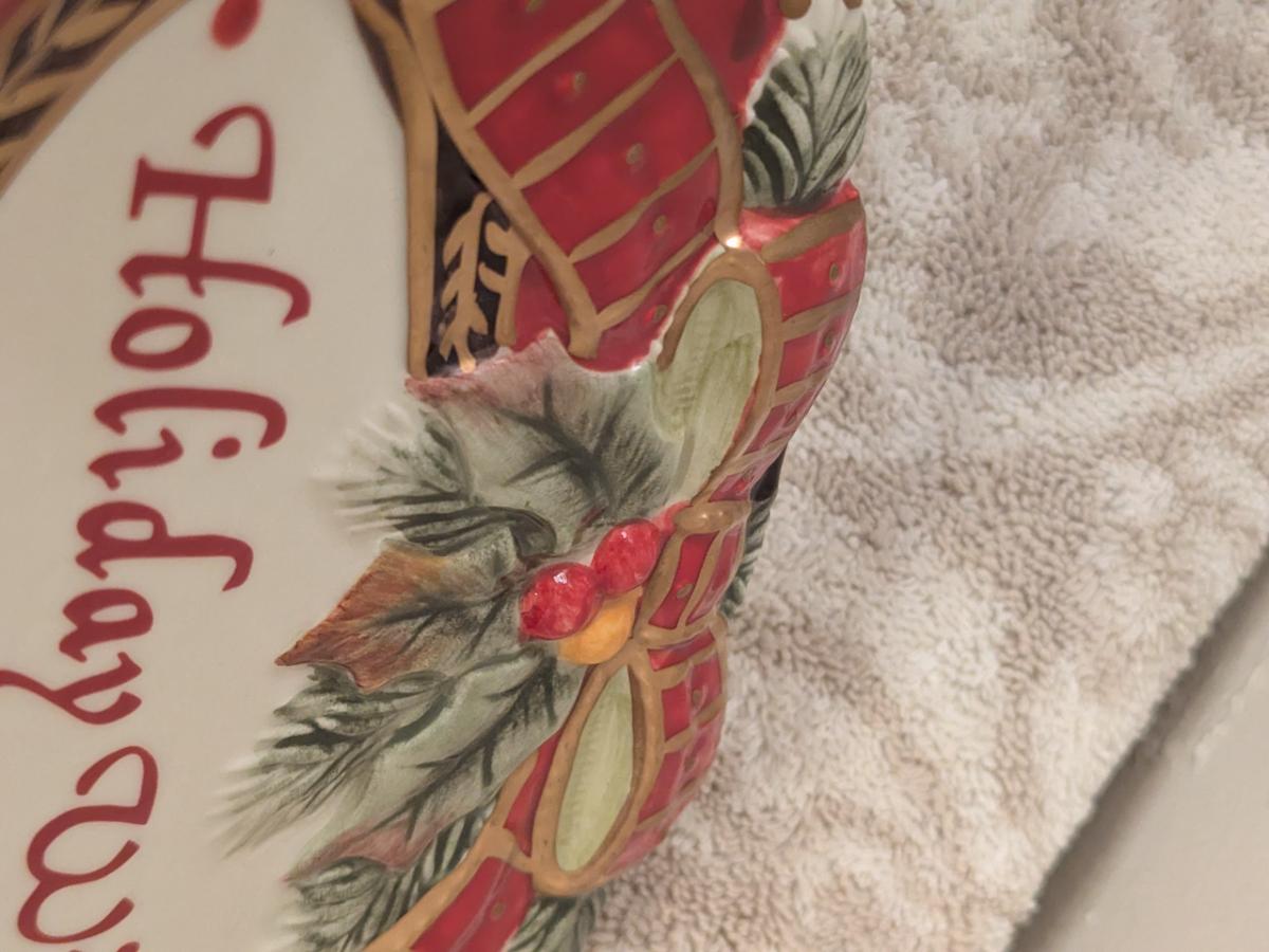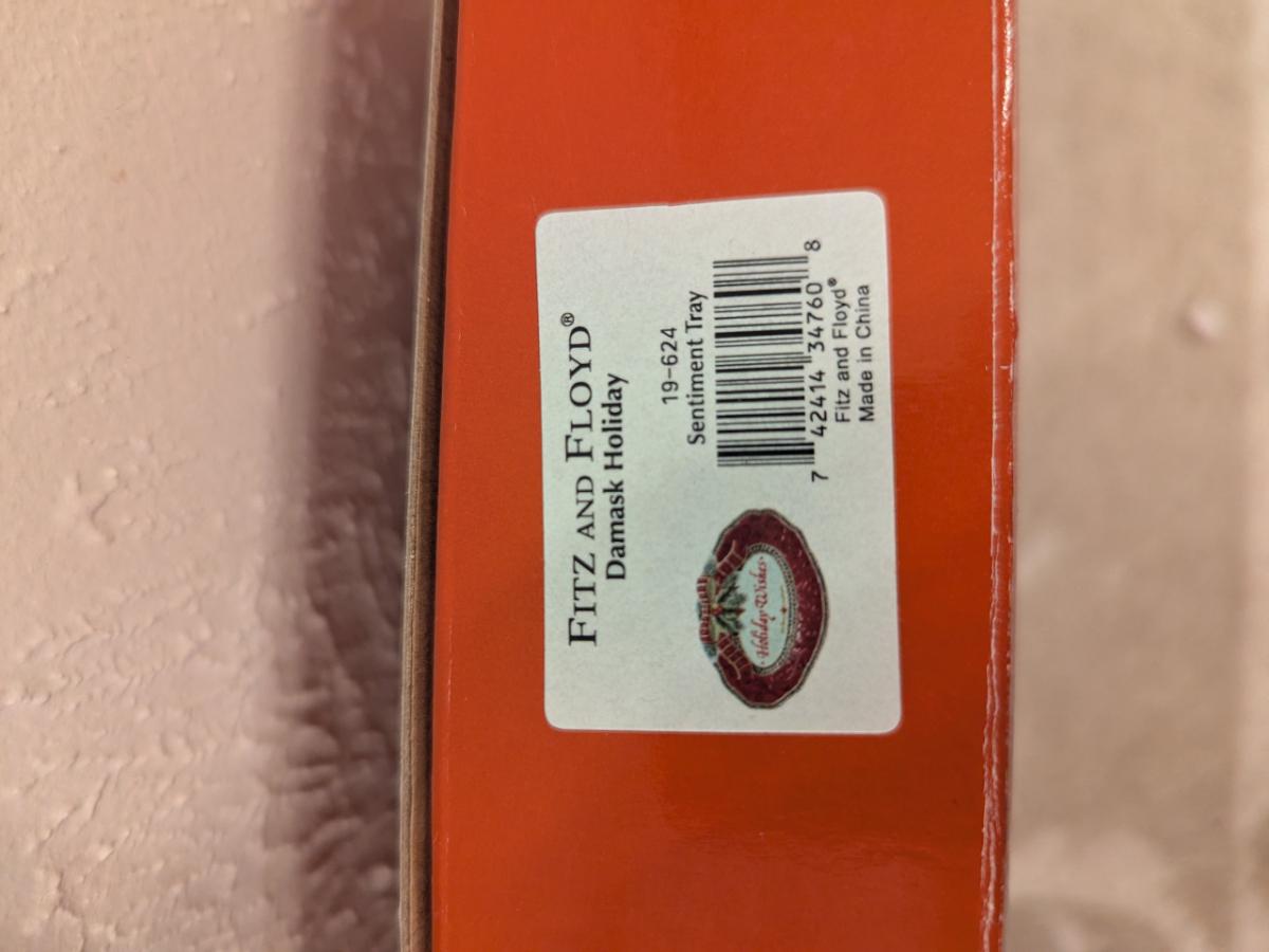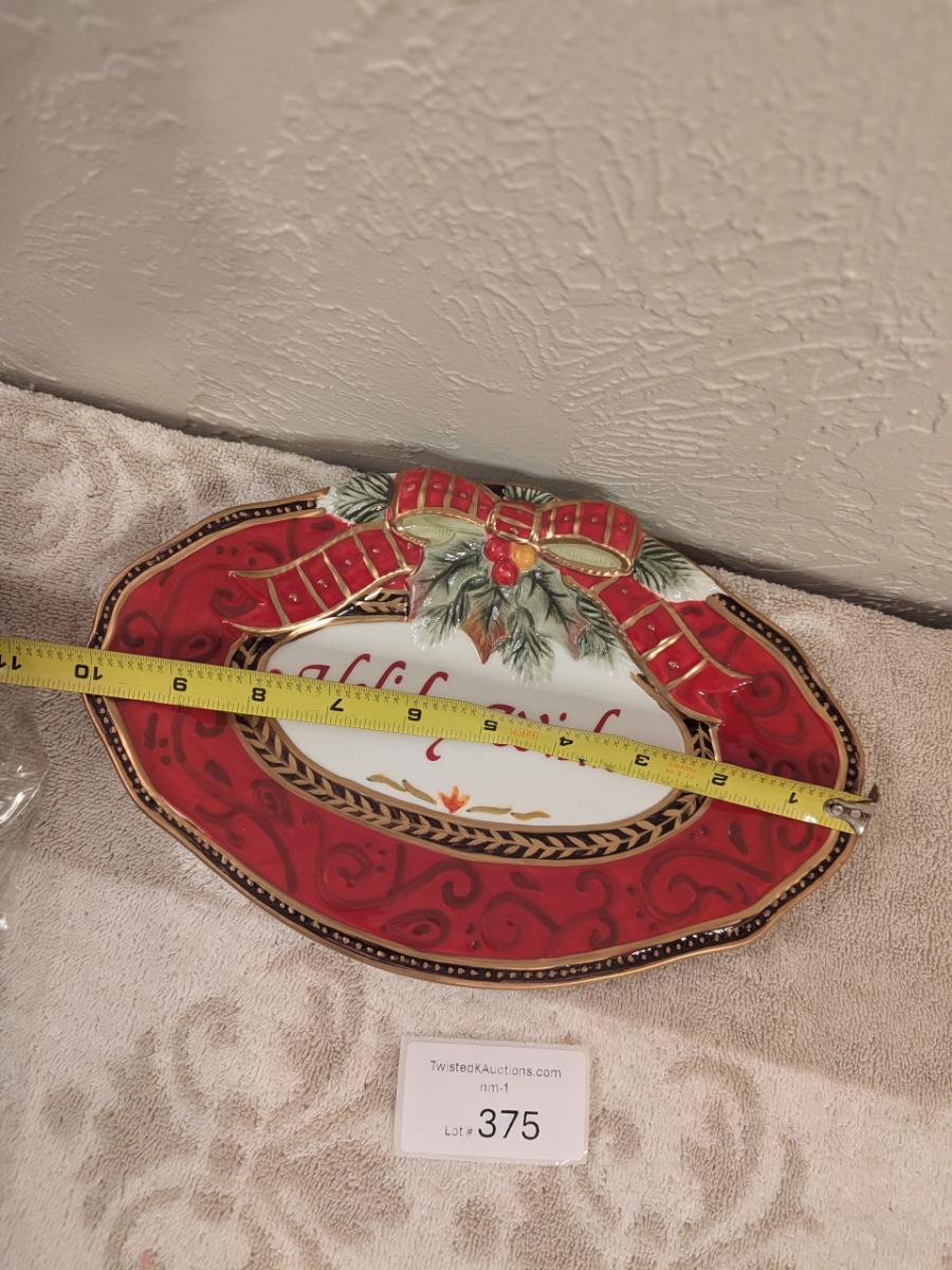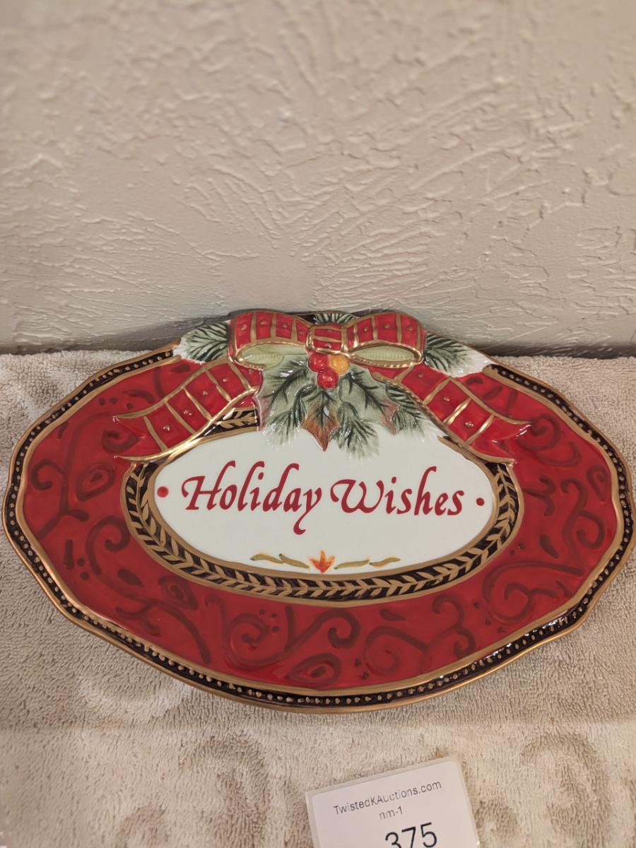 Fitz and Floyd Damask Holiday sentiment tray.