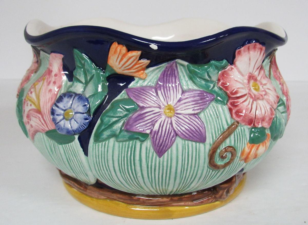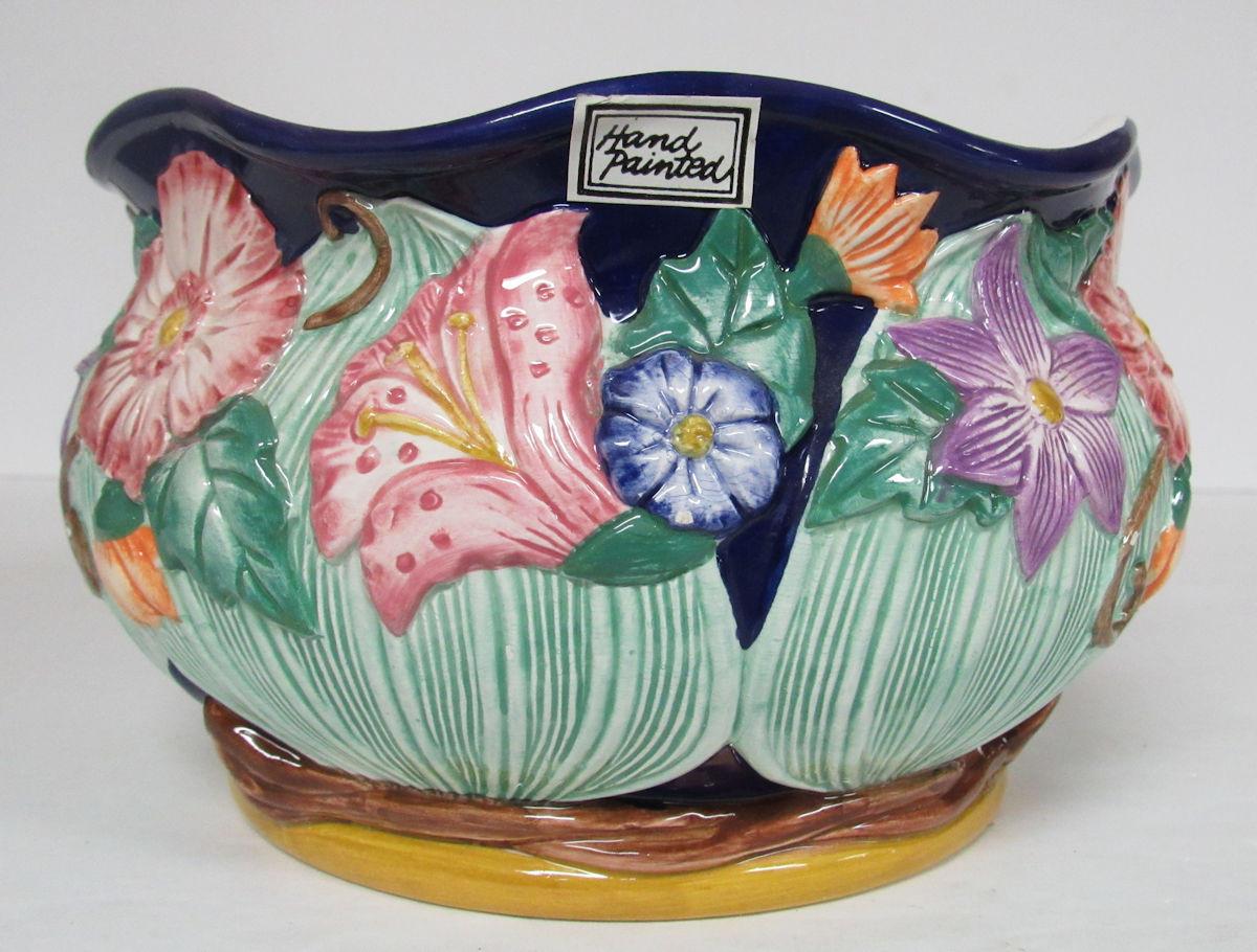 Pretty modern planter, a few paint chips, nothing too bad. Nice for garden.