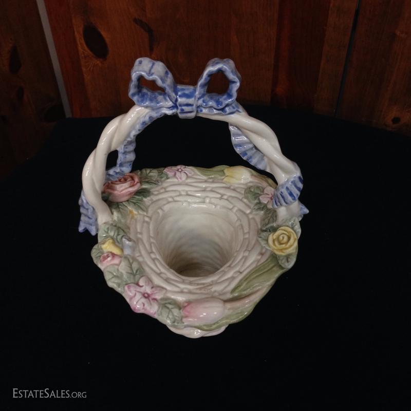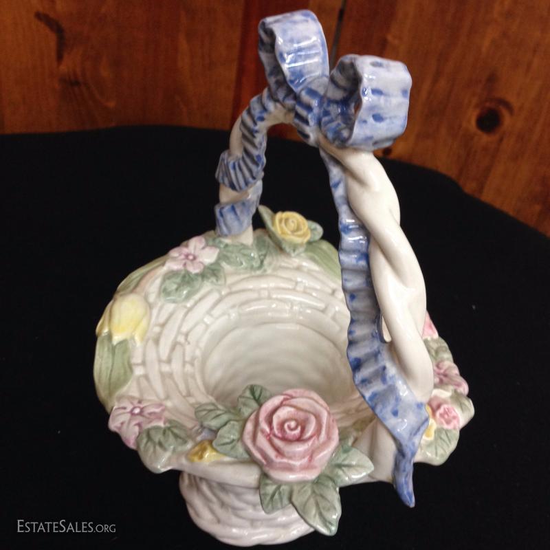 Fitz and Floyd Hand Painted Porcelain Spring Candy Basket