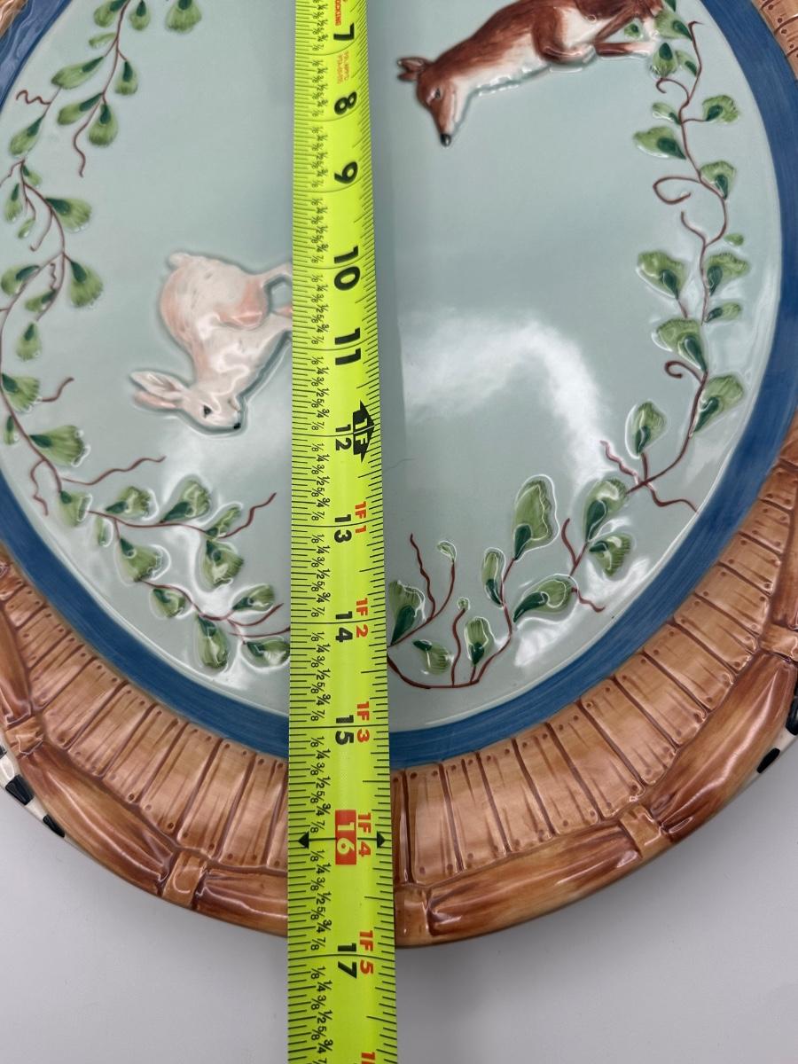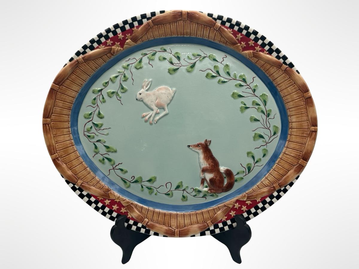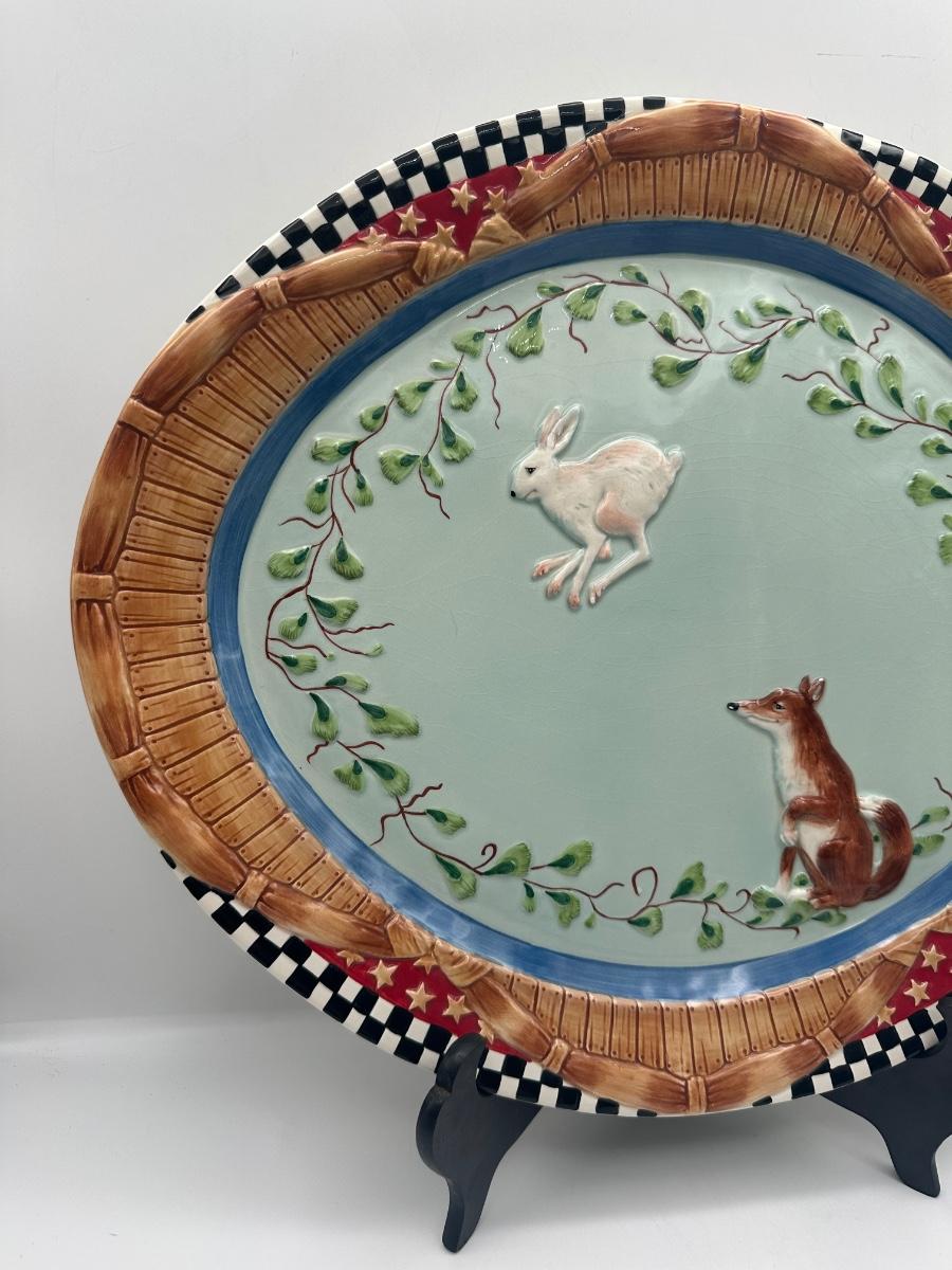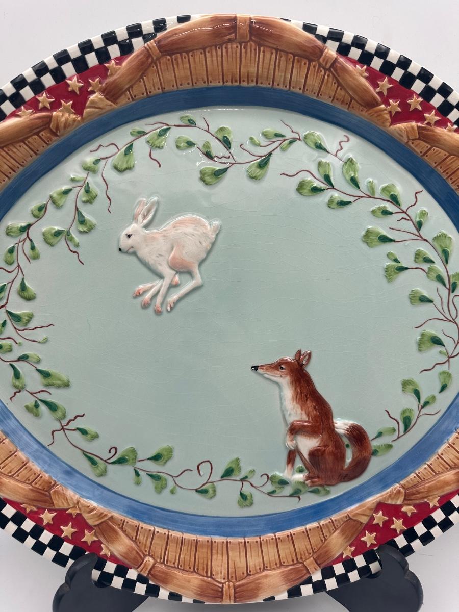 Fitz and Floyd Hand-Painted Woodland Platters with Fox & Rabbit