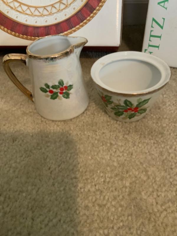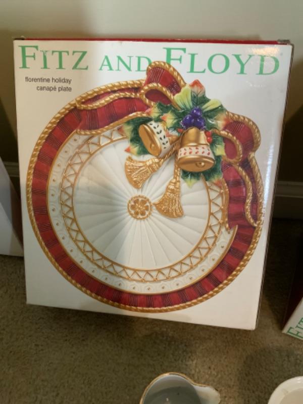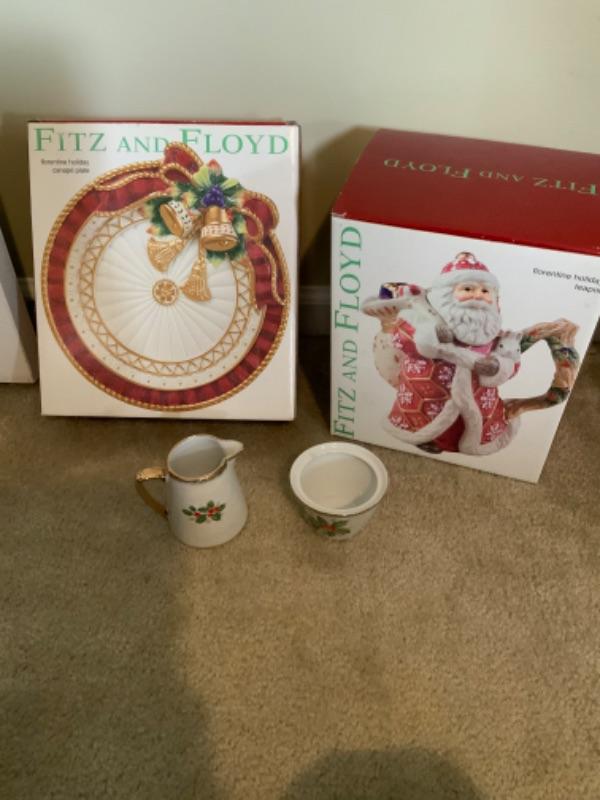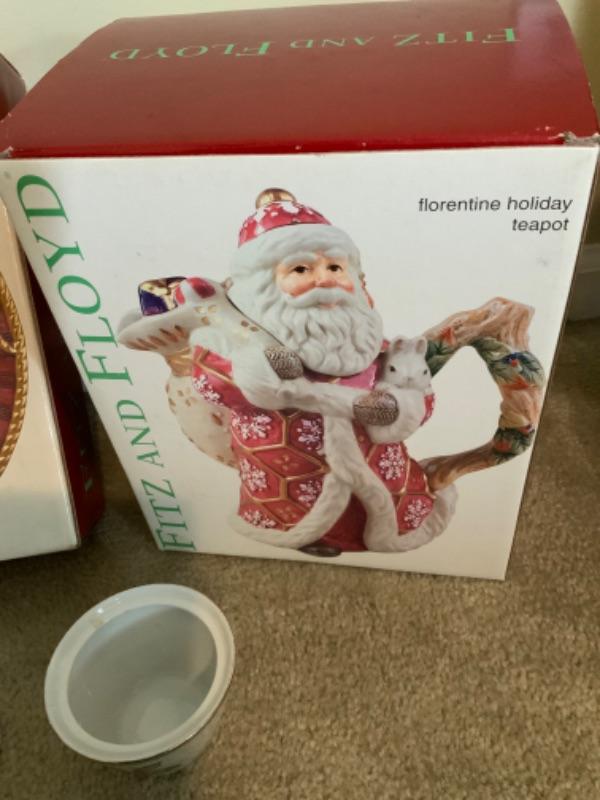 Fitz and Floyd holiday plate and tea pot, two miscellaneous pieces of holiday Decor lot 3039