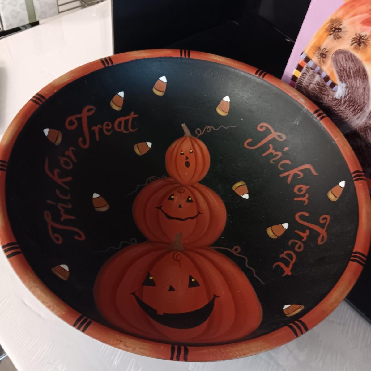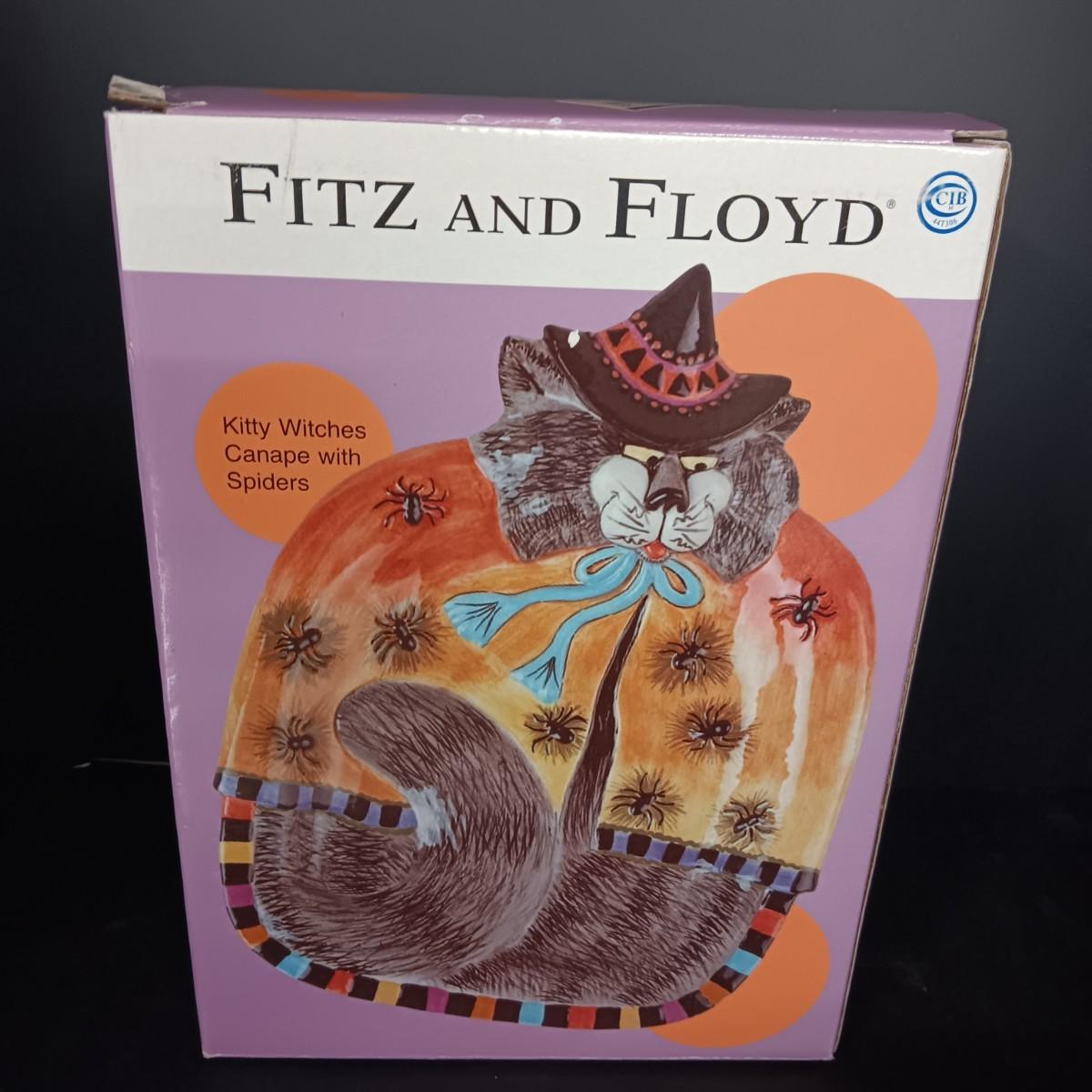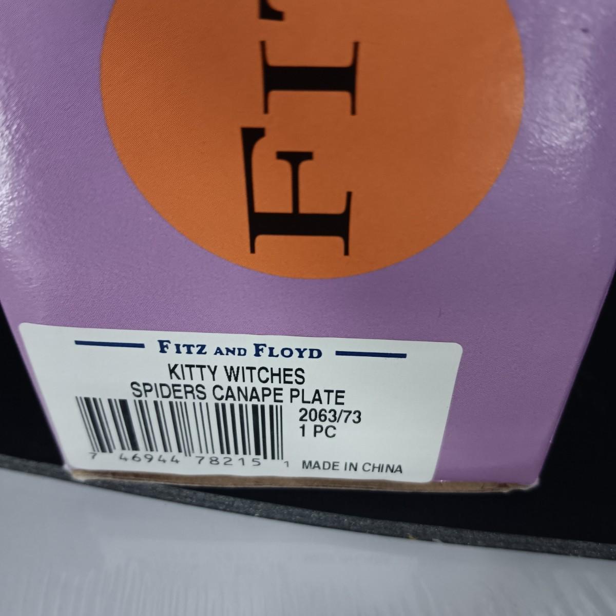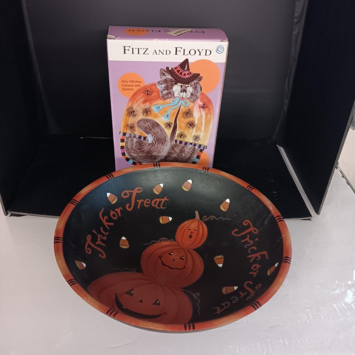 FITZ AND FLOYD KITTY WITCH SPIDERS CANAPE HALLOWEEN PLATE AND LARGE BOWL