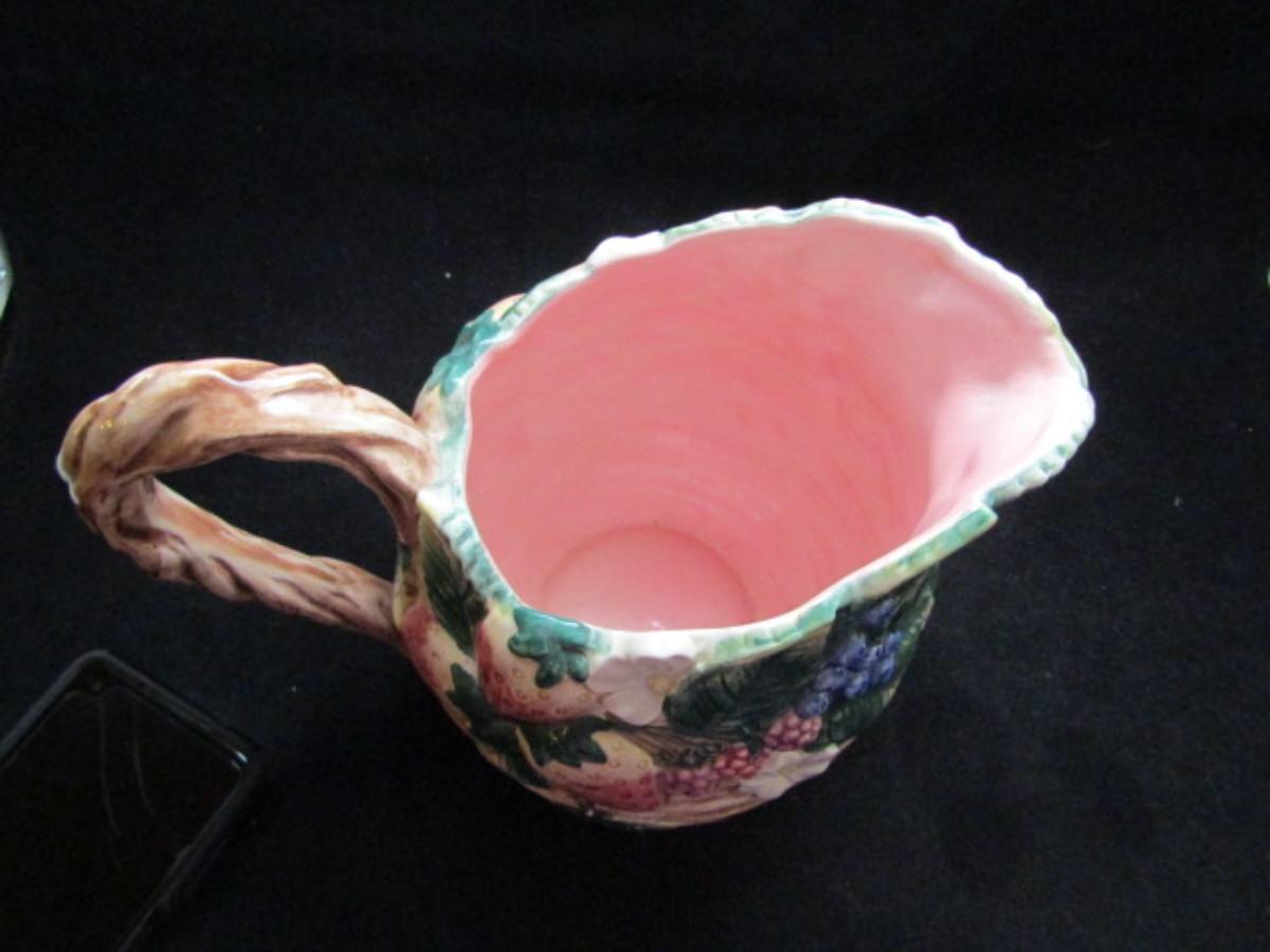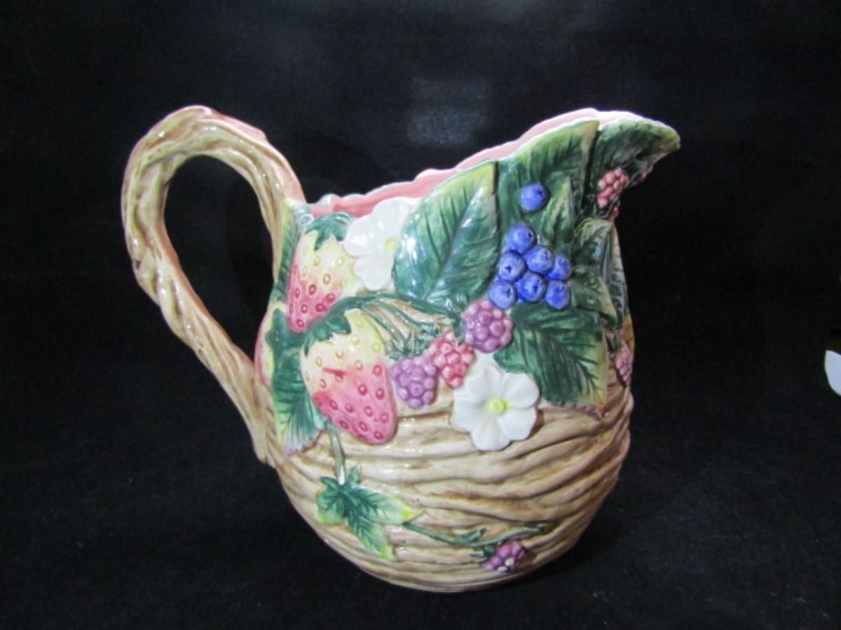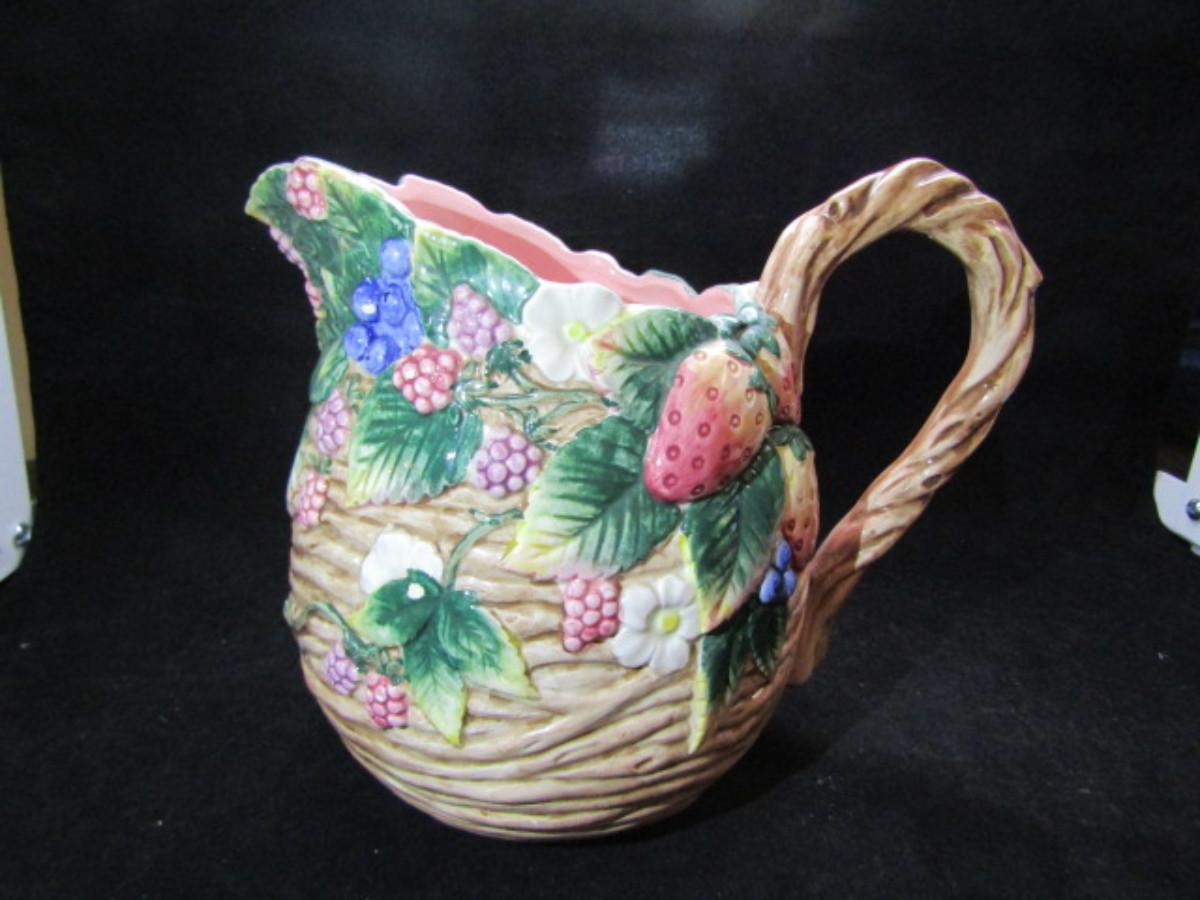 Vintage Fitz and Floyd Painted Ceramic Pitcher- Berry Design- 1 1/2 Qt Capacity (#322)