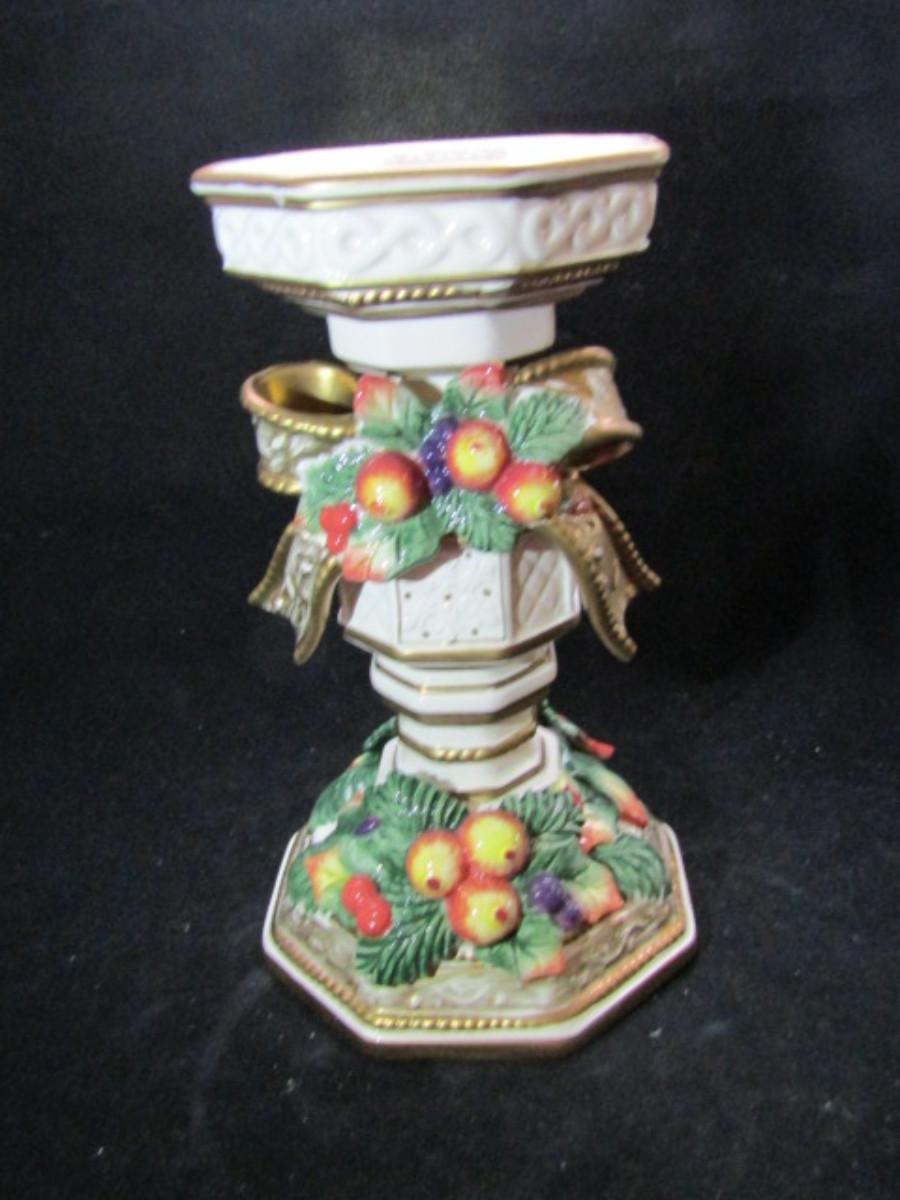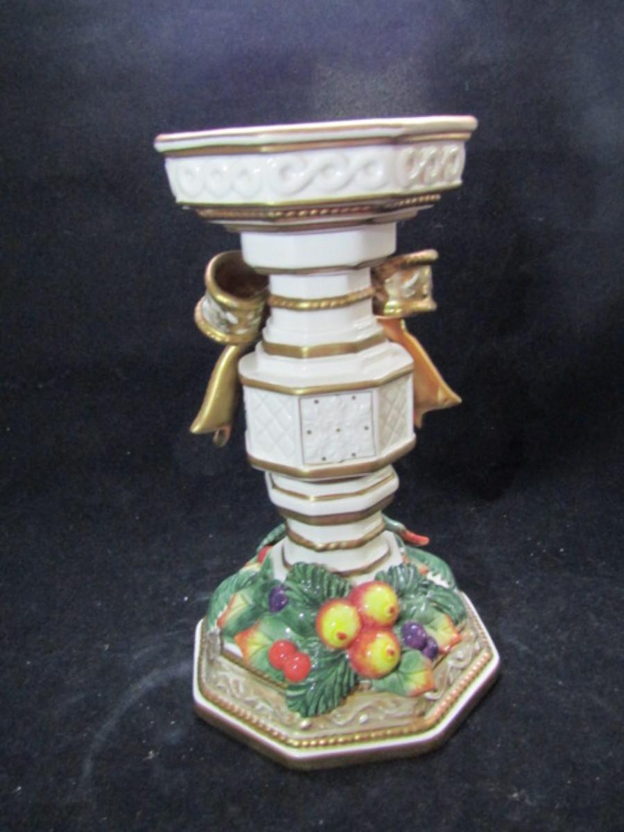 Fitz and Floyd Painted Ceramic Candle Stand- 'Snowy Woods' (#335)