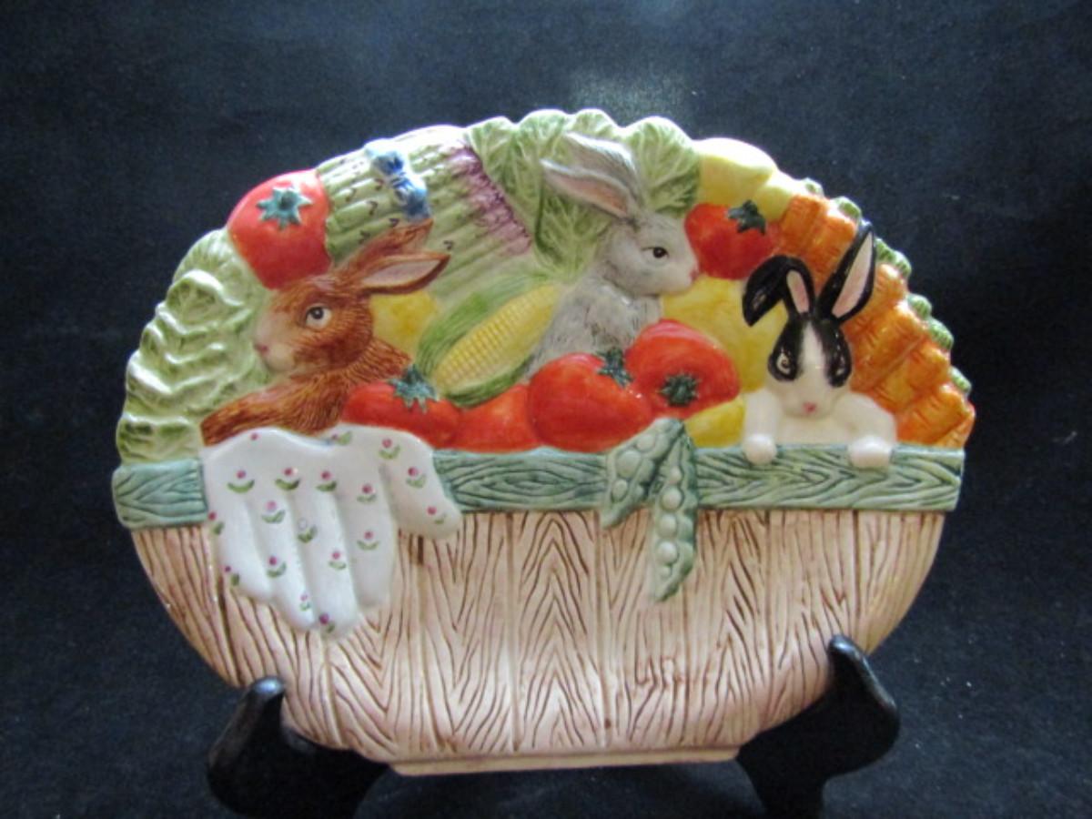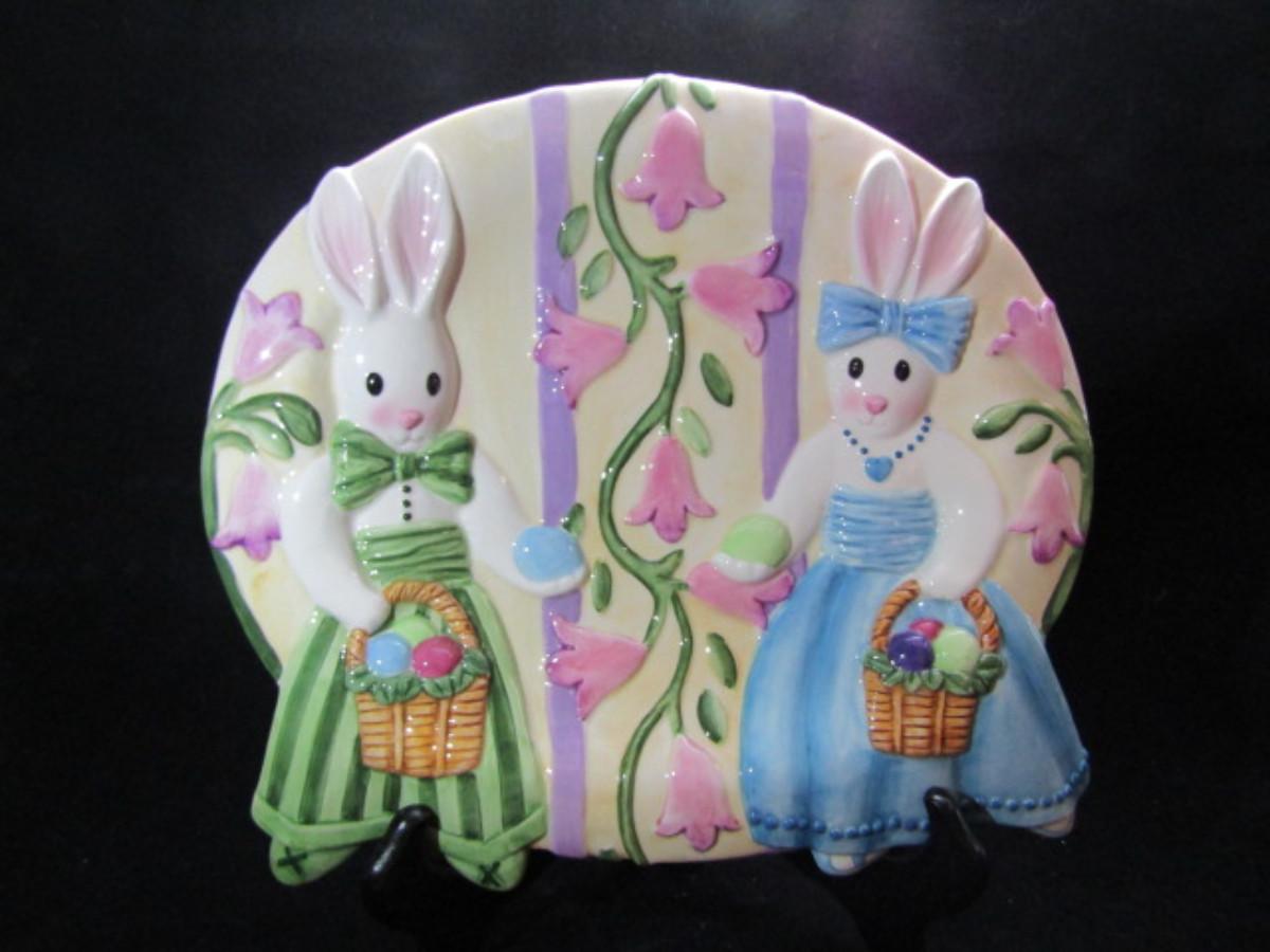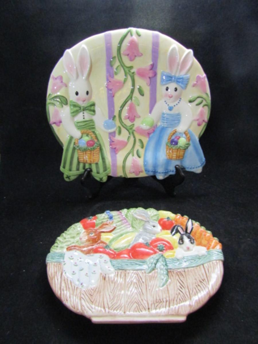 Fitz and Floyd Painted Ceramic Serving Plates- Easter/Rabbit Design (#341)