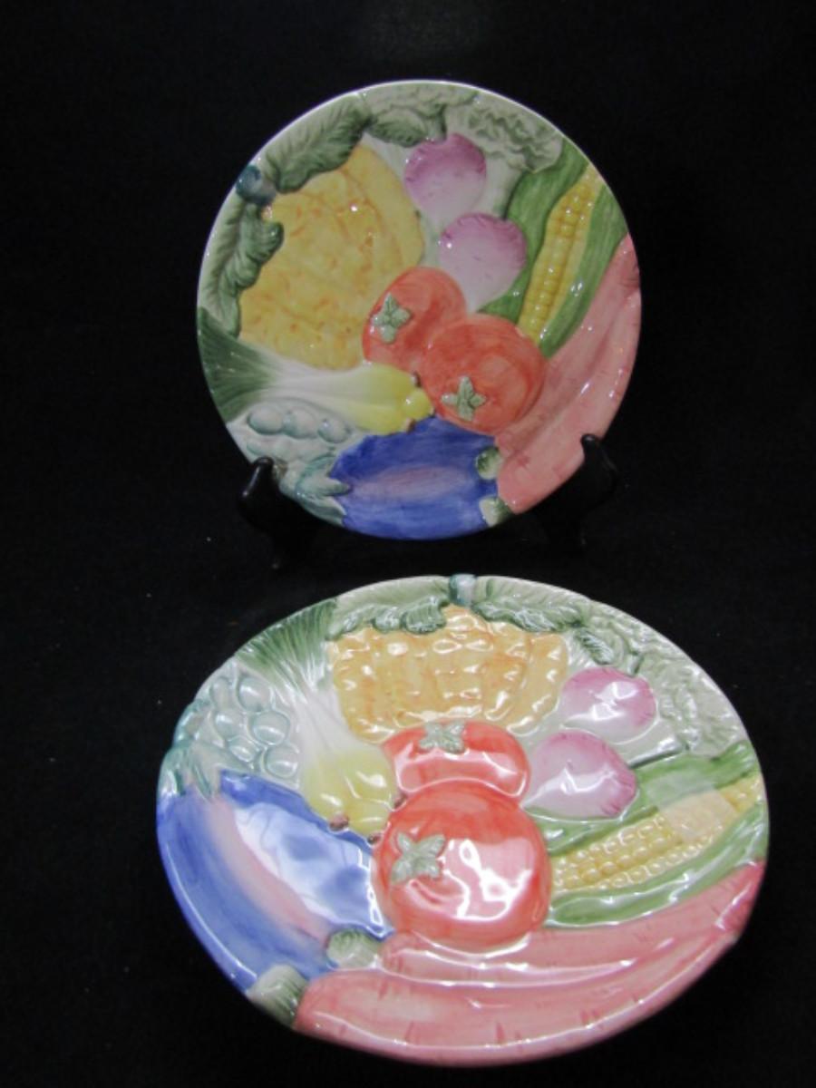 Fitz and Floyd Painted Ceramic Serving Plates- Vegetable Design (#345)