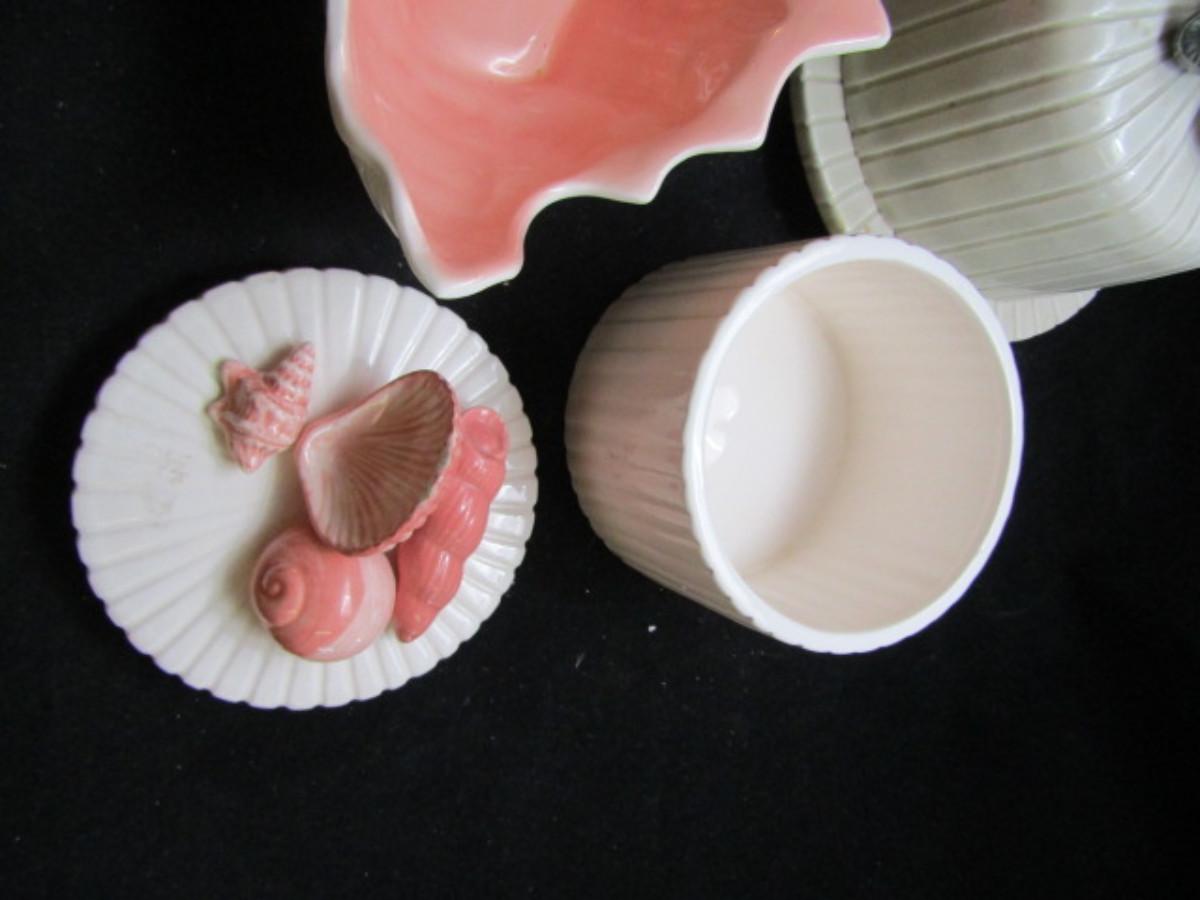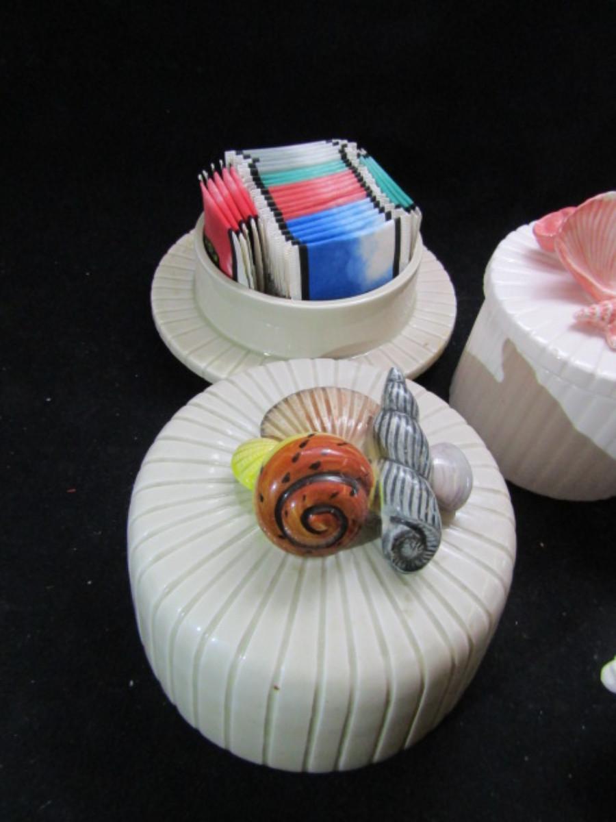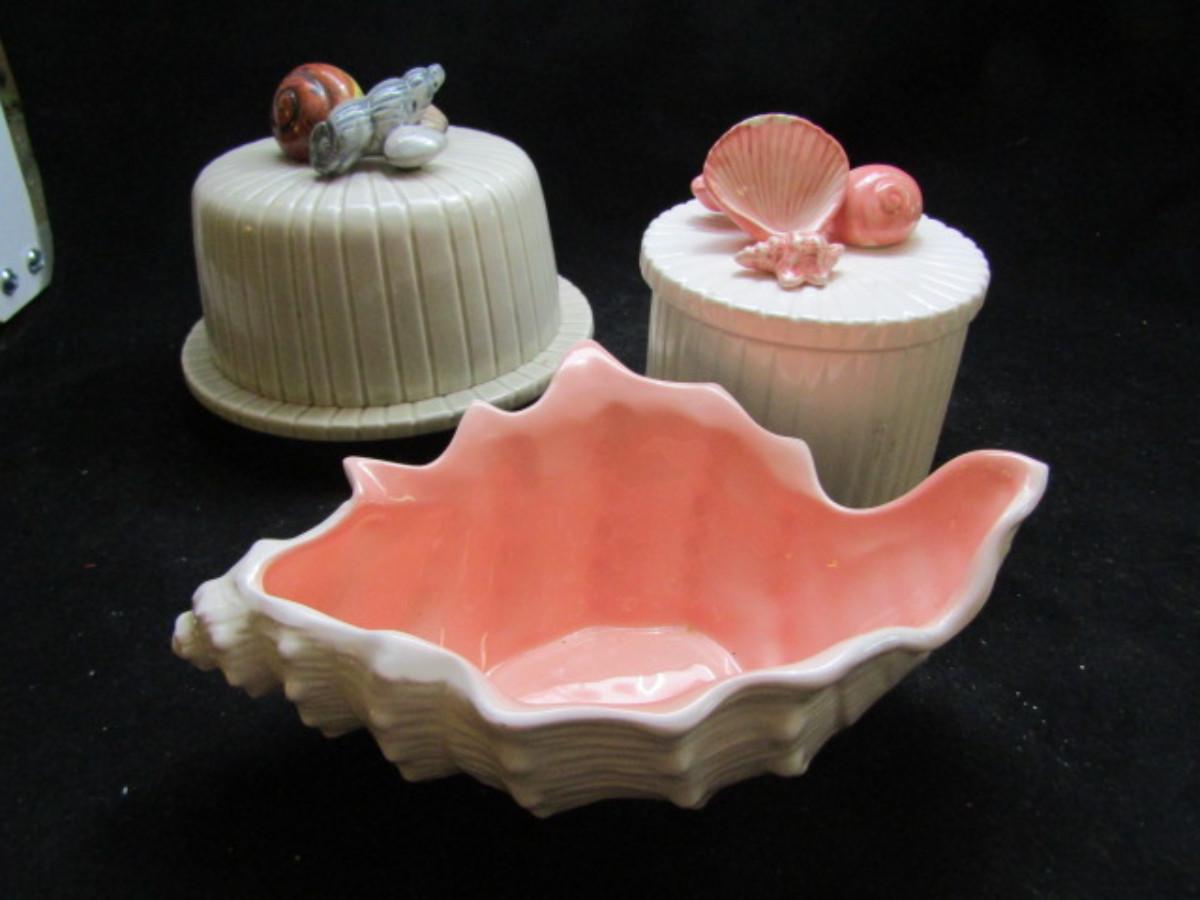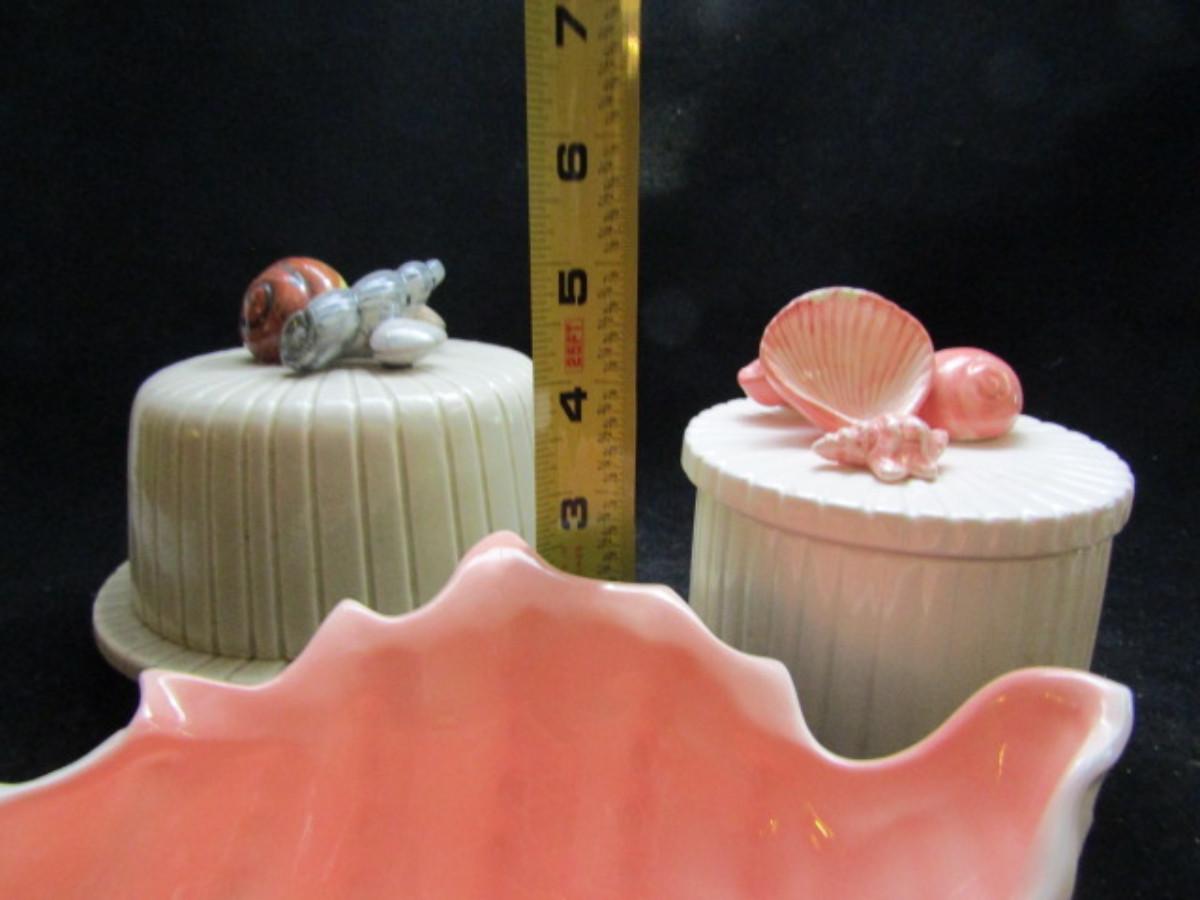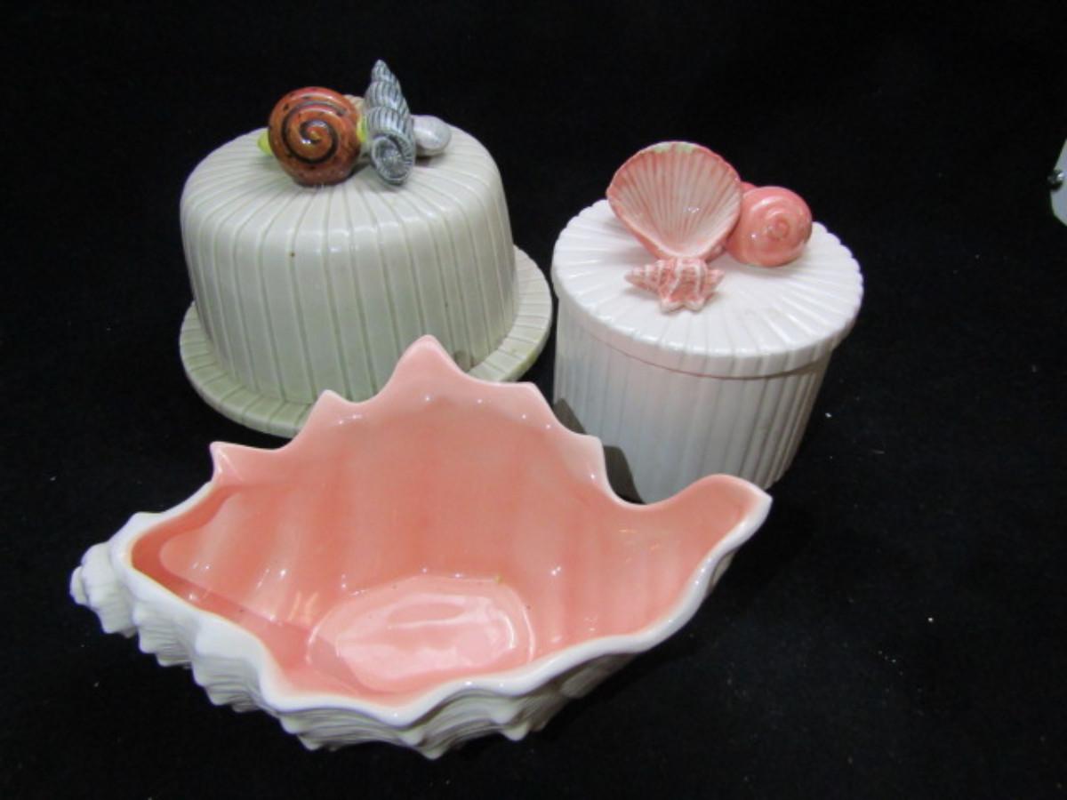 Fitz and Floyd Painted Ceramic Pieces- Seashell Designs- Two Covered Dishes and One Bowl (#455)