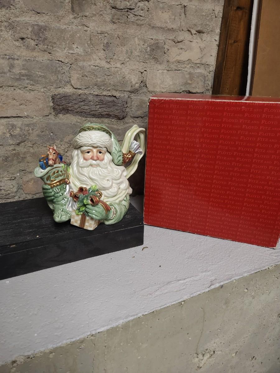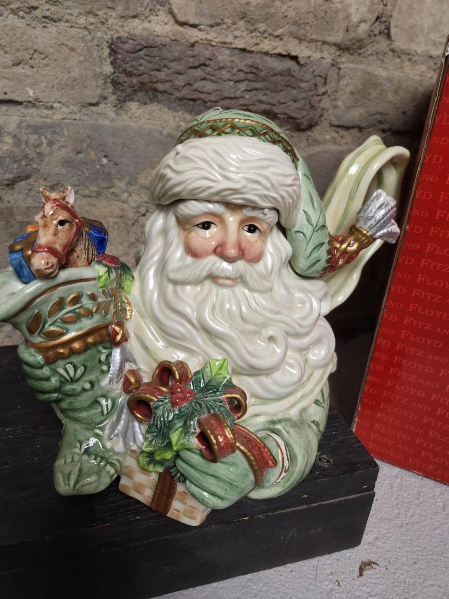 Fitz and Floyd Gregorian Santa teapot with original box