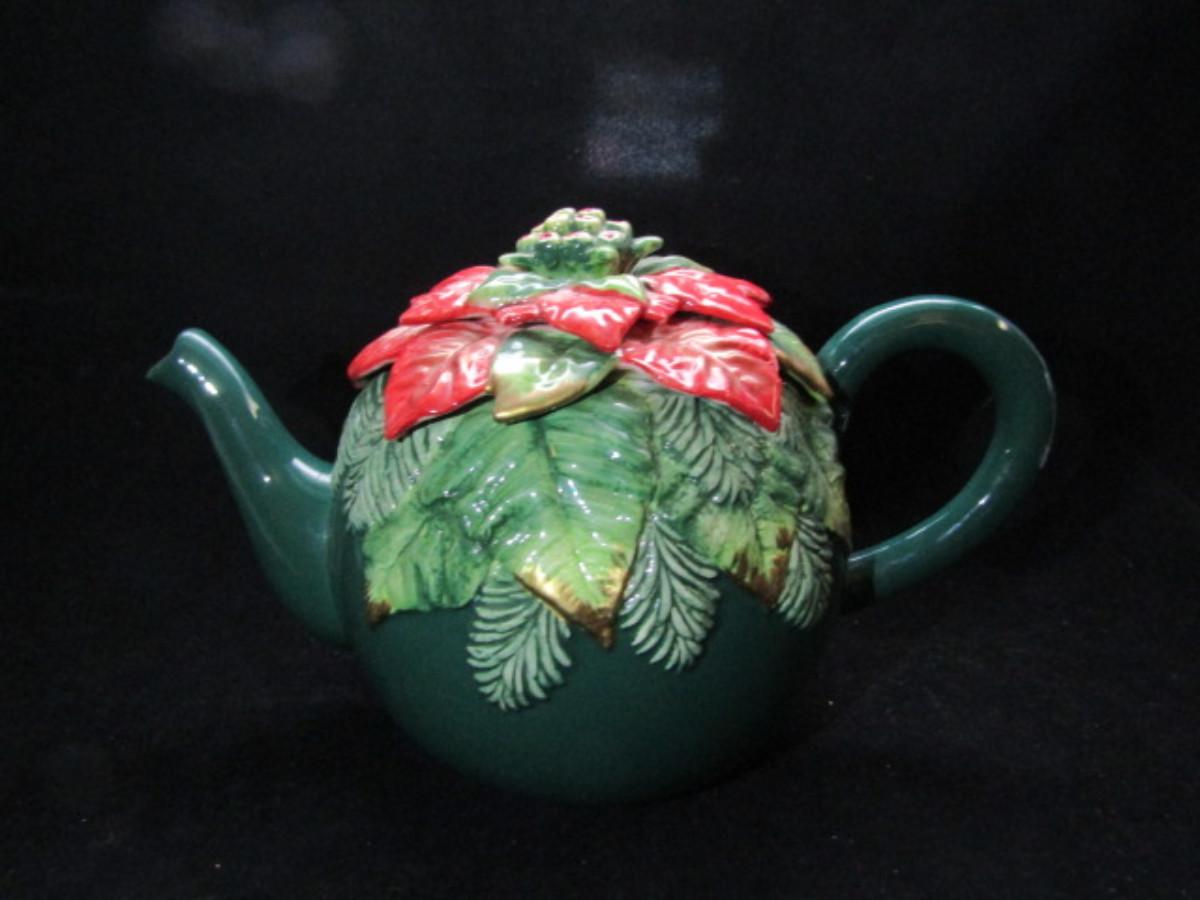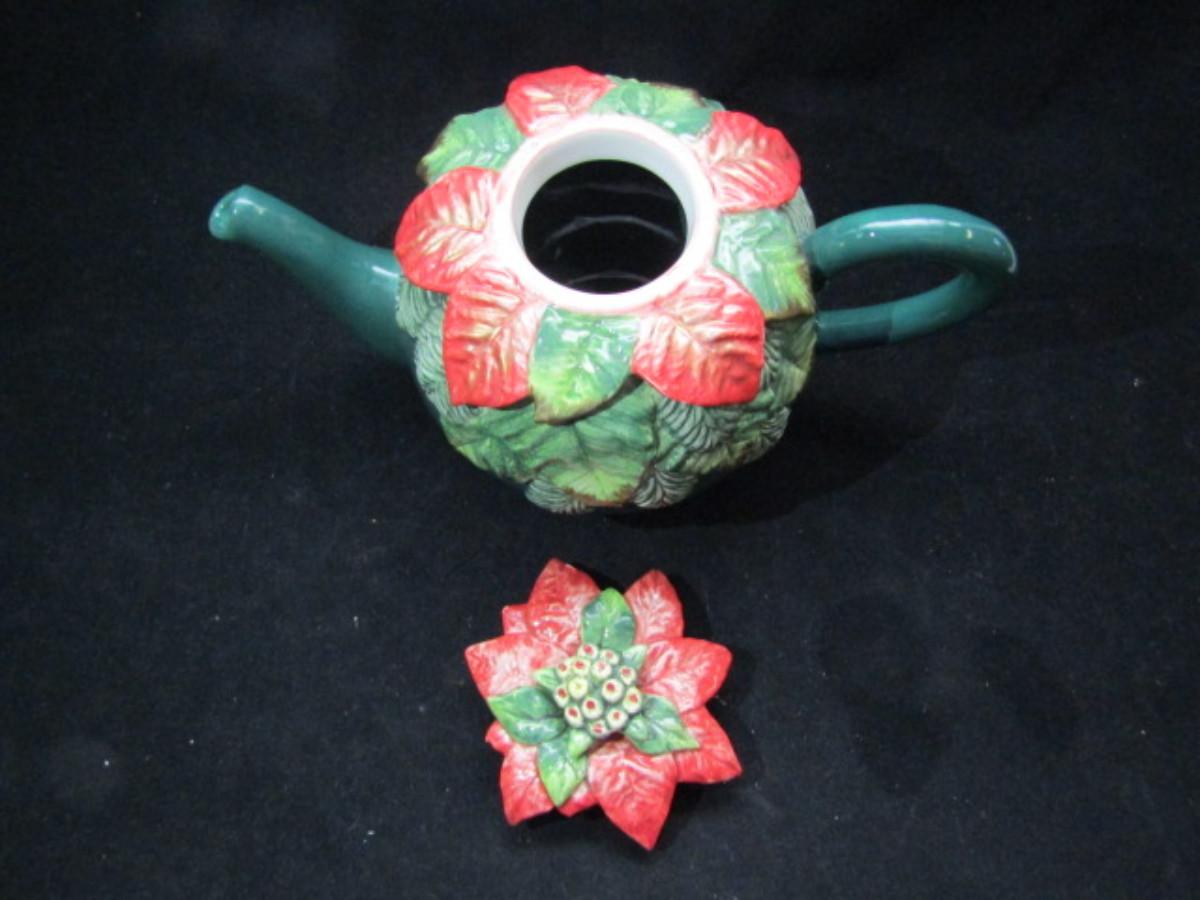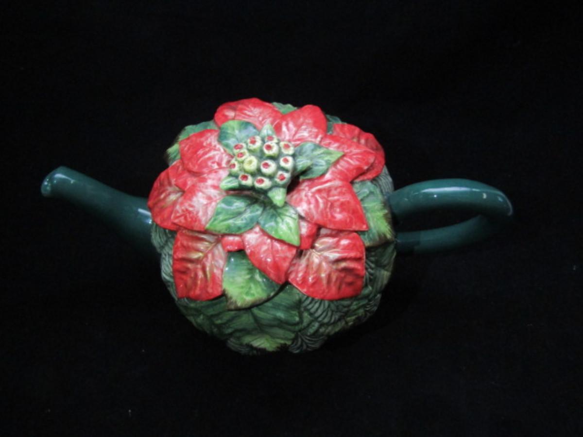 Fitz and Floyd Teapot- Poinsettia Design (#297)