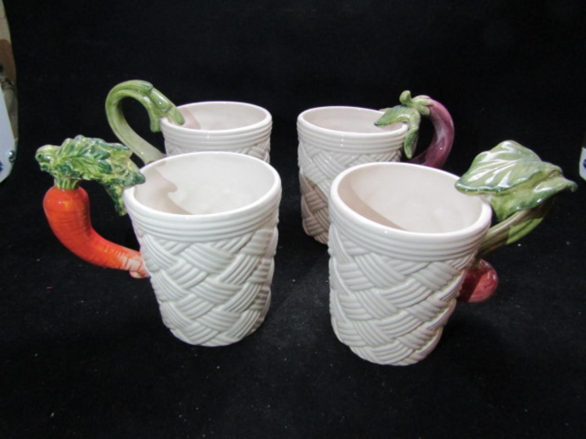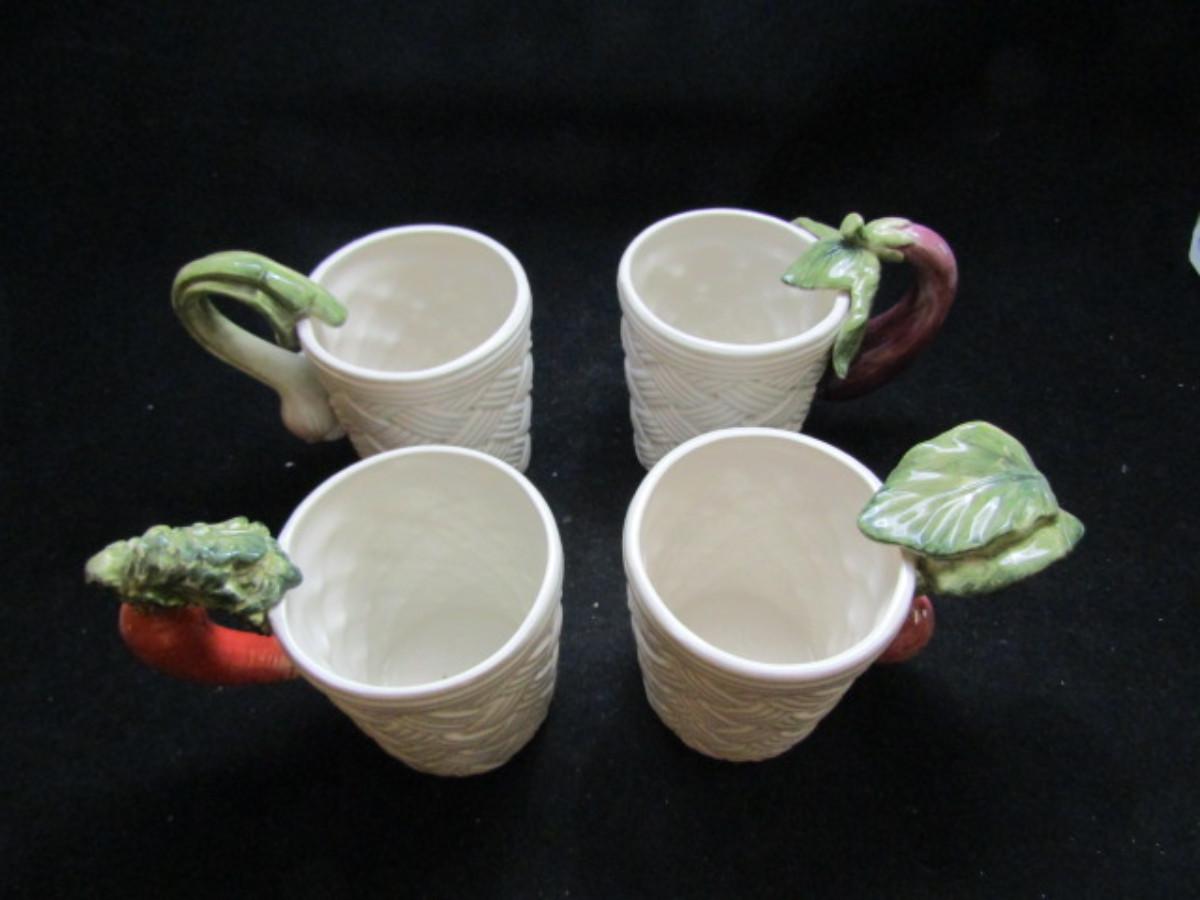 Fitz and Floyd- Vintage Set of Four Mugs with Vegetable Handles  (#446)