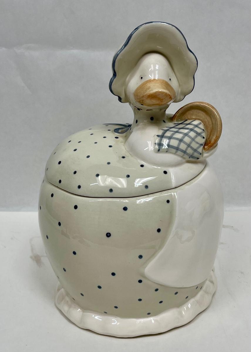 FITZ & FLOYD Mother Goose Betty Quacker Ceramic Cookie Jar Goose or Duck kitchen decor