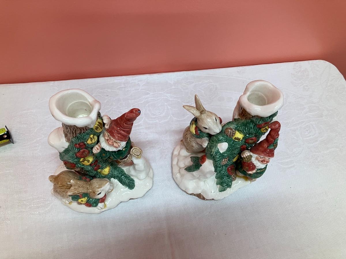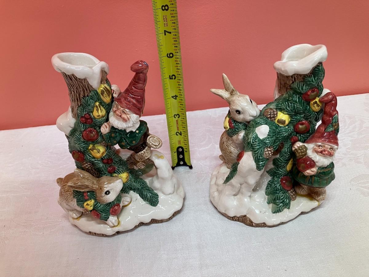Set of 2 Fitz & Floyd woodland Christmas candlesticks