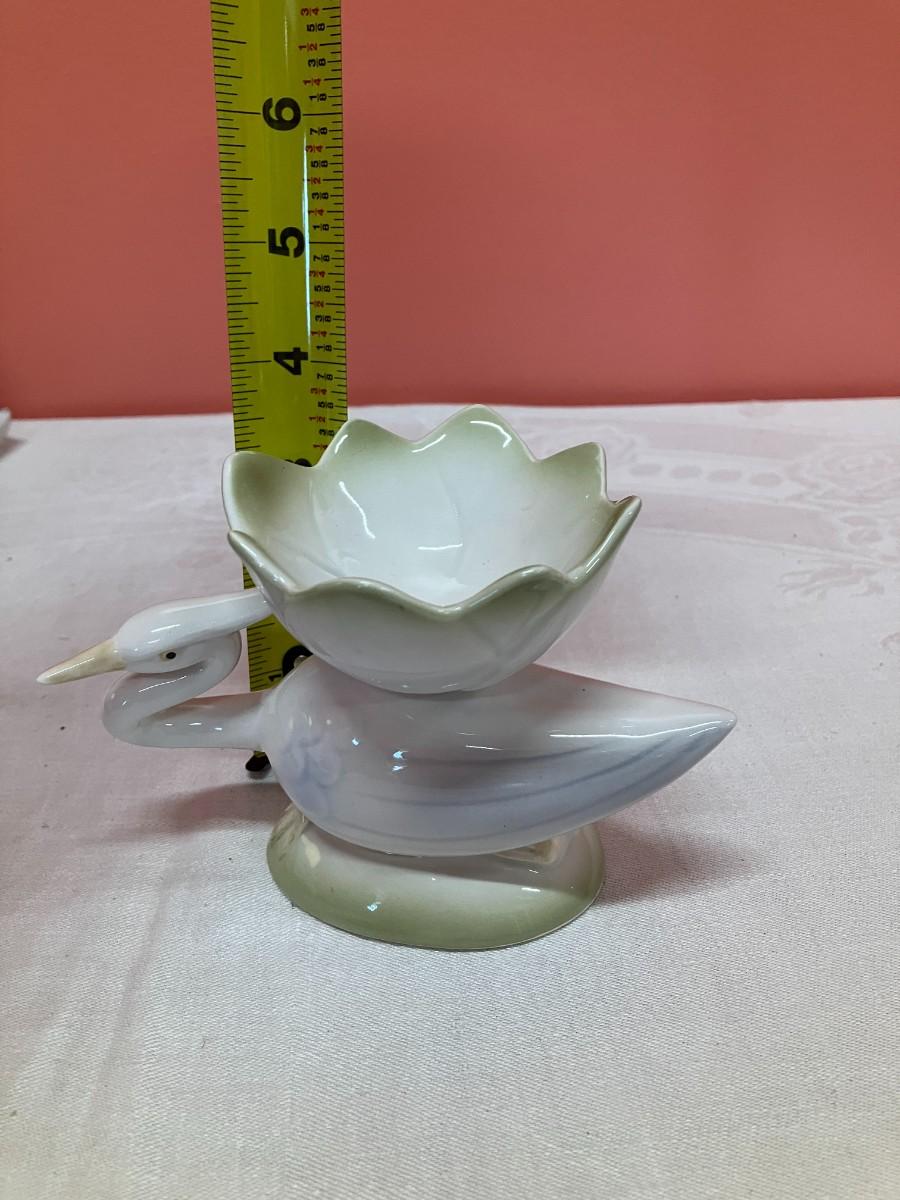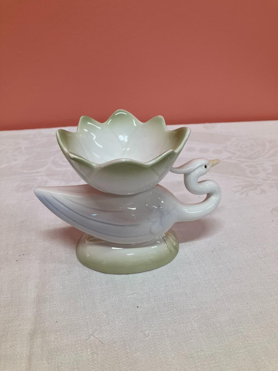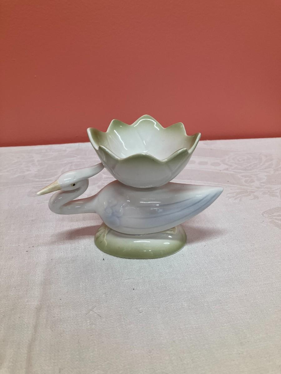Small Fitz & Floyd ceramic heron with lotus flower finger bowl