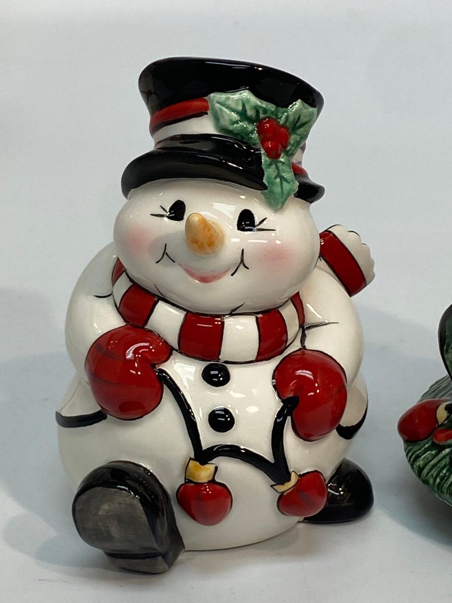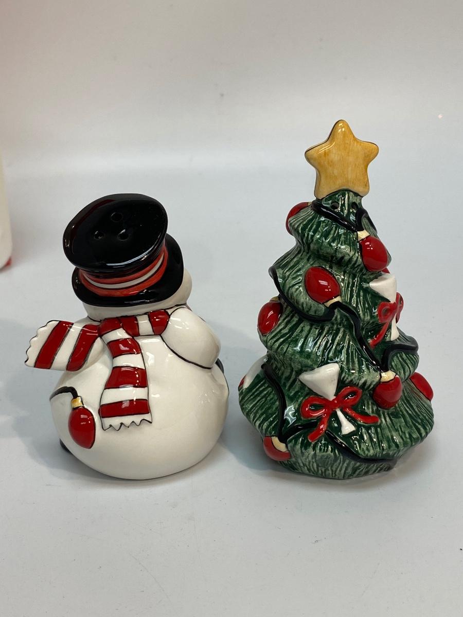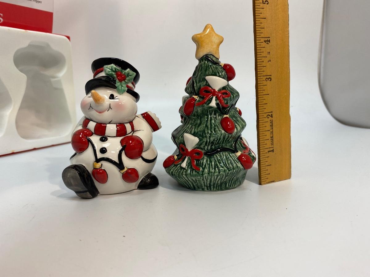 Fitz & Floyd Cheers Snowman with his Martini Christmas Tree Salt & Pepper Shaker Set