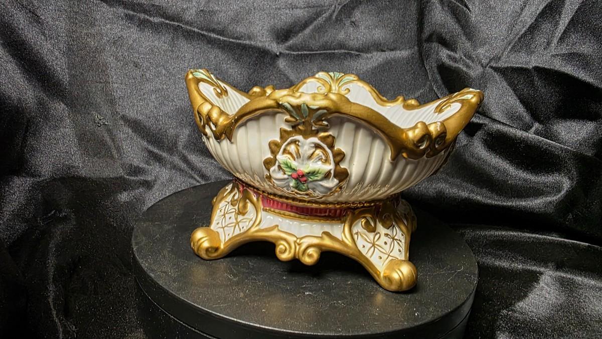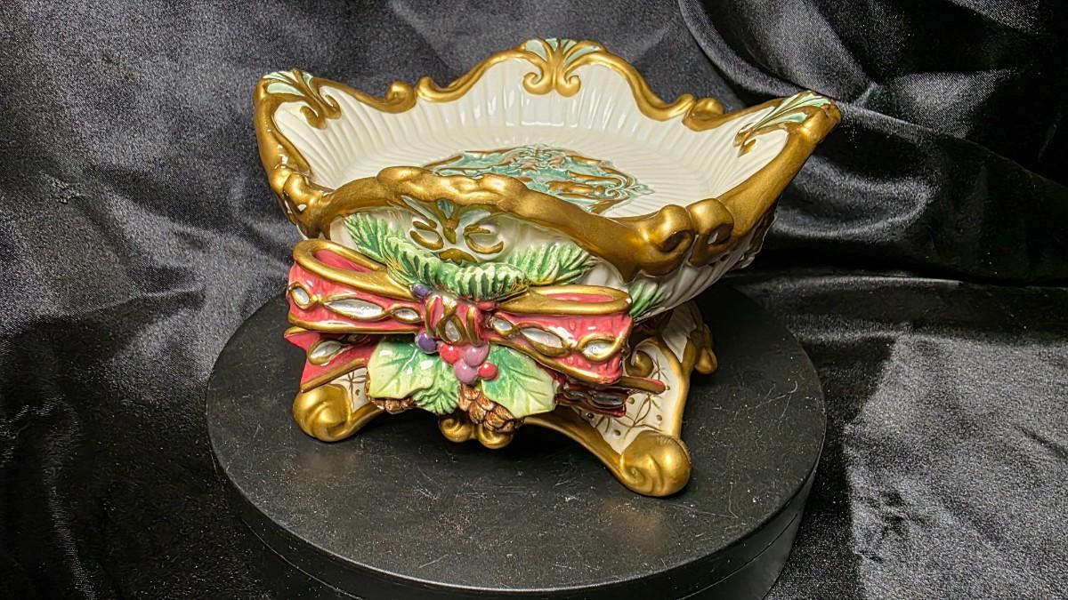 Designed as part of the Florentine Christmas collection, this piece reflects the intricate craftsmanship and festive sophistication Fitz & Floyd is known for. Its balanced proportions and decorative detailing make it ideal for holiday tablescapes, mantel displays, or as a standalone accent adding warmth and classic charm to seasonal décor.