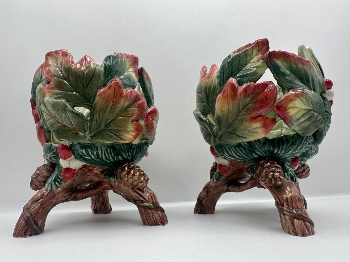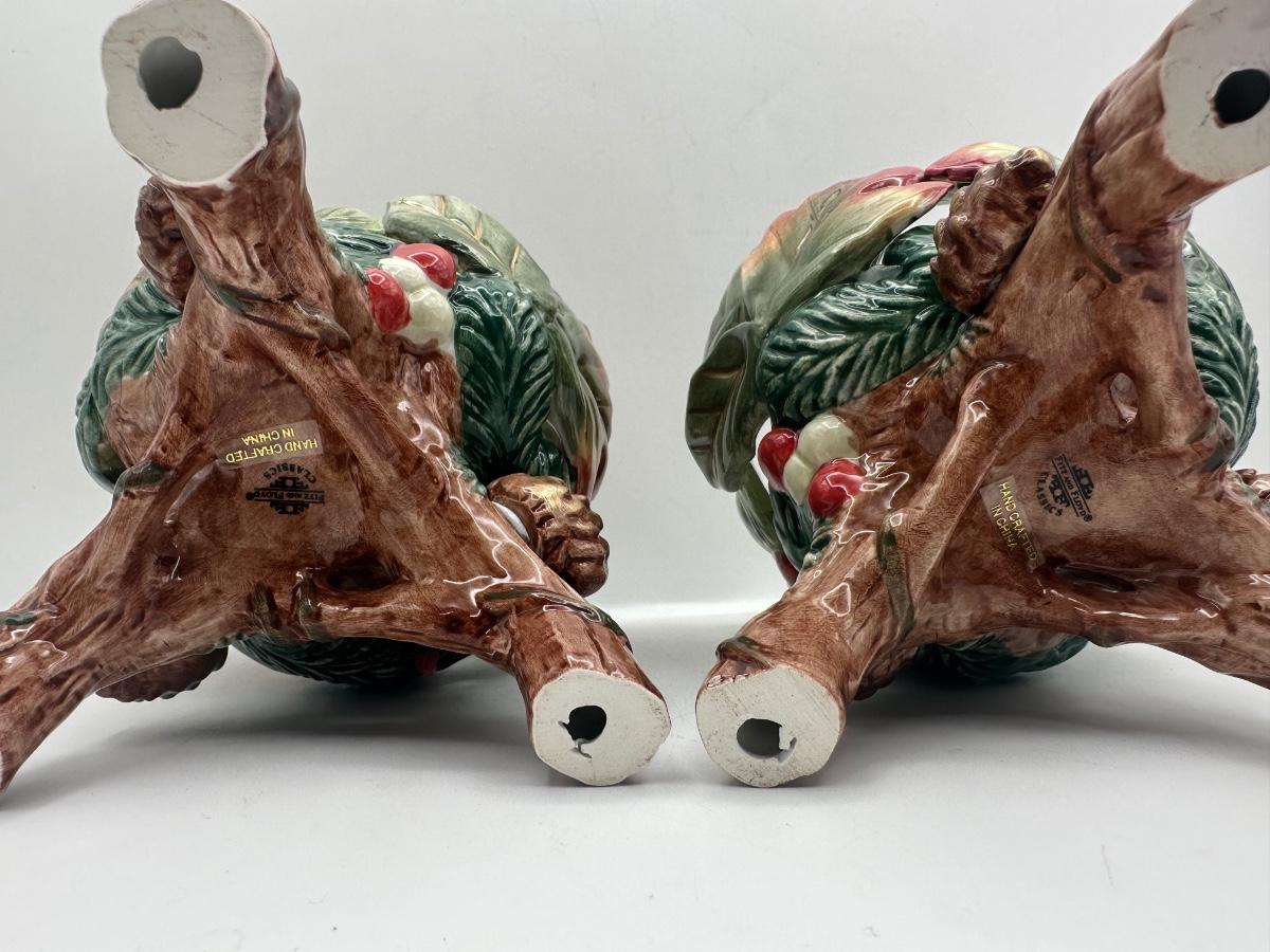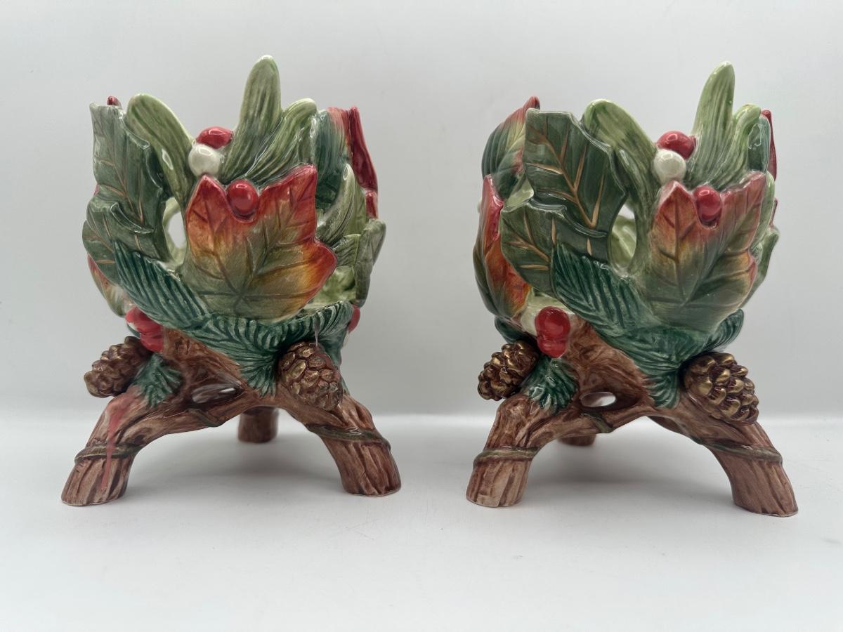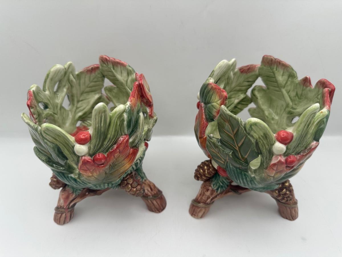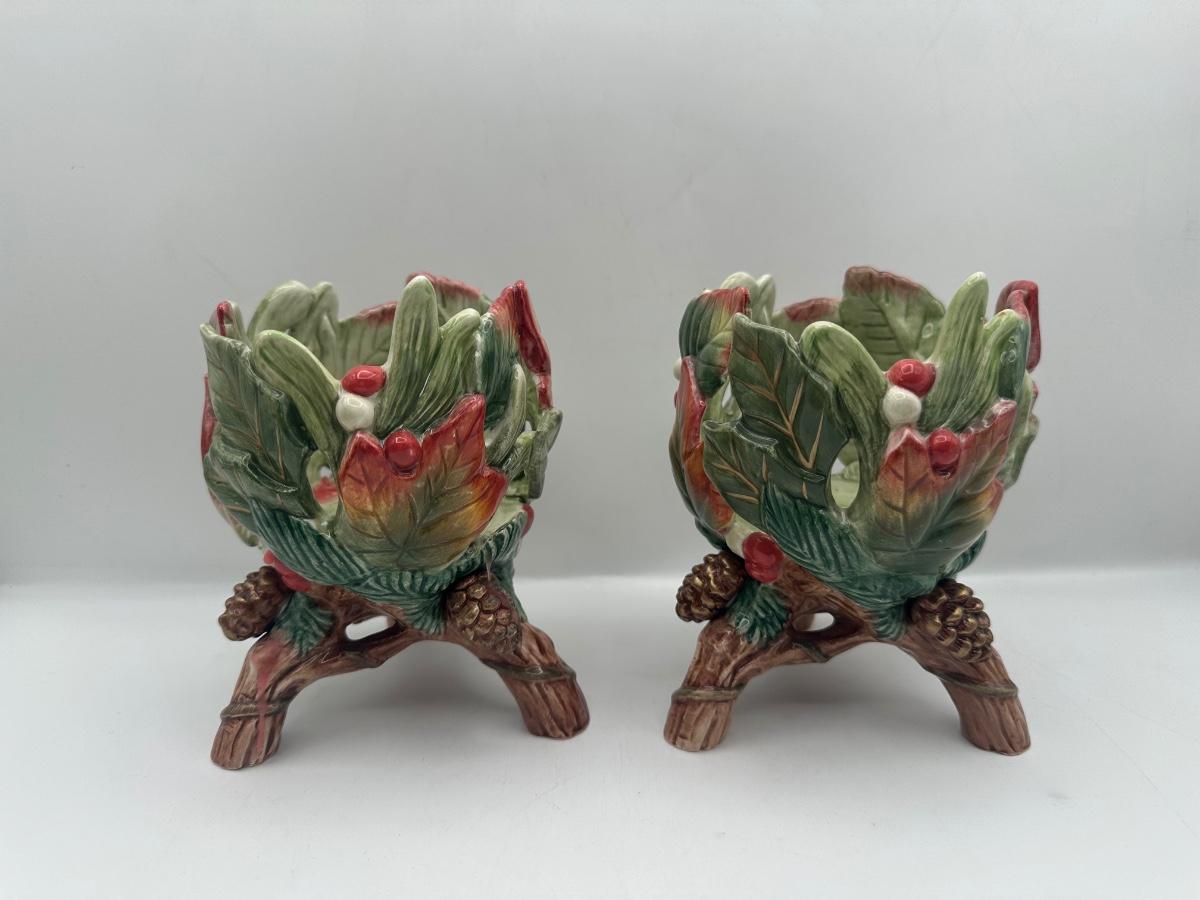 Fitz & Floyd Holly Leaf & Berry Ceramic Candle Holders