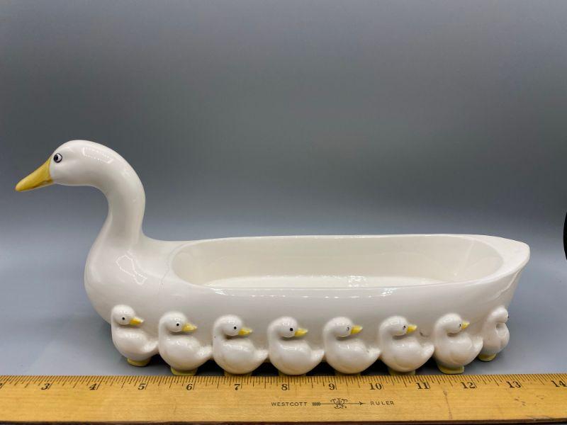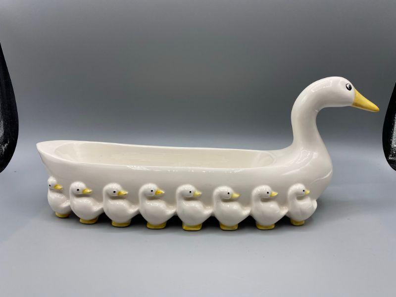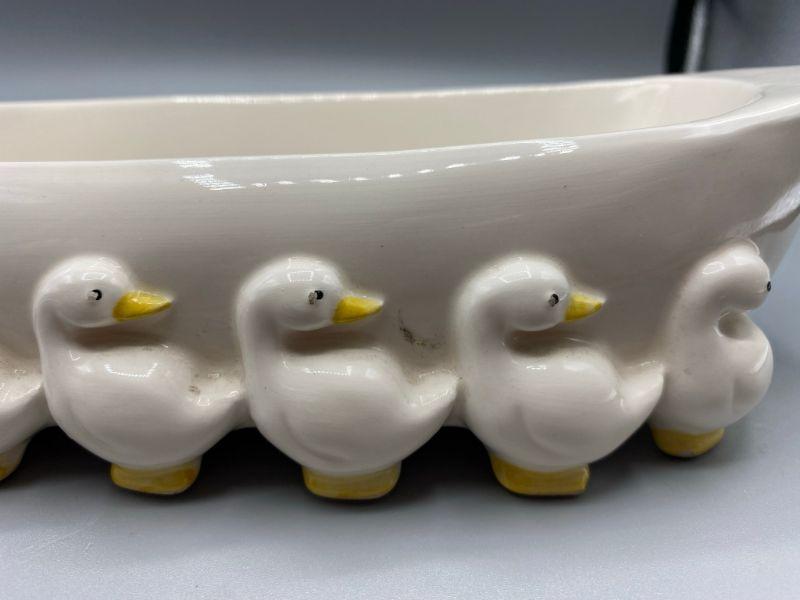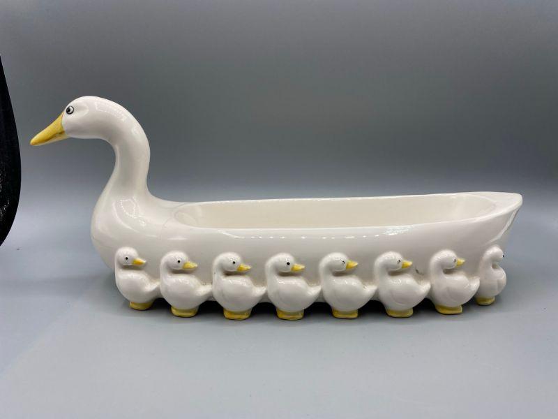 Vintage Fitz and Floyd mother duck with ducklings cracker serving dish. Use for all sorts of things other then crackers. Does have a small crack, but displays nice.