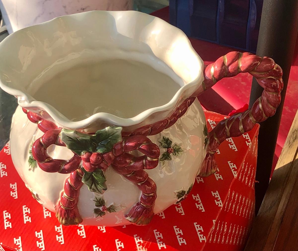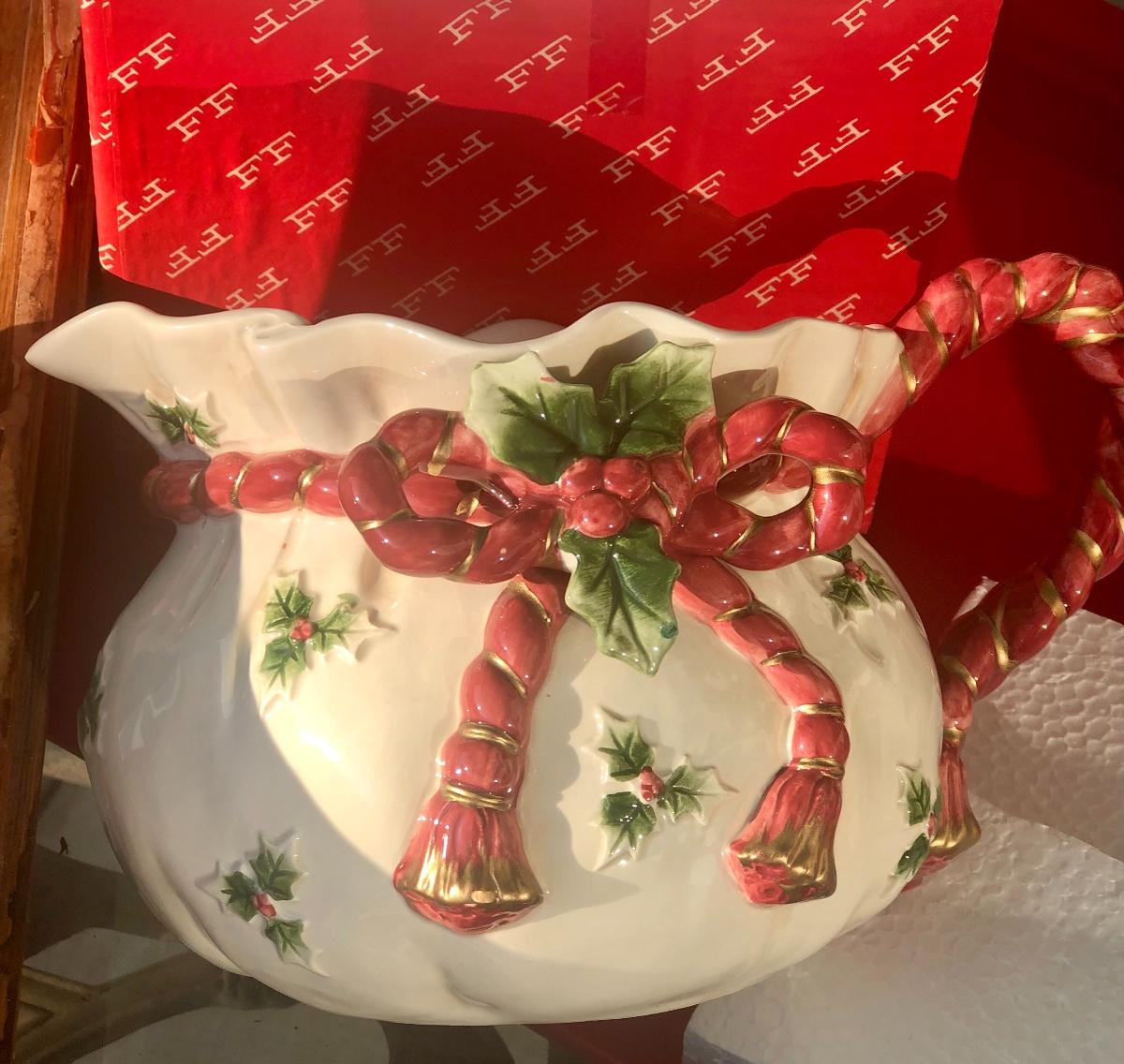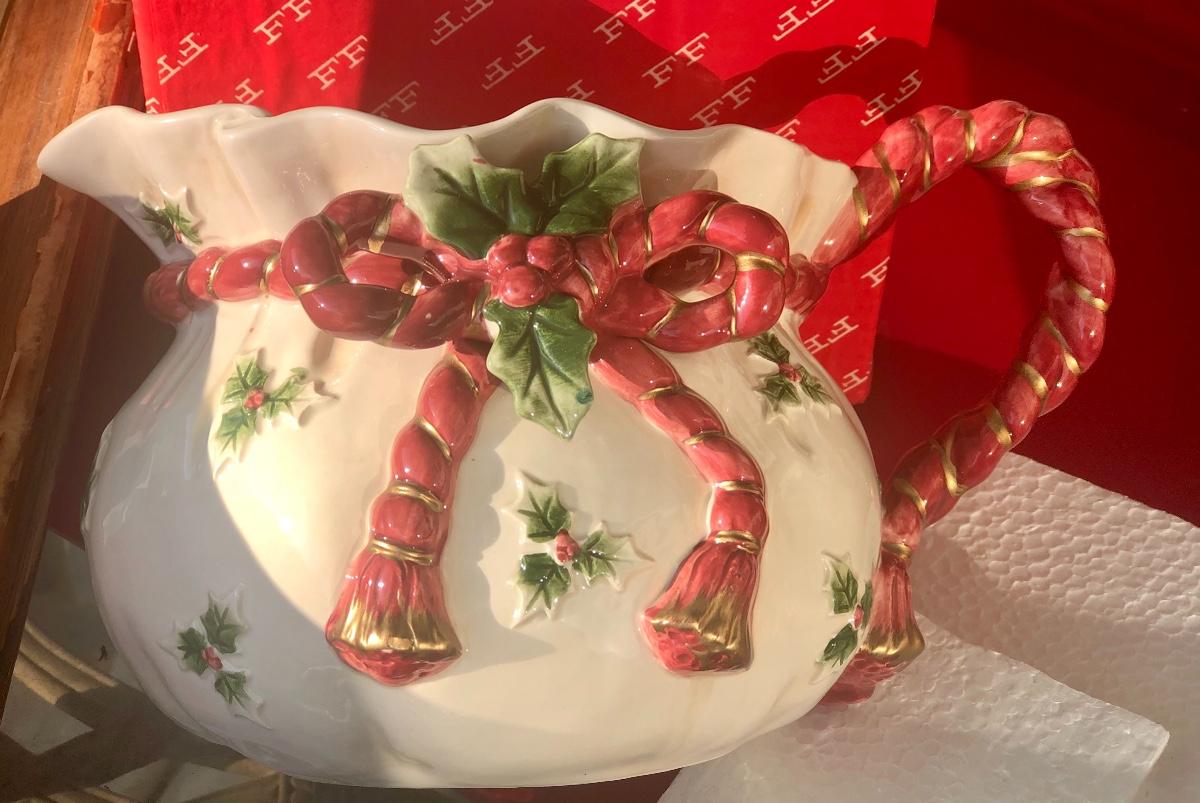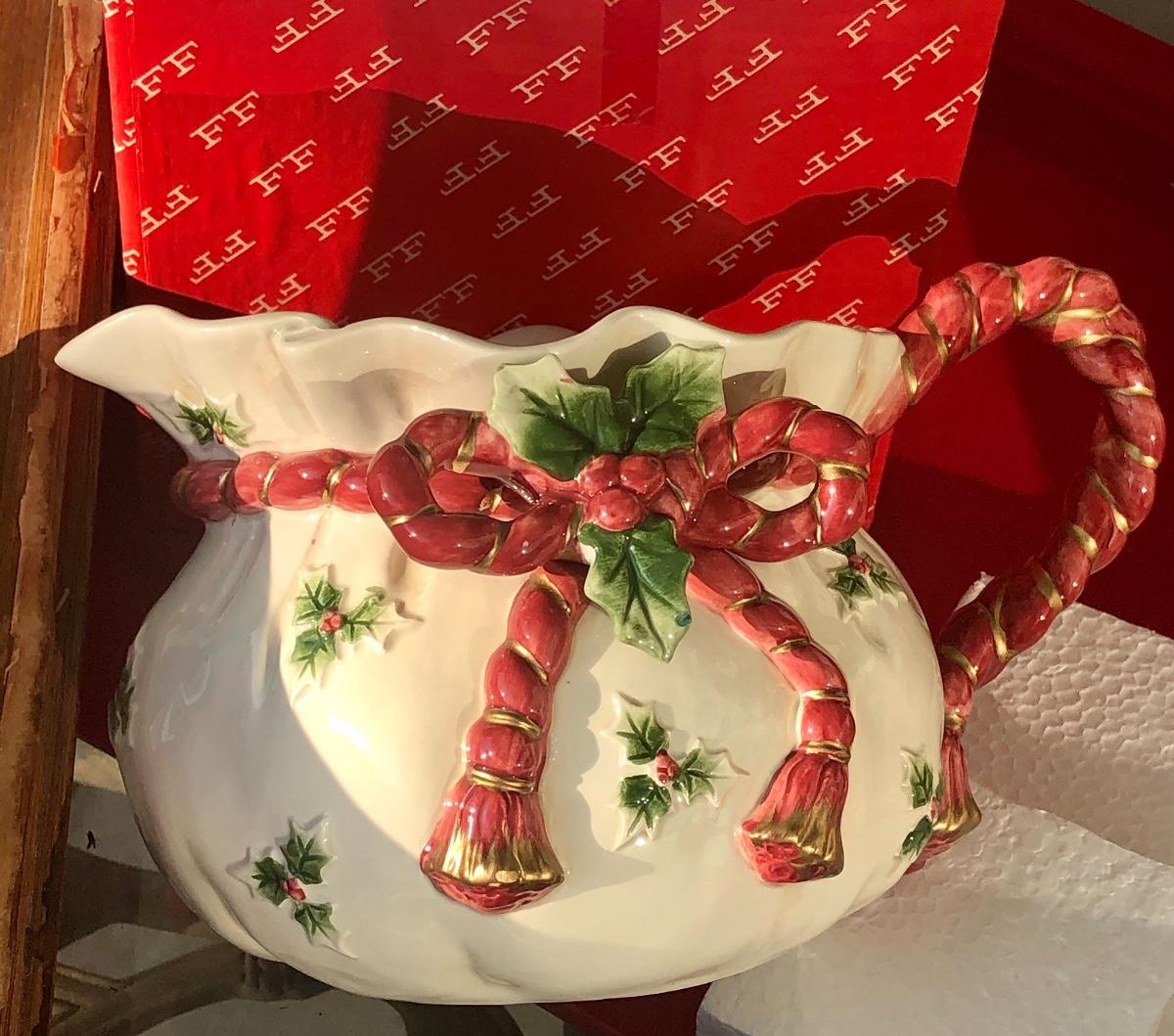 Lot 45 - Fitz &Floyd Pitcher/Old World Wrld Xmas Santa’s Bag Pitcher🎄🎄🎄