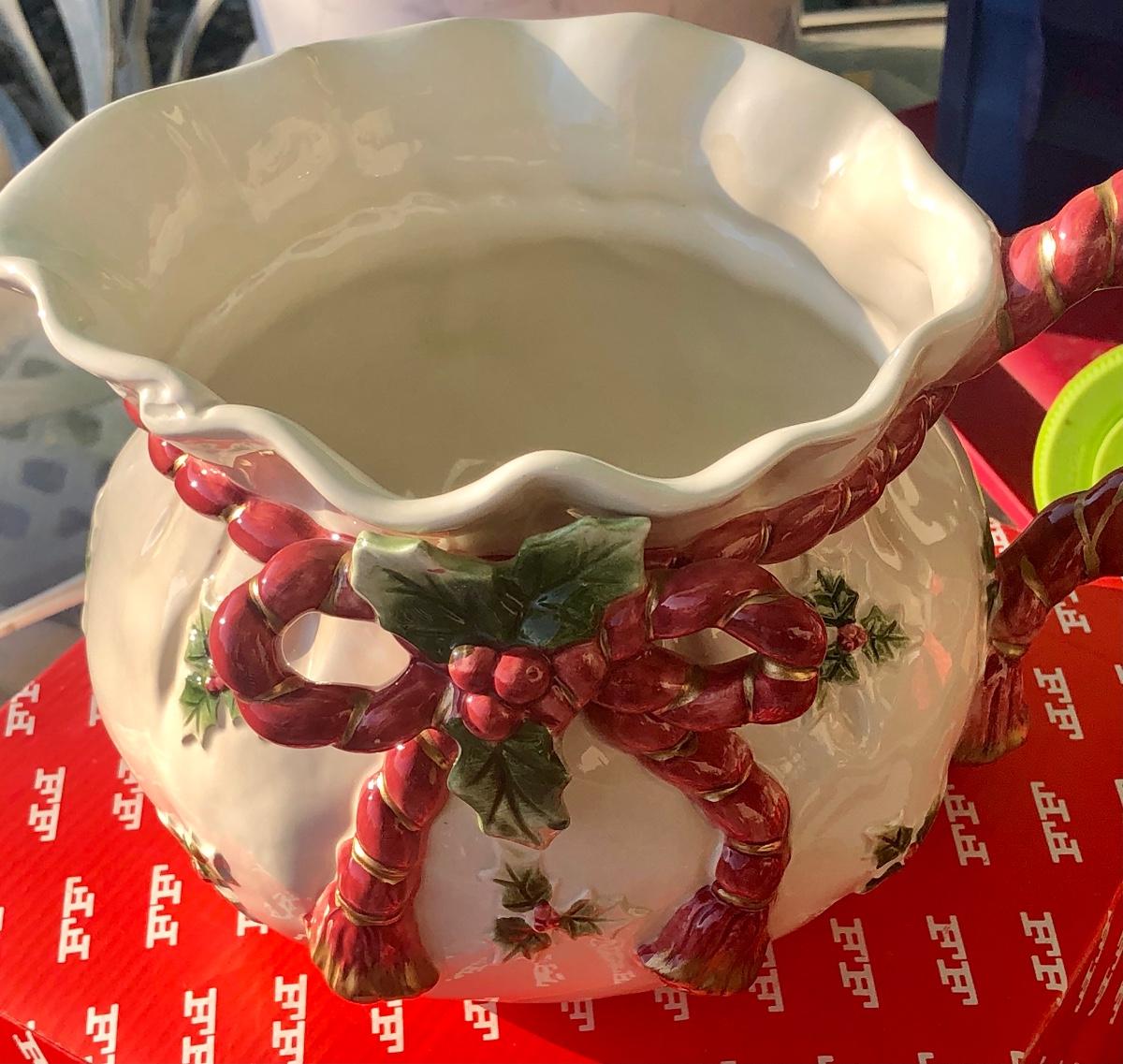 A pristine pitcher in the Old World Christmas collection by Fitz & Floyd. In perfect condition, unused in the original box. Sold @ Macy’s .