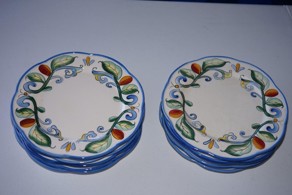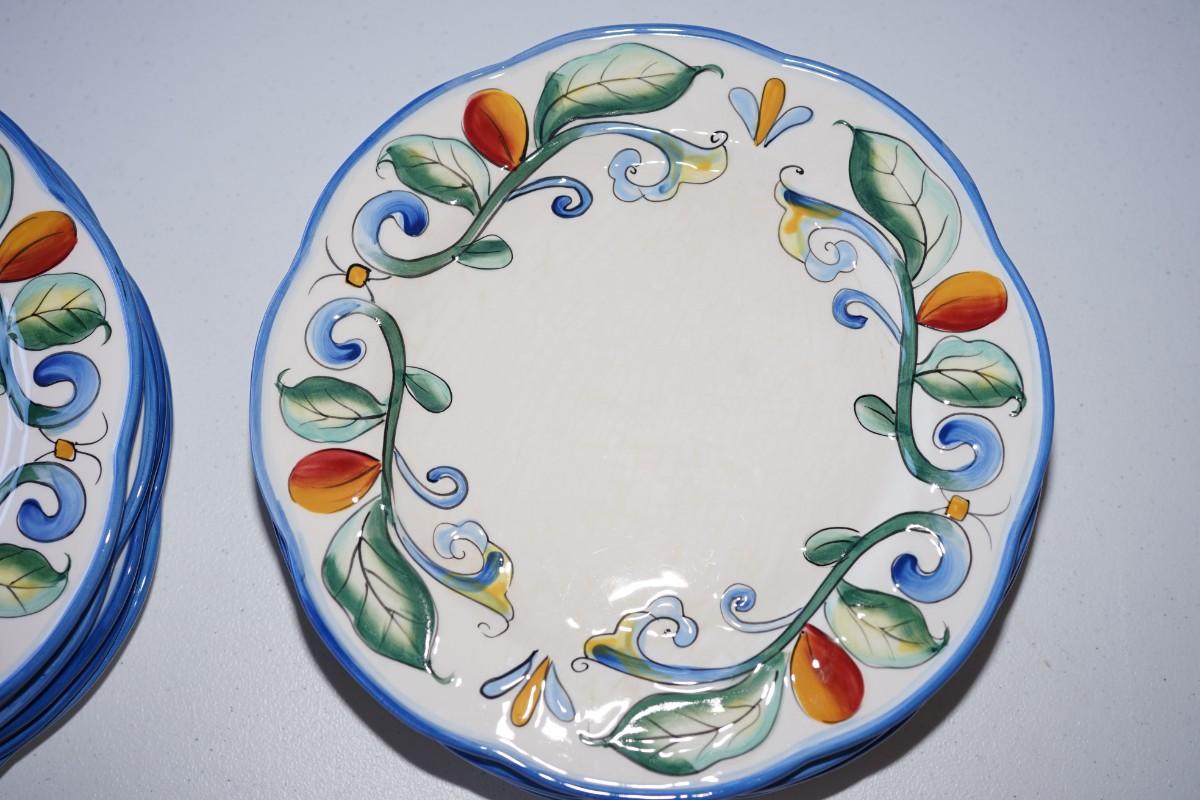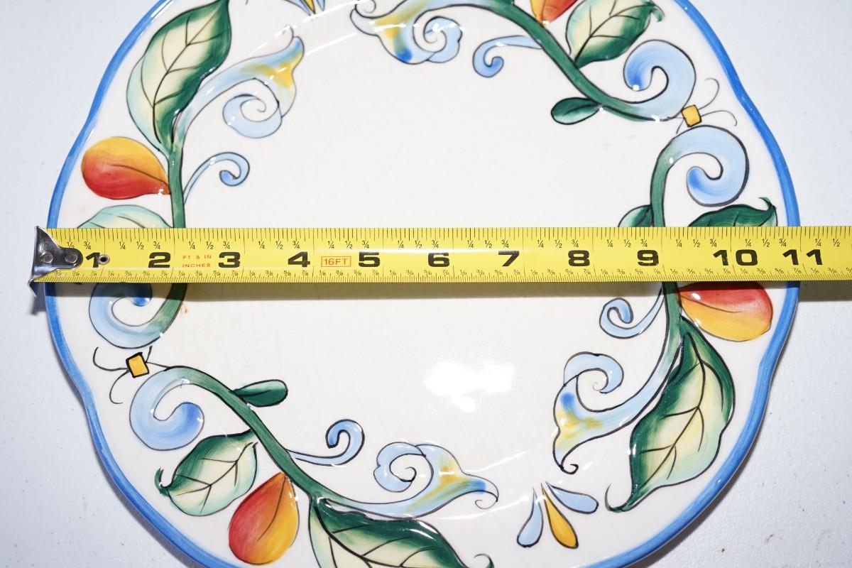 FITZ & FLOYD POTTERY "RICAMO" 11" DINNER PLATES (9) COLORFUL FOR THE FARMHOUSE KITCHEN