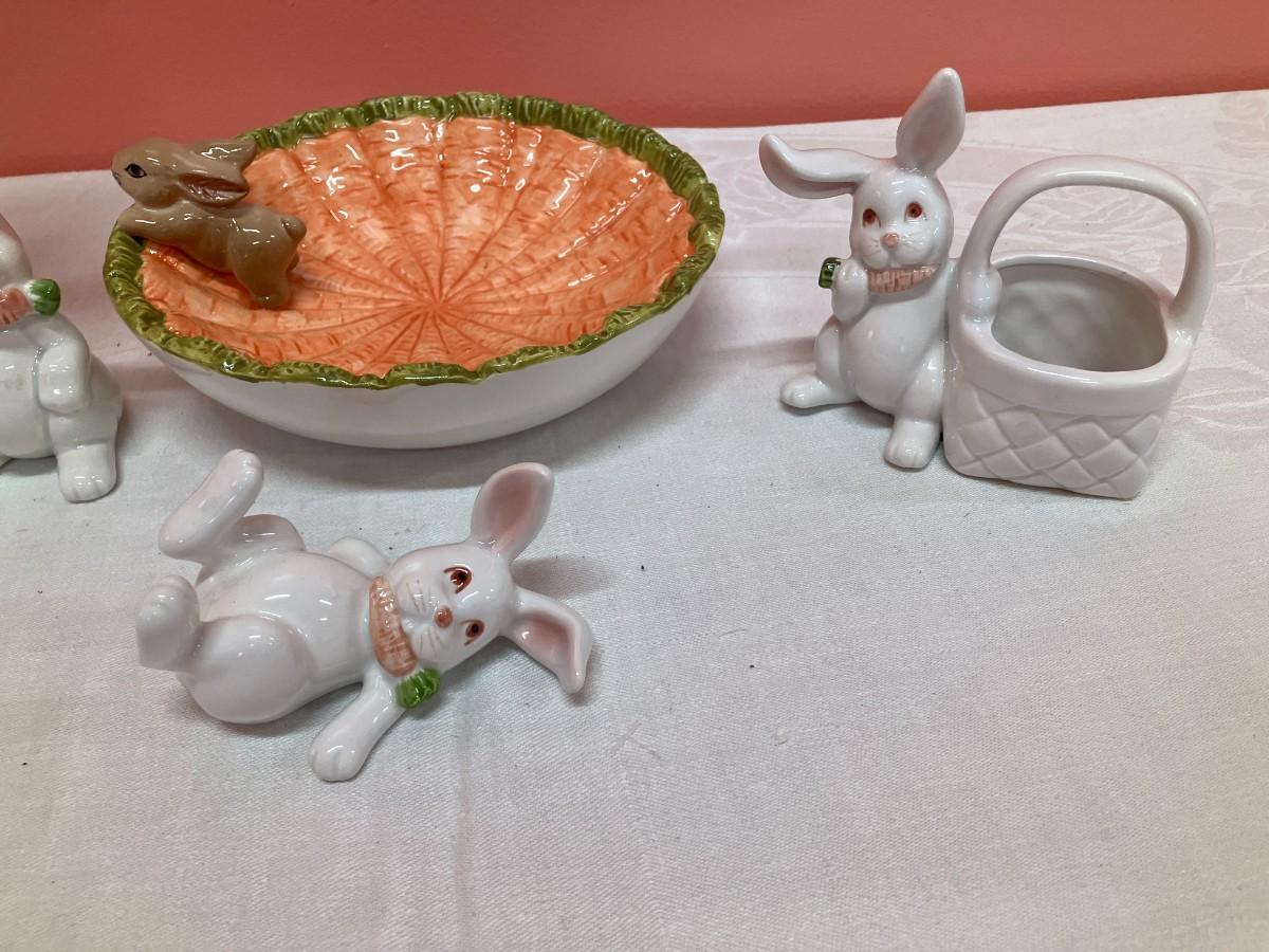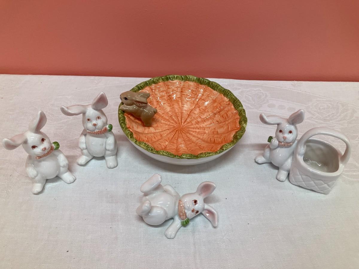 Set of 4 small Fitz & Floyd rabbits and a BONUS Easter decor bowl