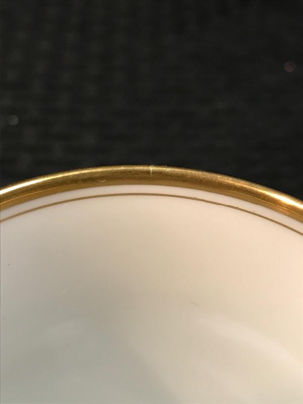 overall in spectacular condition. There is no visible damage to the gold rim save for one tiny little mark; see pictures.