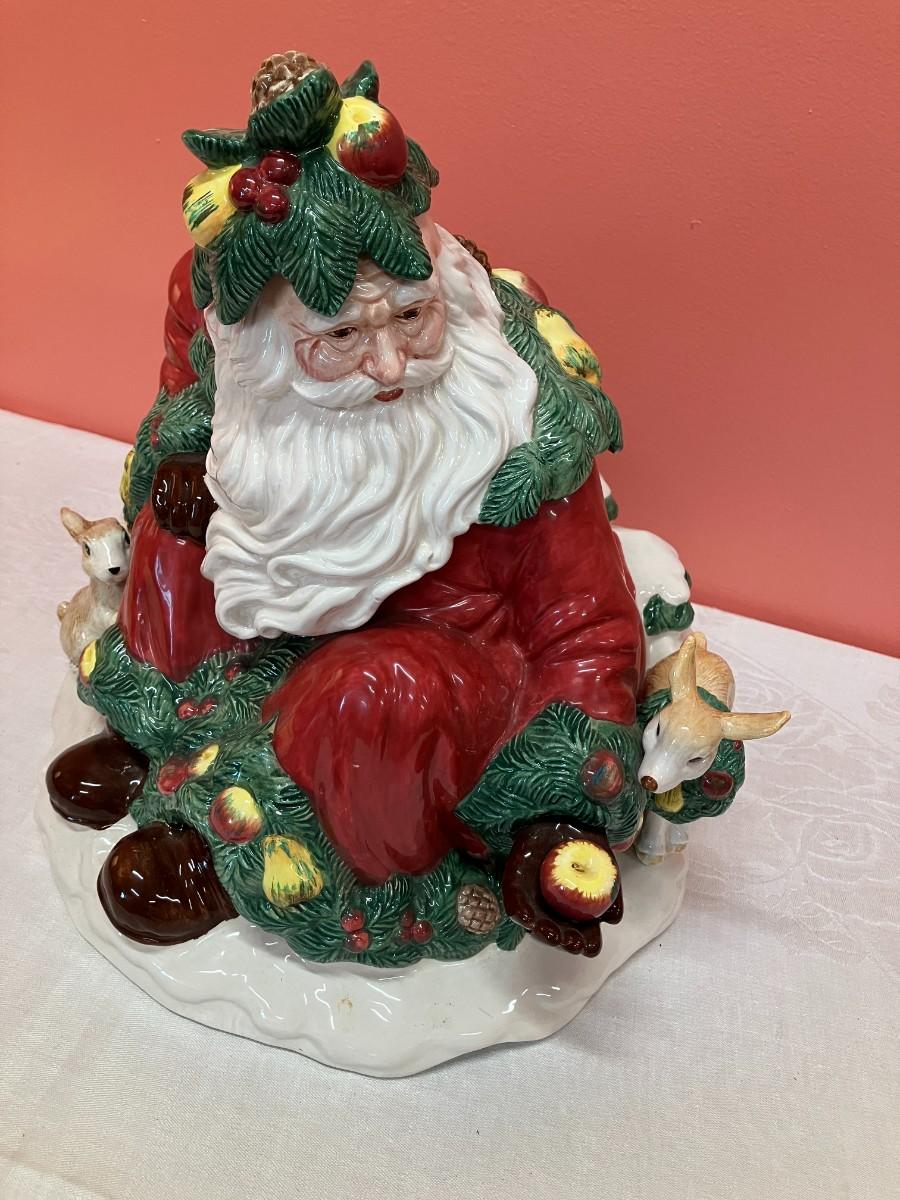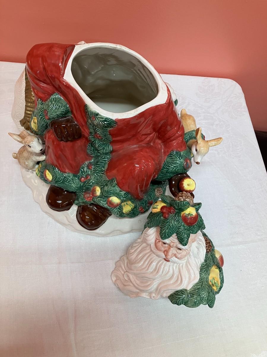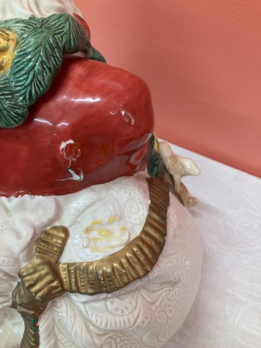 Large Fitz & Floyd Santa jar with some damage to back (maybe missing a piece?)