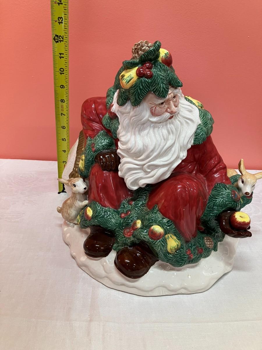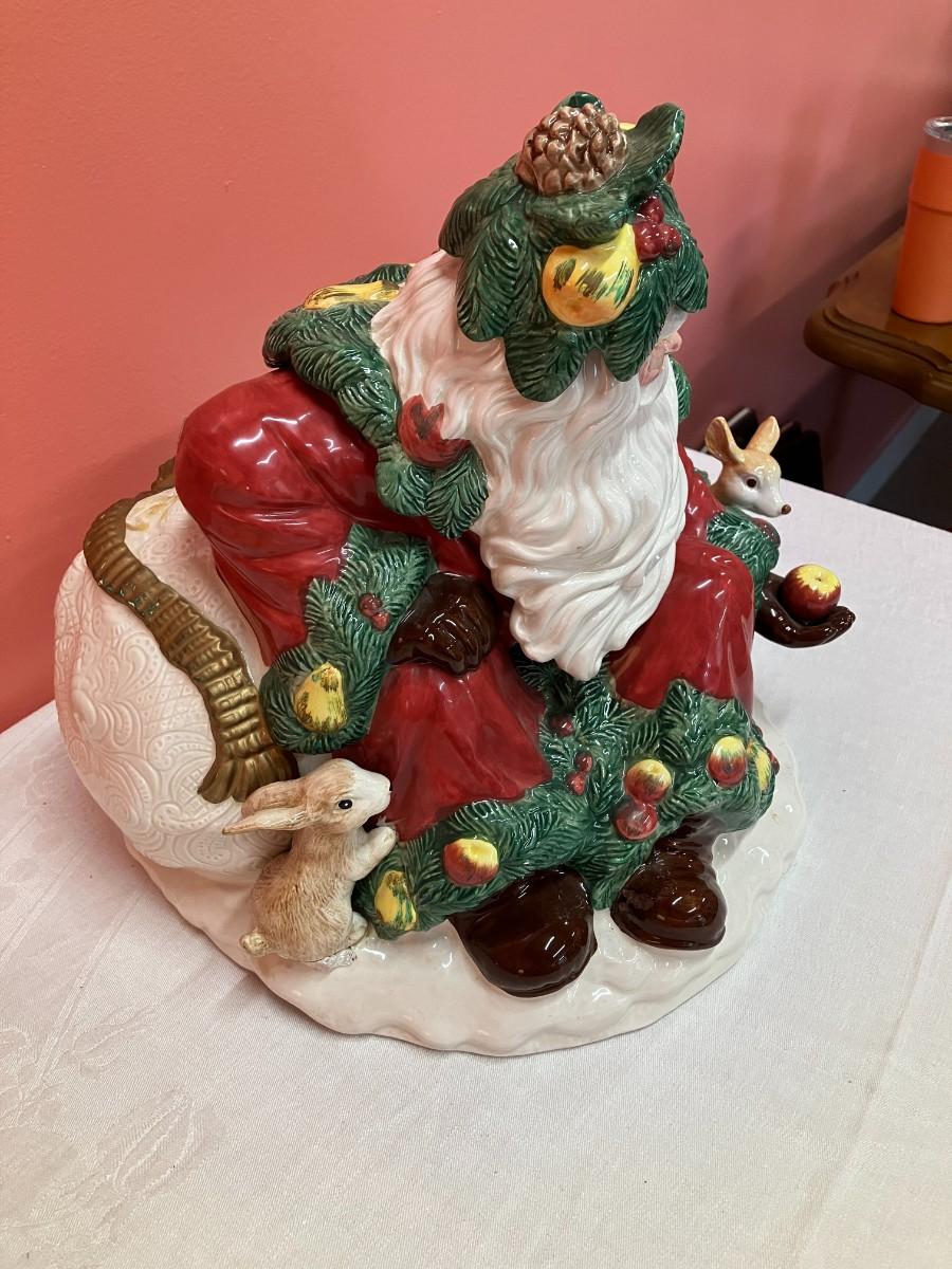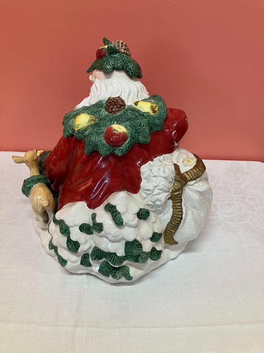 Large Fitz & Floyd Santa jar with some damage to back (maybe missing a piece?)