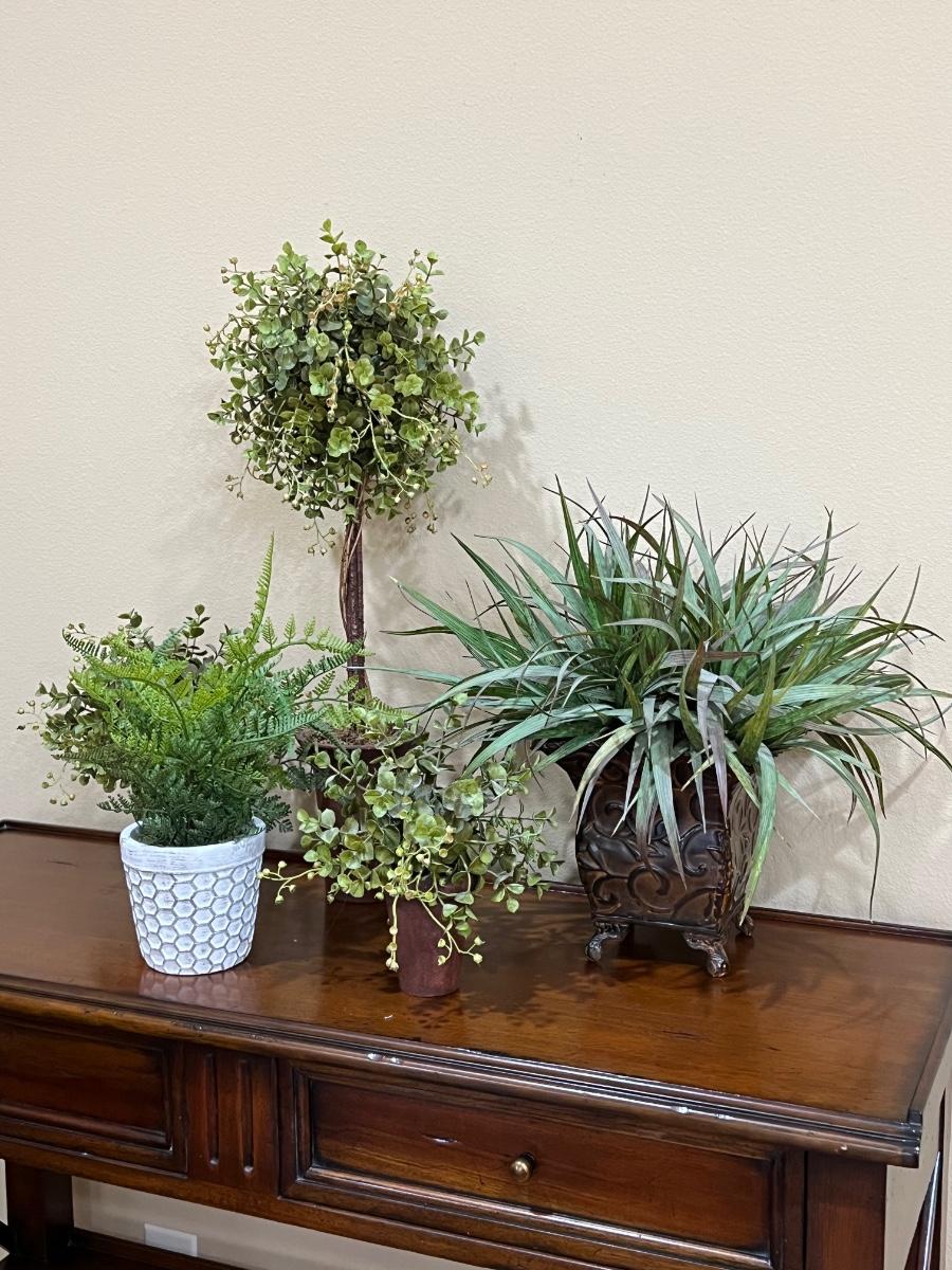 Five (5) Assorted Artificial Potted Greenery