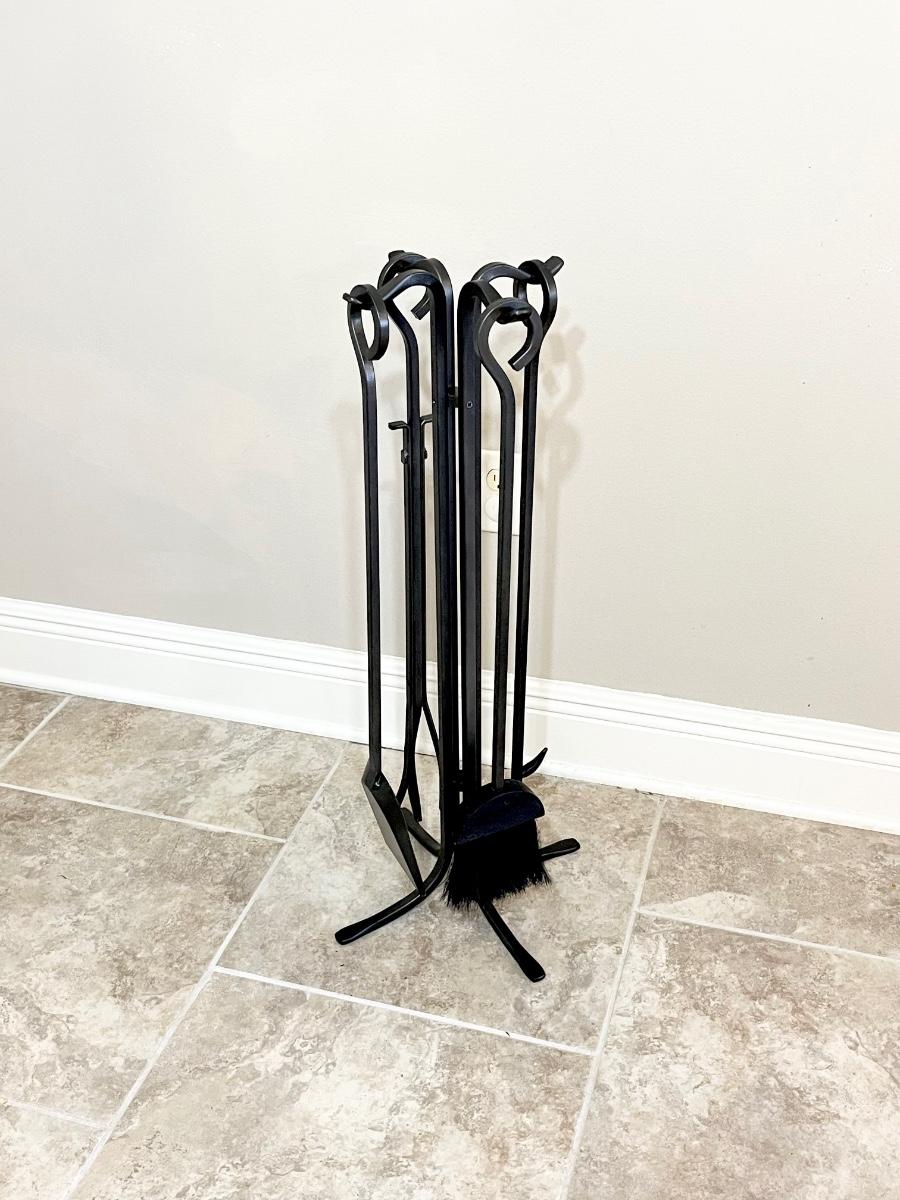 Black Metal 5 Piece Fireplace Accessories Set ~ Like New