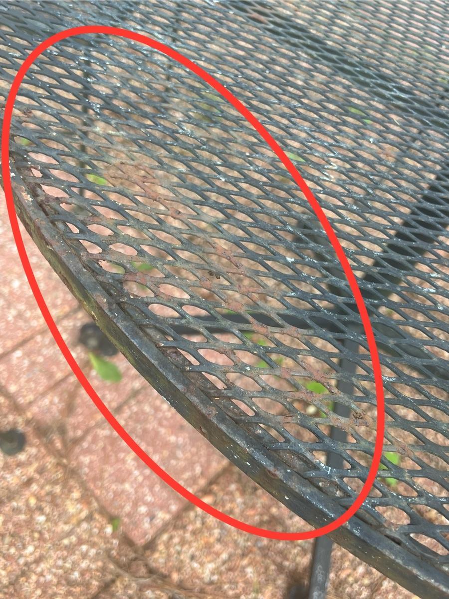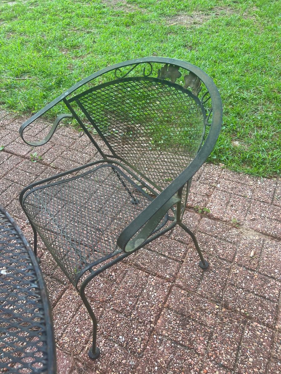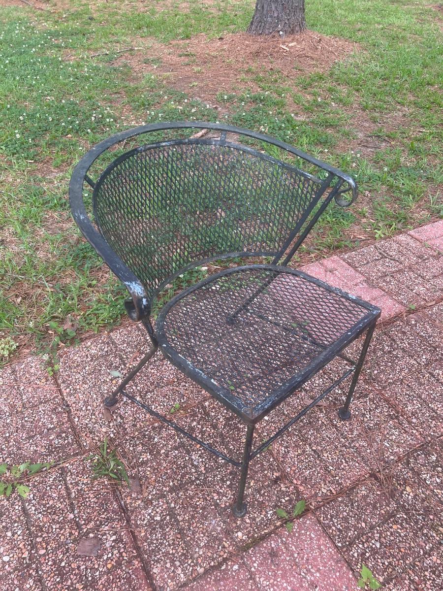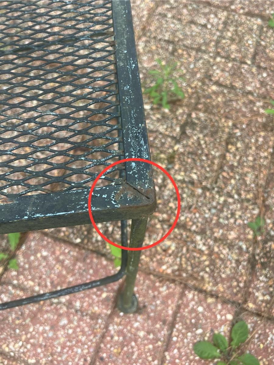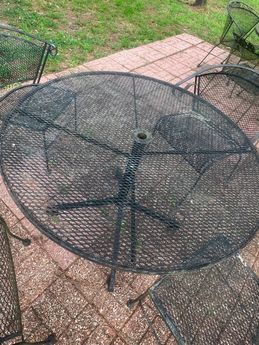 This set has 2 floral top chairs & 2 regular chairs ~ Has minor surface rust, see photos ~ It does have more surface rust than the other sets ~ Table = 29” H x 41.5” Round ~ Daddy long legs included ;)