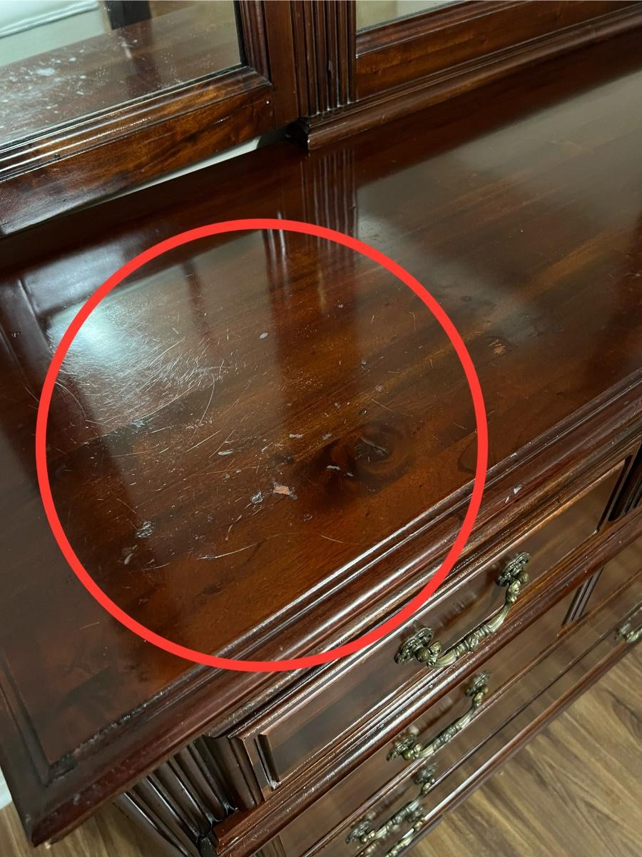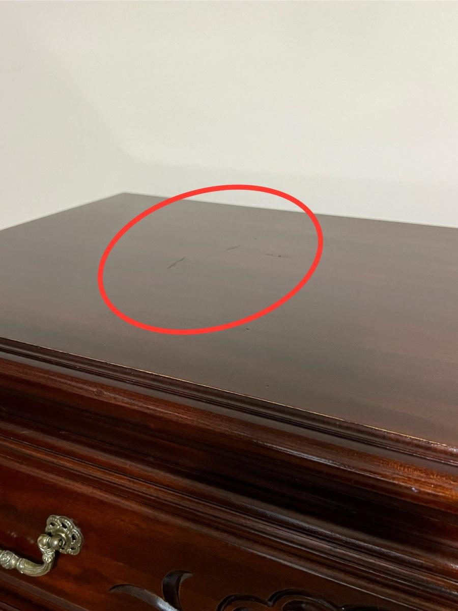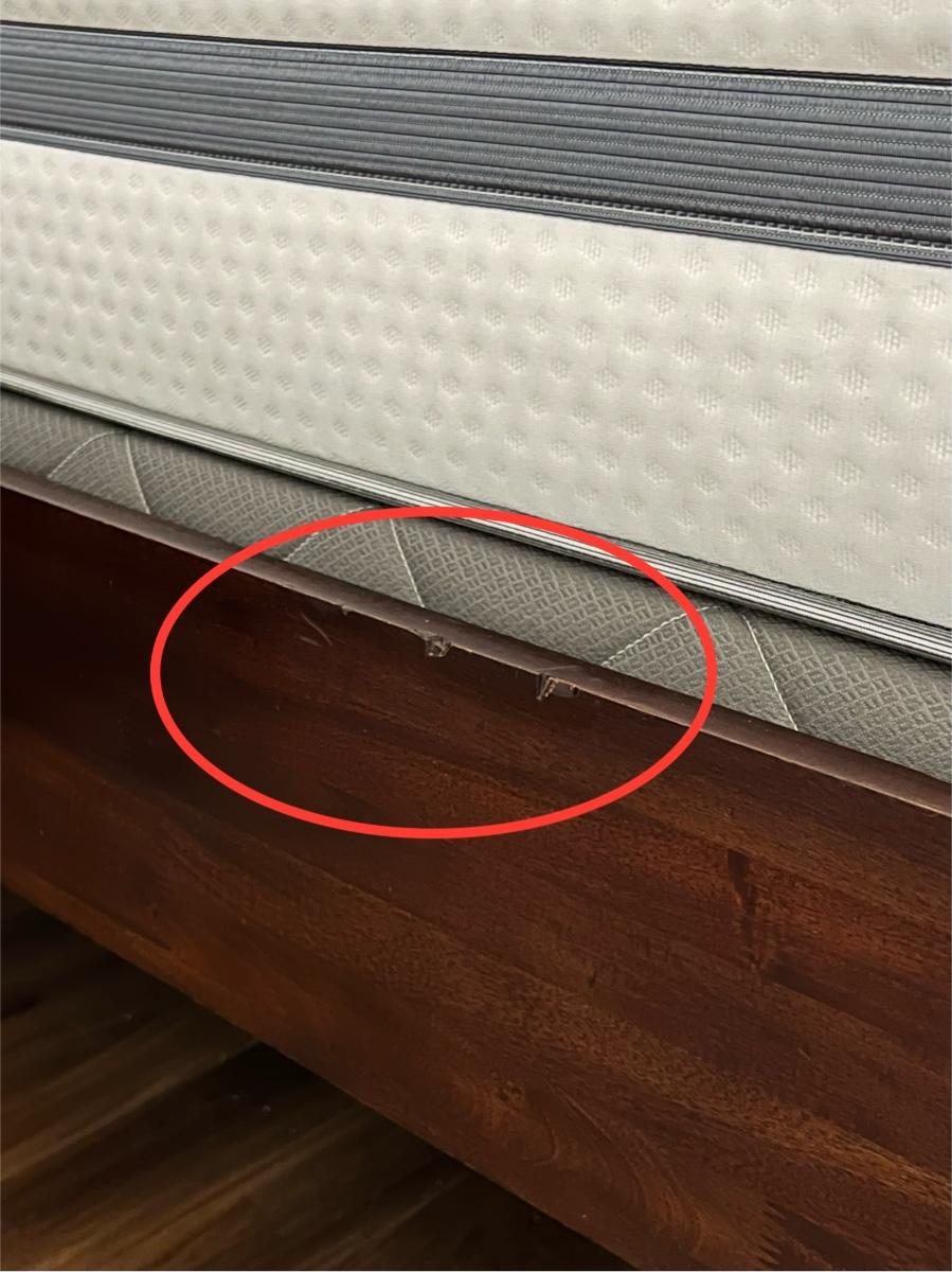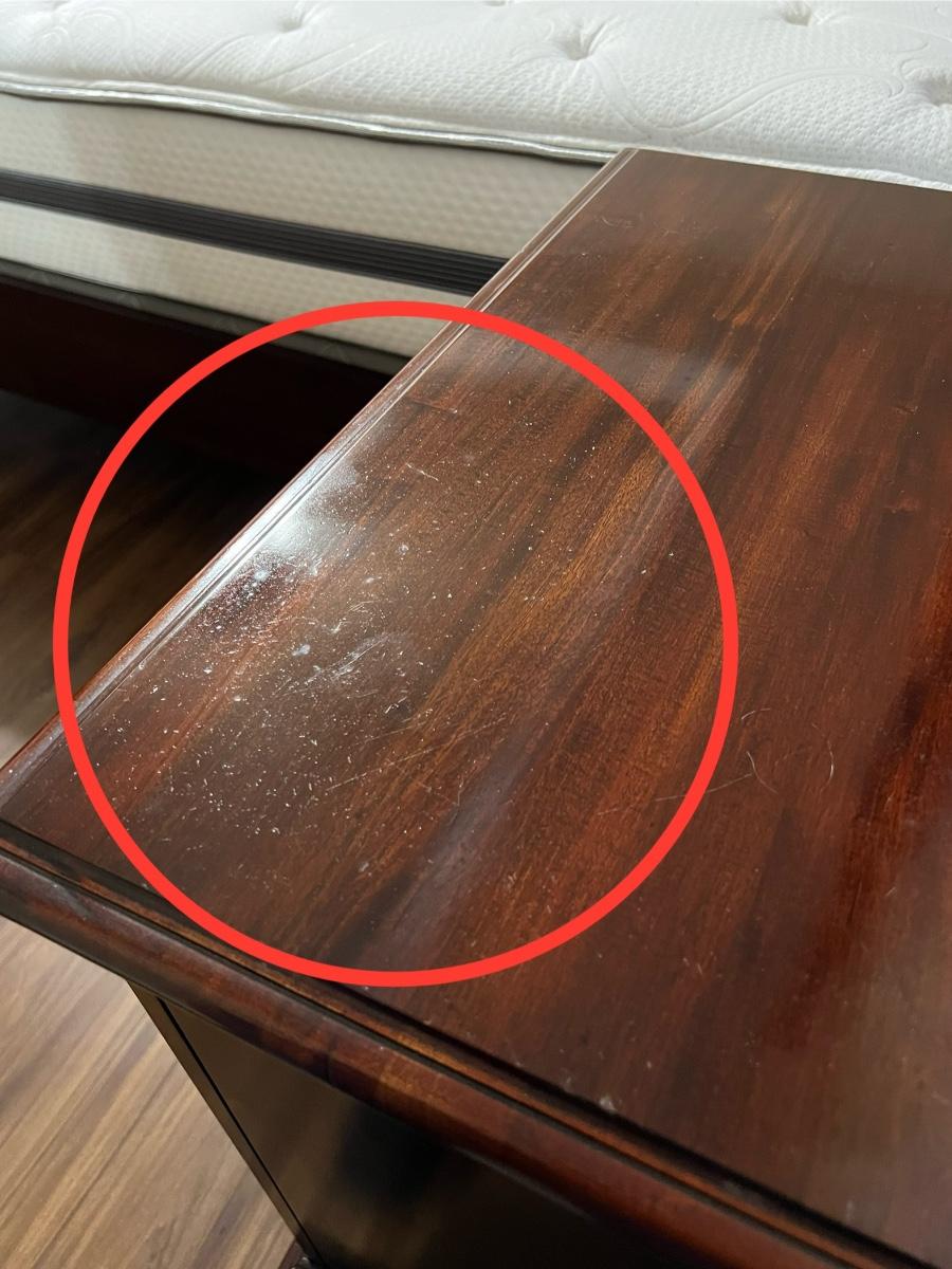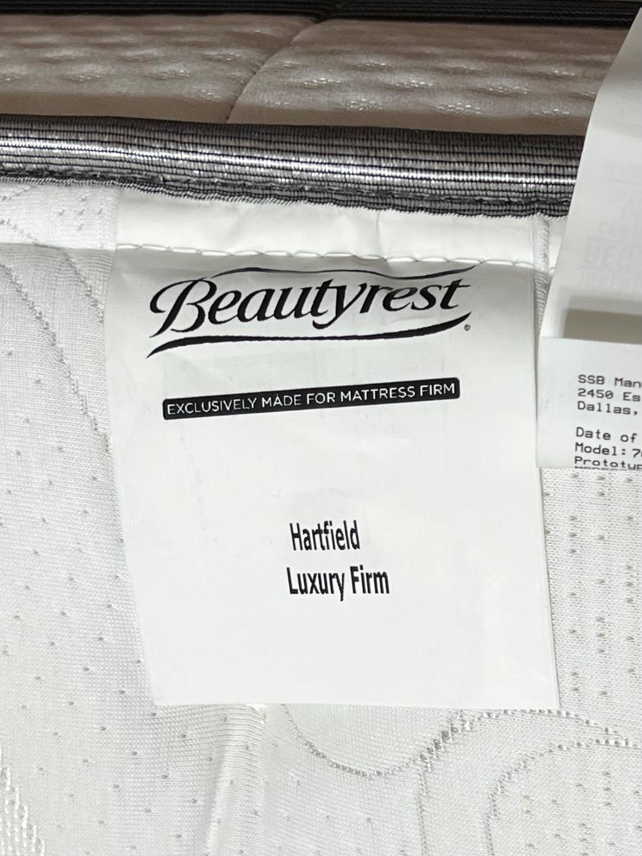 Includes: King 4 poster bed, (2) 2-drawer night stands, (1) 7-drawer mirrored dresser, (1) 5-drawer chest of drawers ~ Includes mattress & boxsprings ~ Mattress has been disinfected, deodorized, & sanitized ~ All drawers slide easy ~ Pieces do have some minor surface scratches due to use, see photos ~ No brand ~ Bed = 88” H ~ Nightstands = 29” H x 24” W x 17” D ~ Mirrored dresser = 35” H x 64” W x 17.25” D ~ Trifold mirror = 49” H ~ Chest of drawers = 56” H x 37” W x 18” D