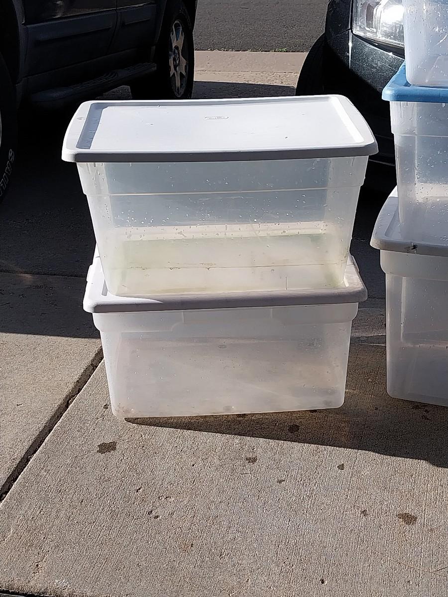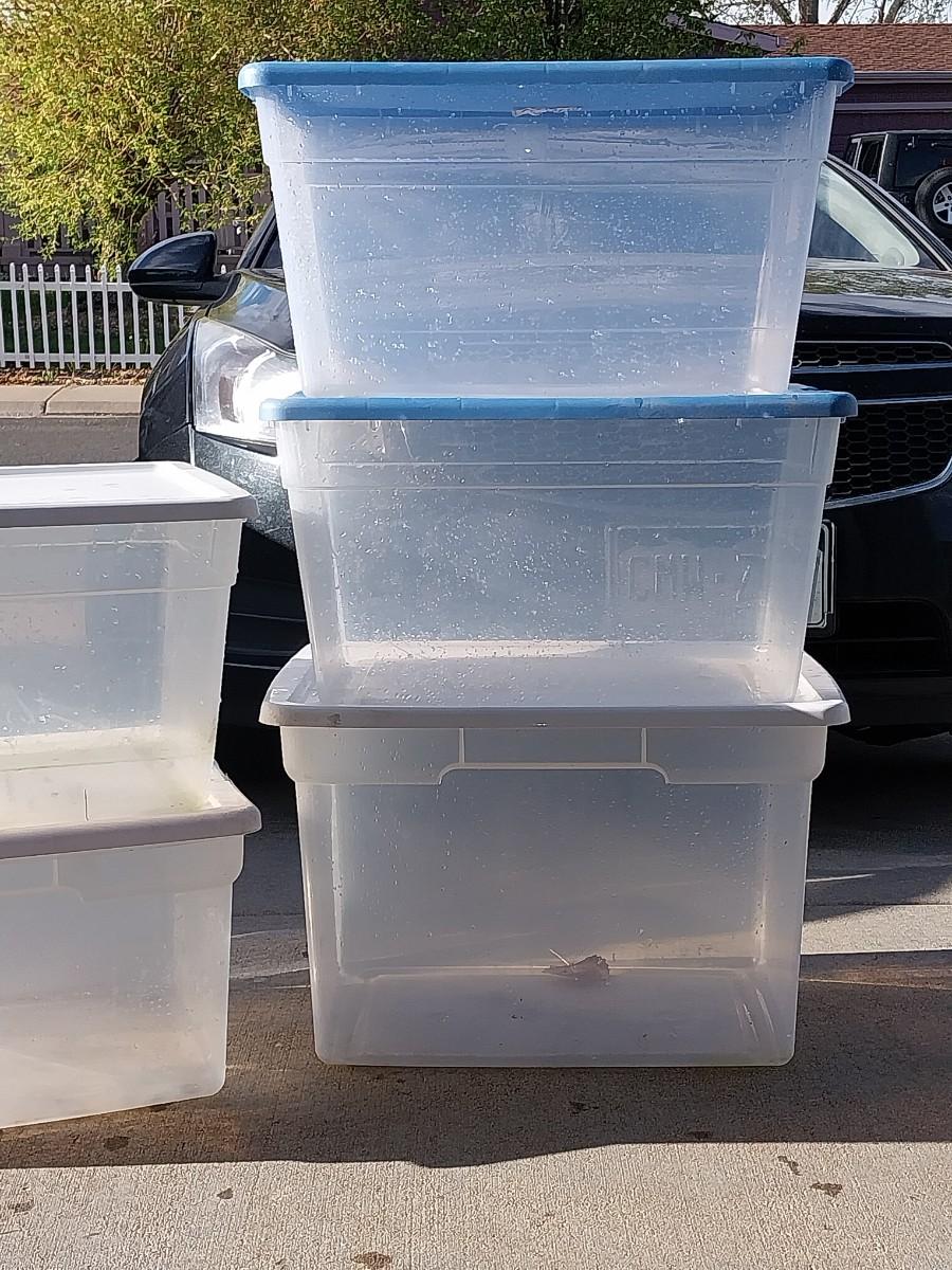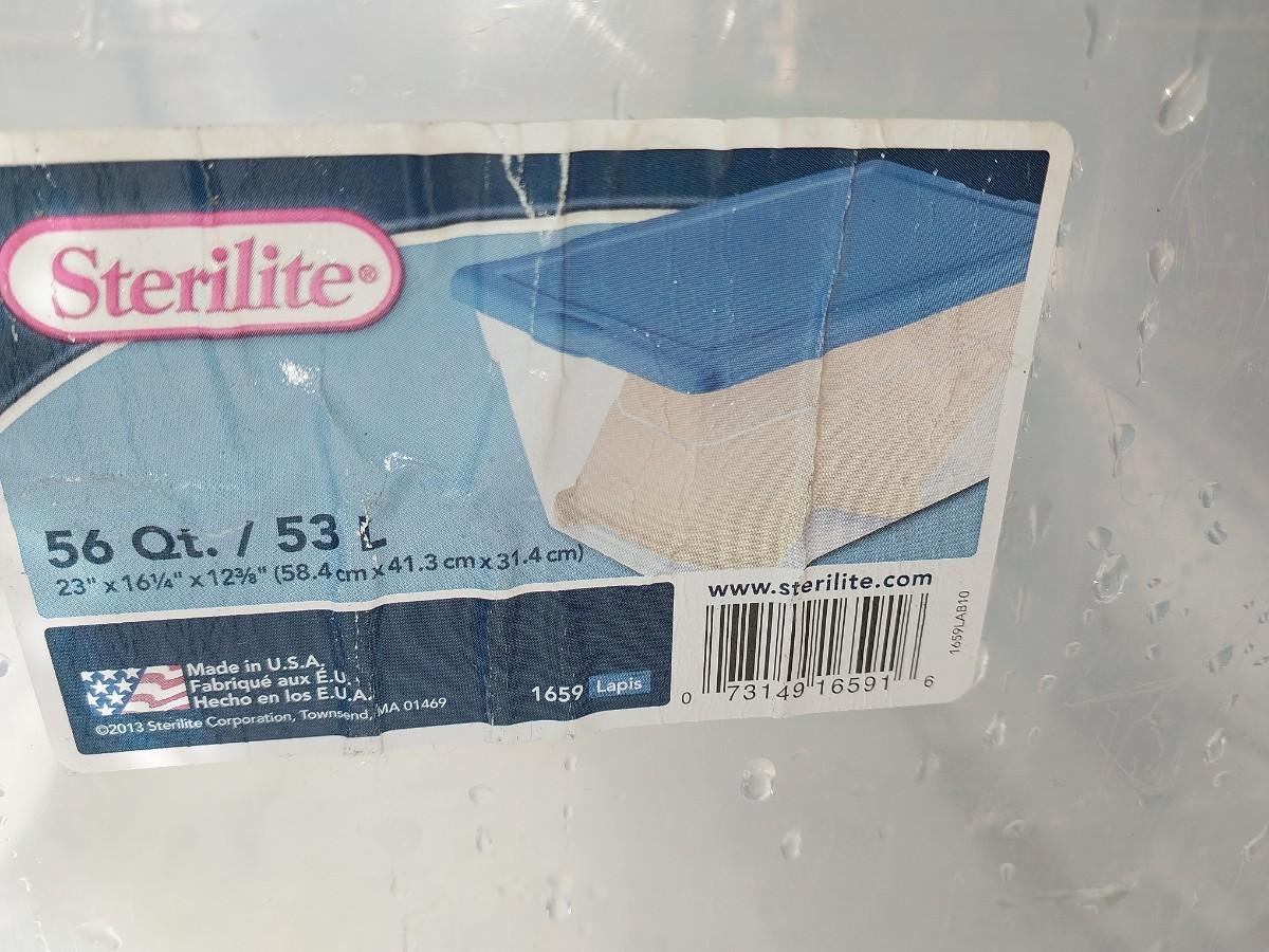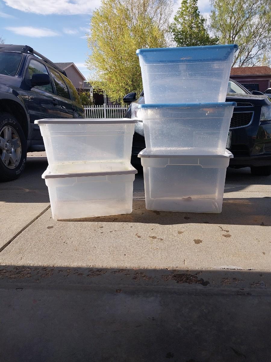 FIVE 56QT CLEAR STERILITE TOTES WITH LIDS