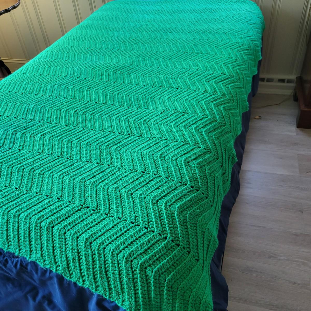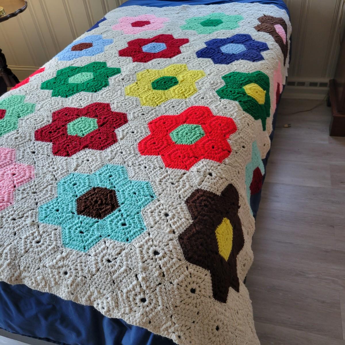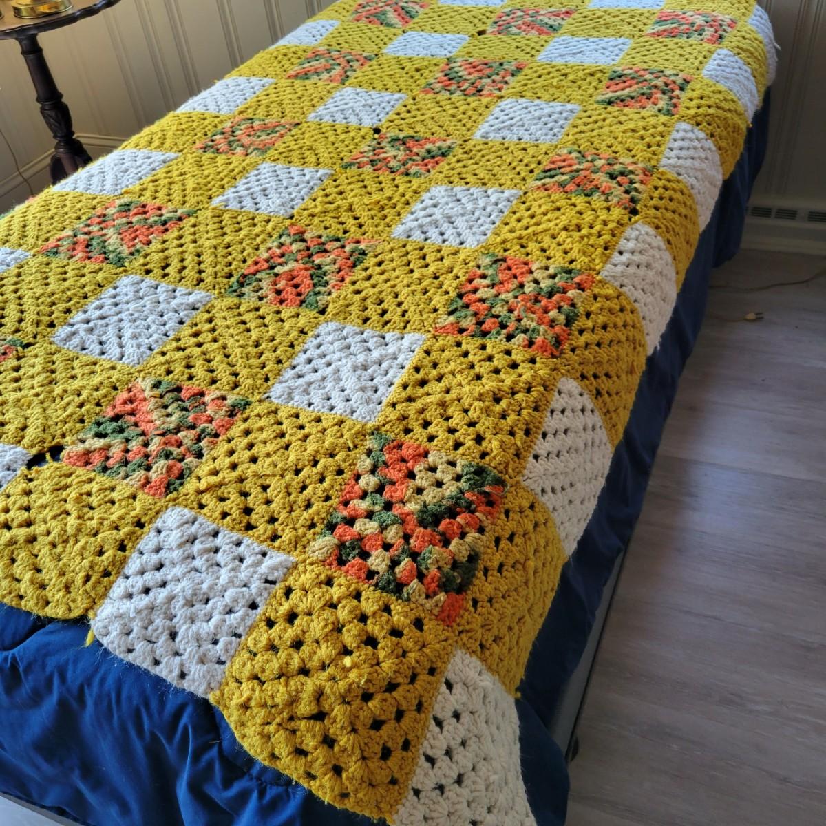 An assortment of five afghans and a wool blanket in good condition. One afghan does have a few areas that are pulling apart, see attached pictures for more detail. The bed (not included) they are displayed on is a size single for reference. The wool blanket measures approximately 82" x 87" and the white afghan measures approximately 74" x 86".