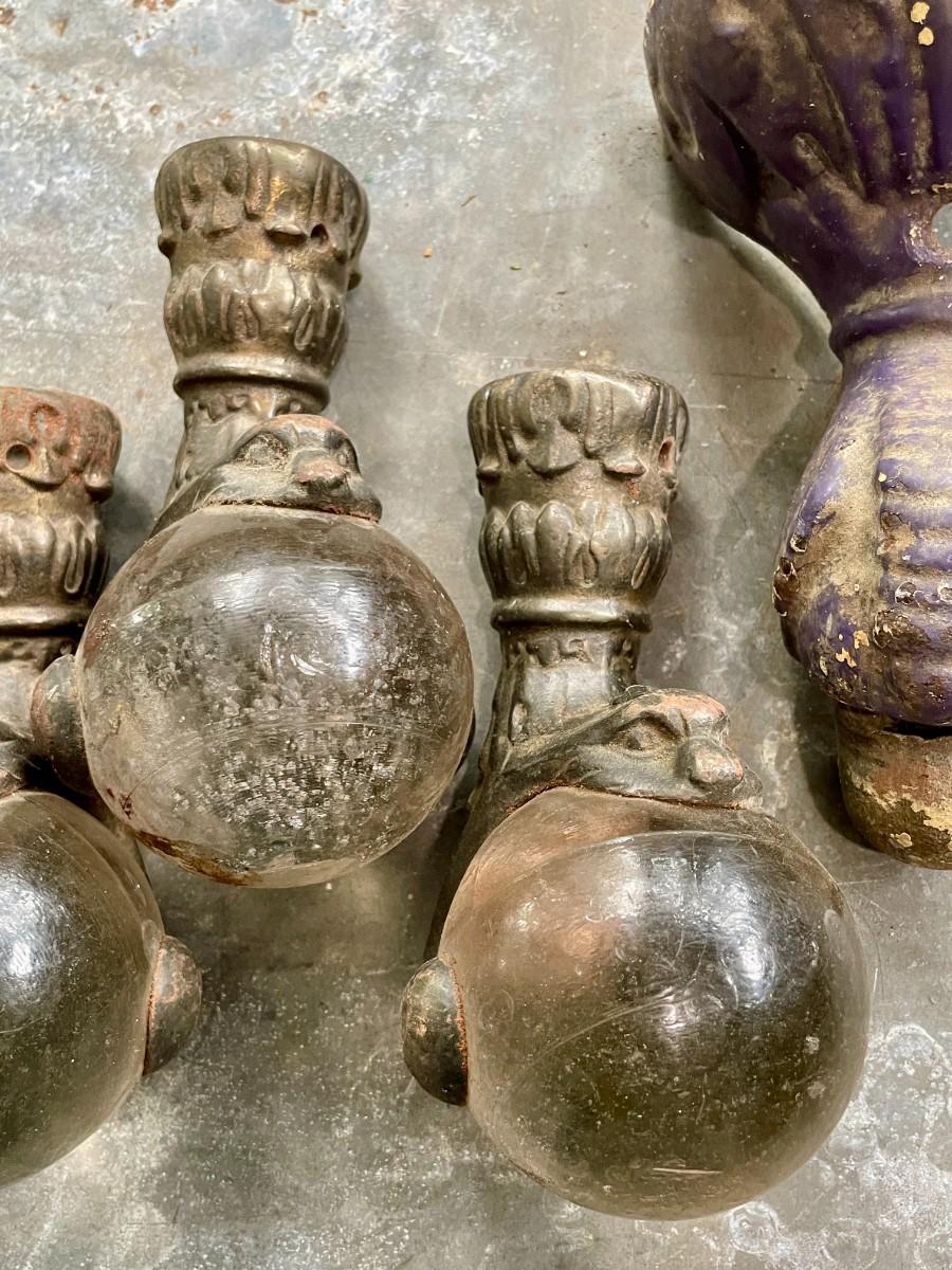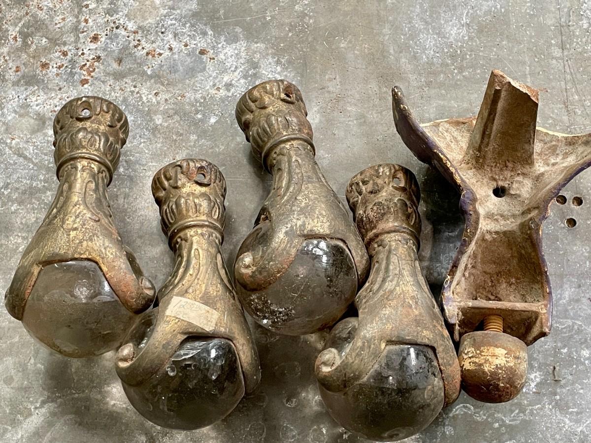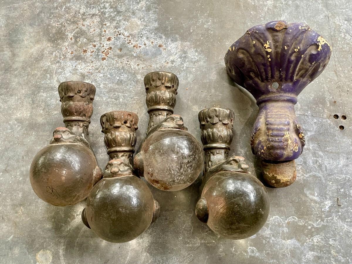 Five antique ball & claw furniture feet