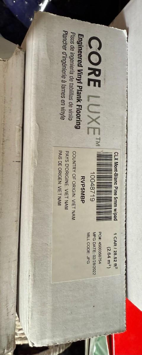 Five Boxes of CoreLuxe Vinyl Plank Flooring