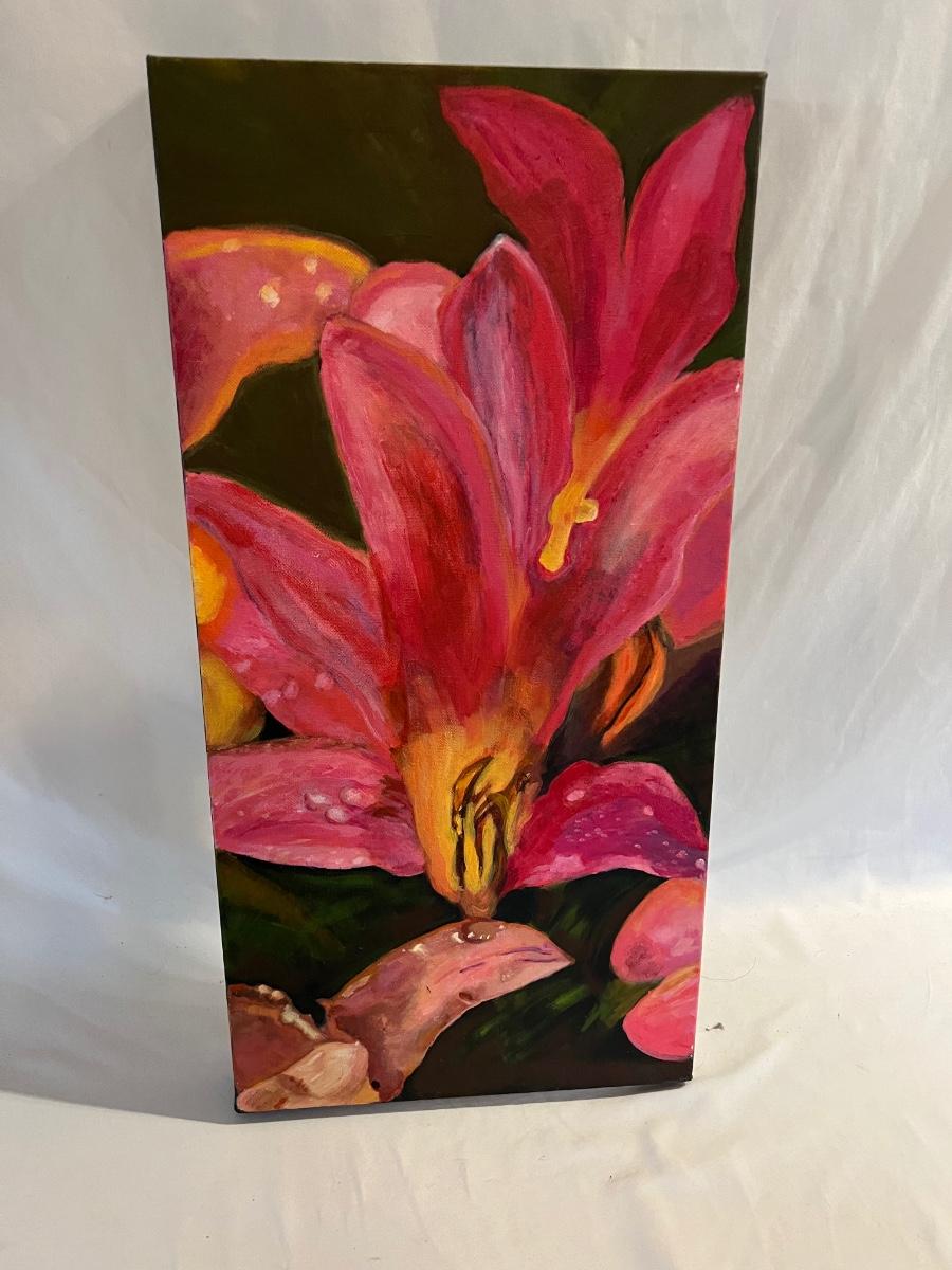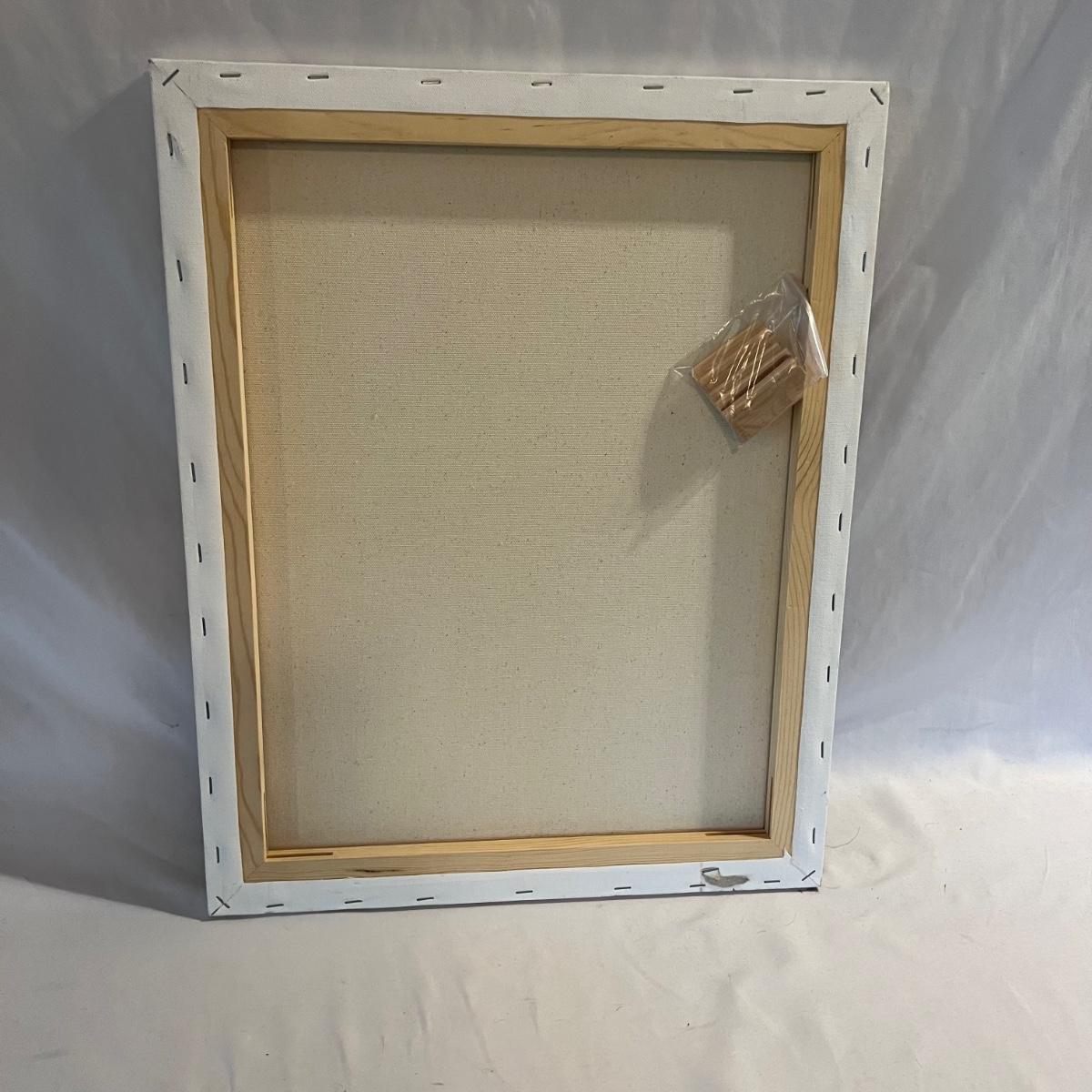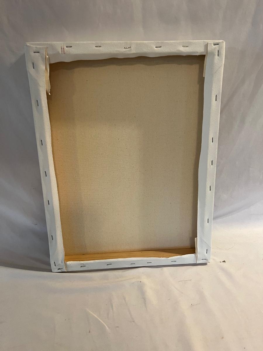 Canvas sizes are one 16x20, one 12x24, one 14x18, and two flat 12x16. Also included is an opened roll of heavyweight rag drawing paper 36” x 5 yards 130#.