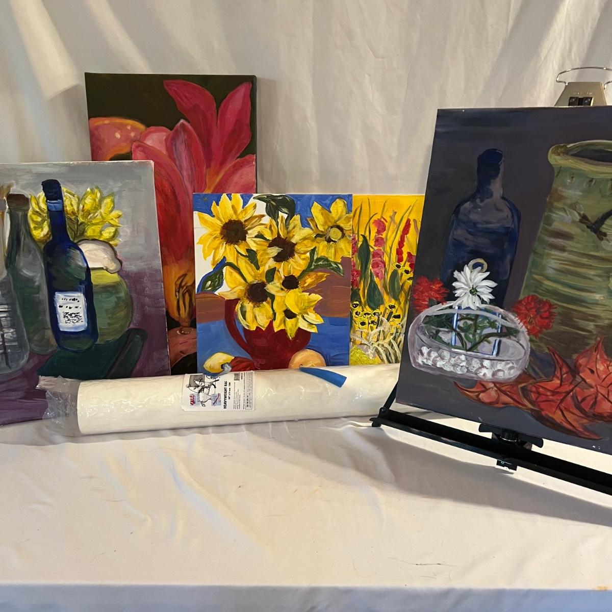 Five Canvas Paintings, Easel and Drawing Paper (B2-MK)