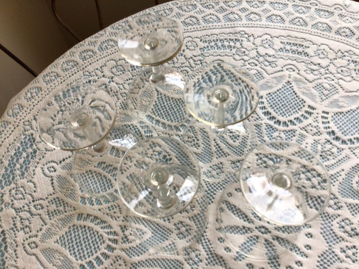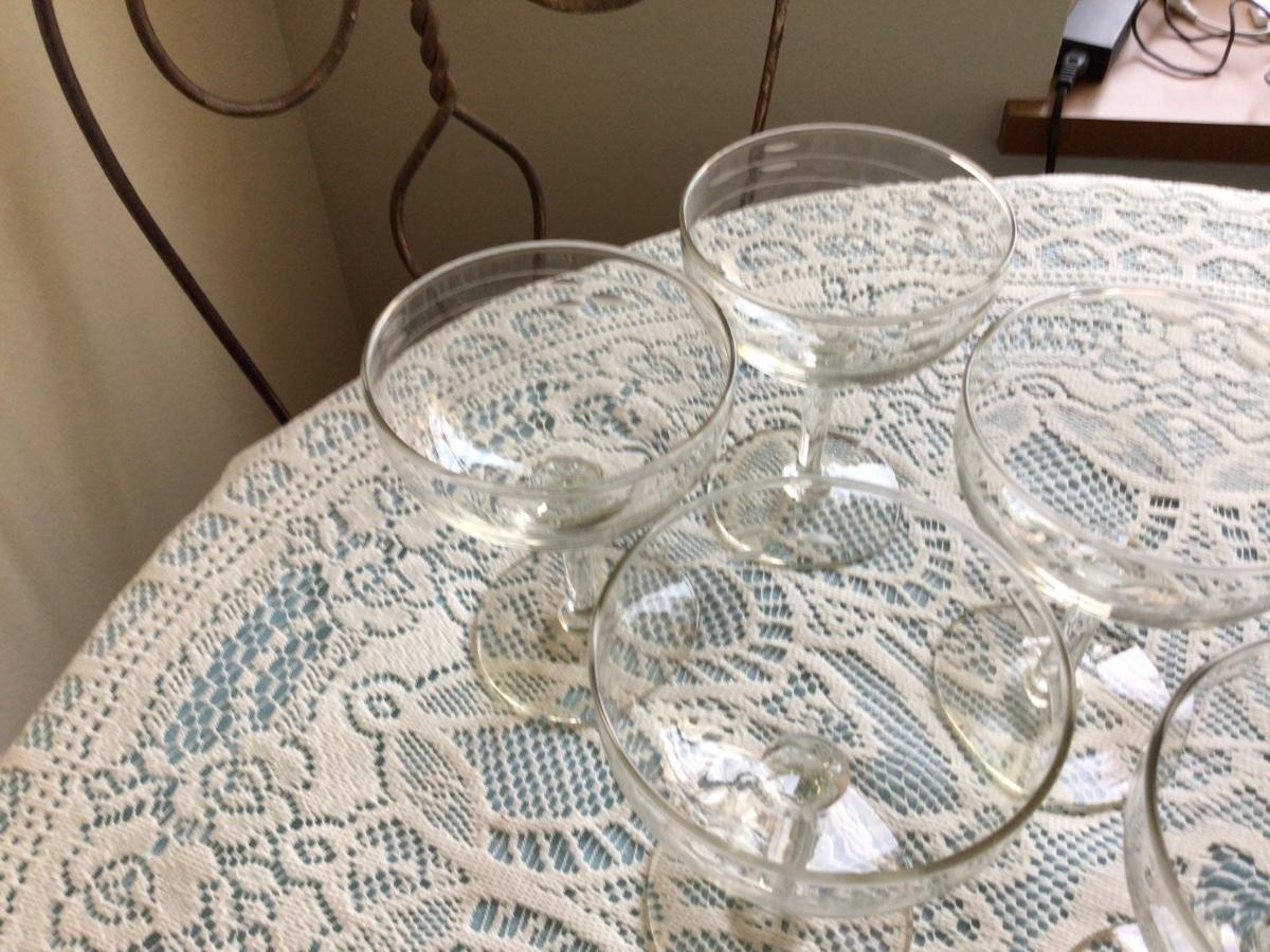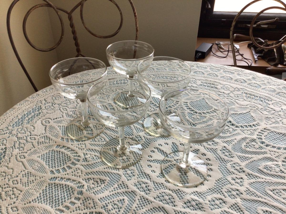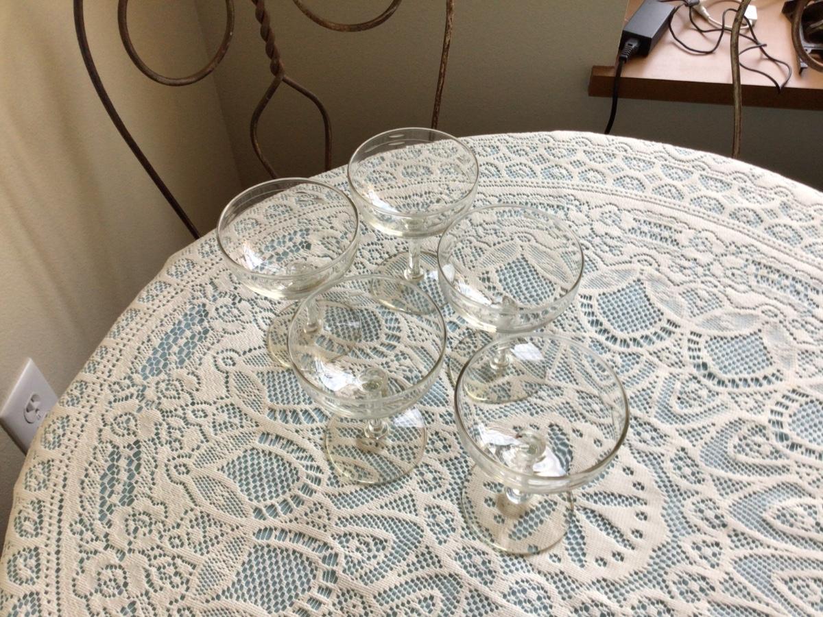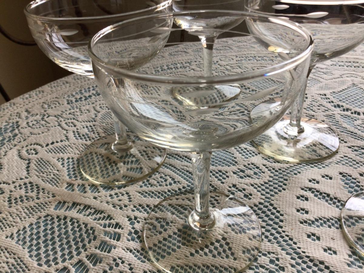You get 5 champagne glasses. The have same etched leaves as the Princess House but no labels. I believe they are Princess House.