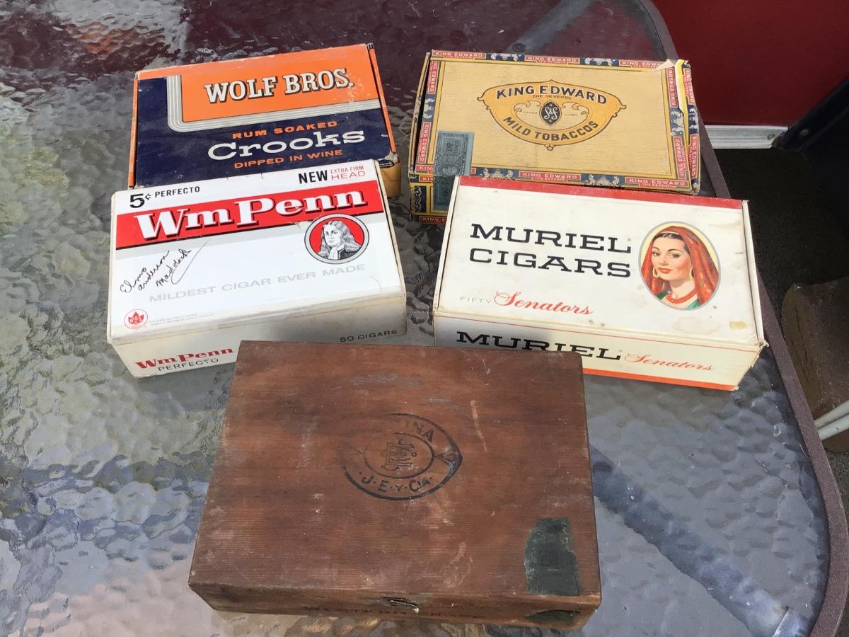 Four are cardboard, one is wood