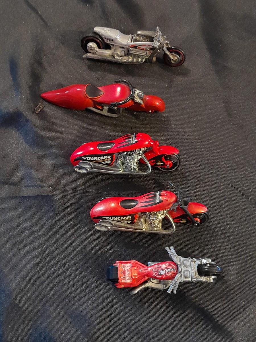 FIVE COLLECTABLE HOT WHEELS MOTORCYCLES