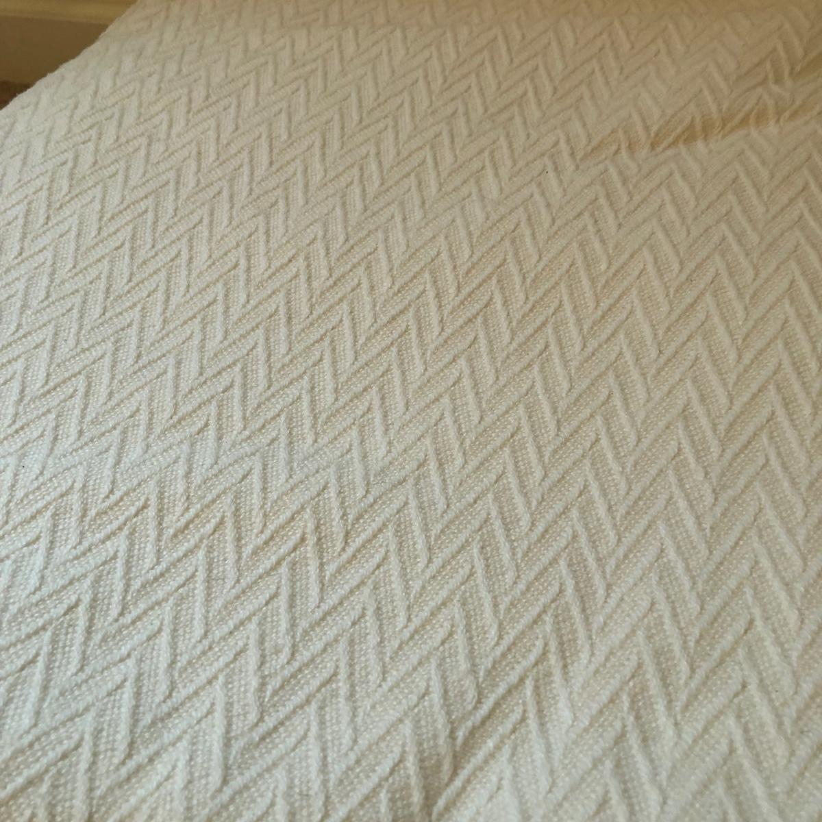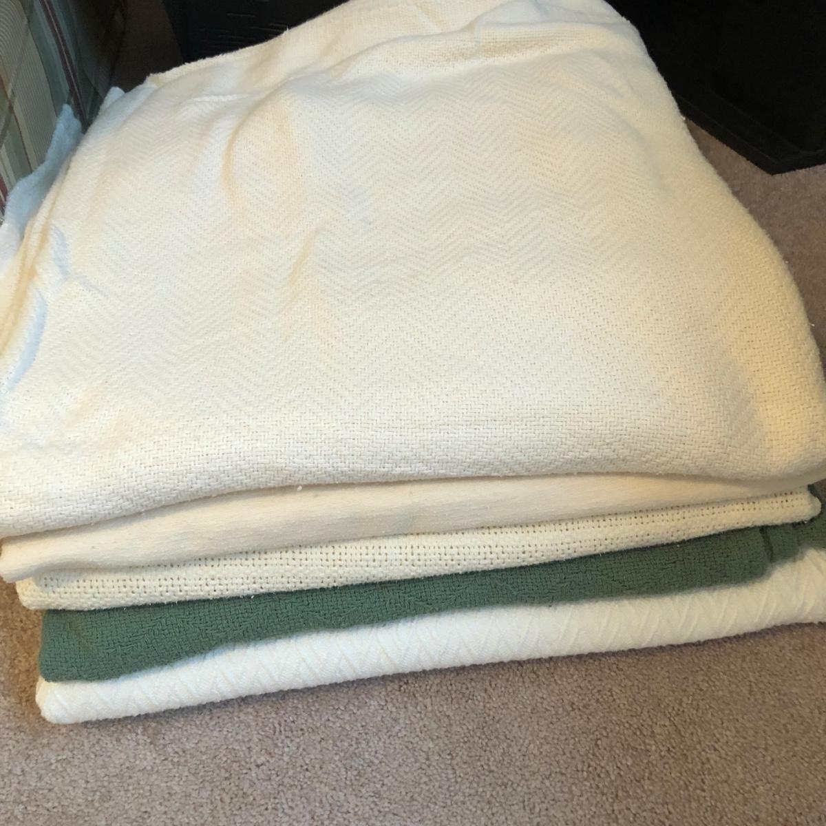 This lot includes 5 blankets - all regular sizes to fit your bed. All are clean and free of stains. Largest blanket measures 86” x 86”. Local pick up only.