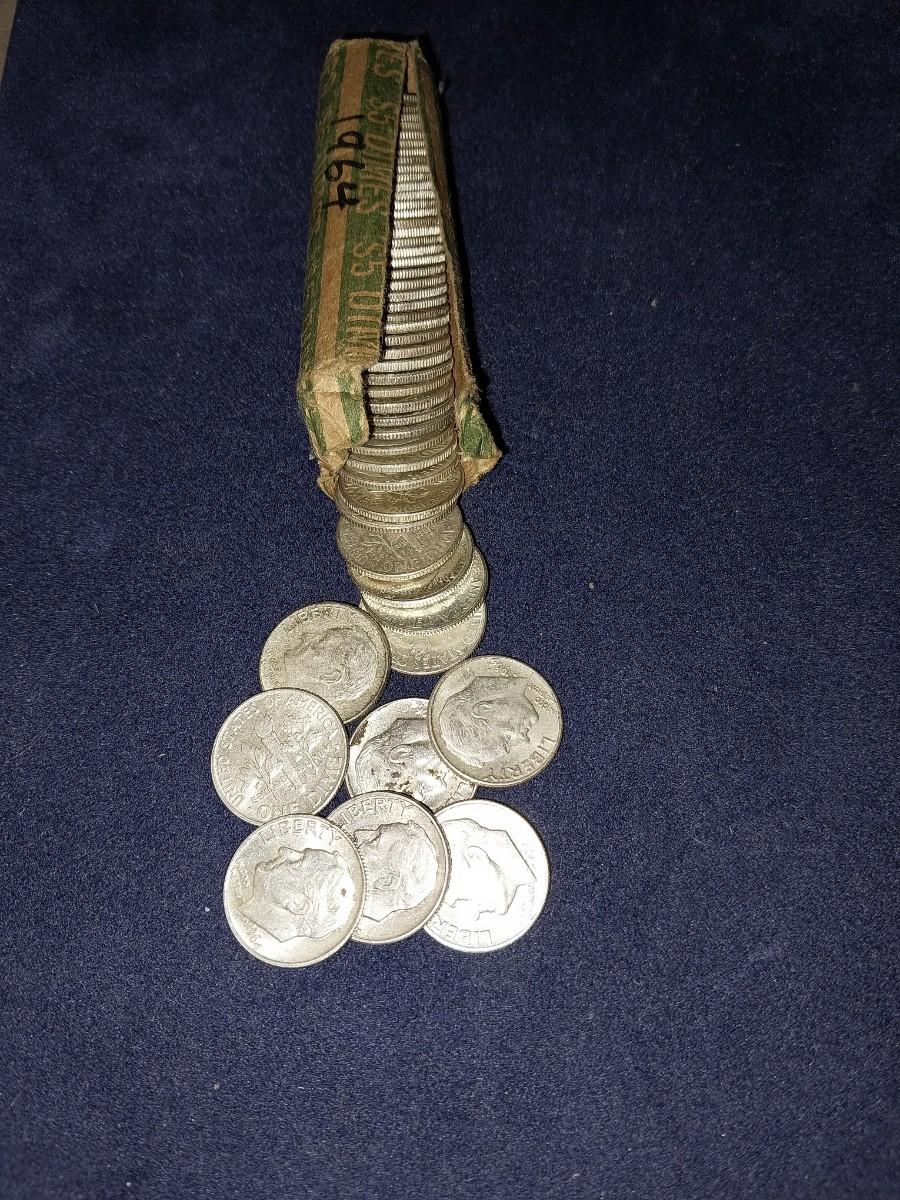 FIVE DOLLAR ROLL OF 1964 SILVER DIMES