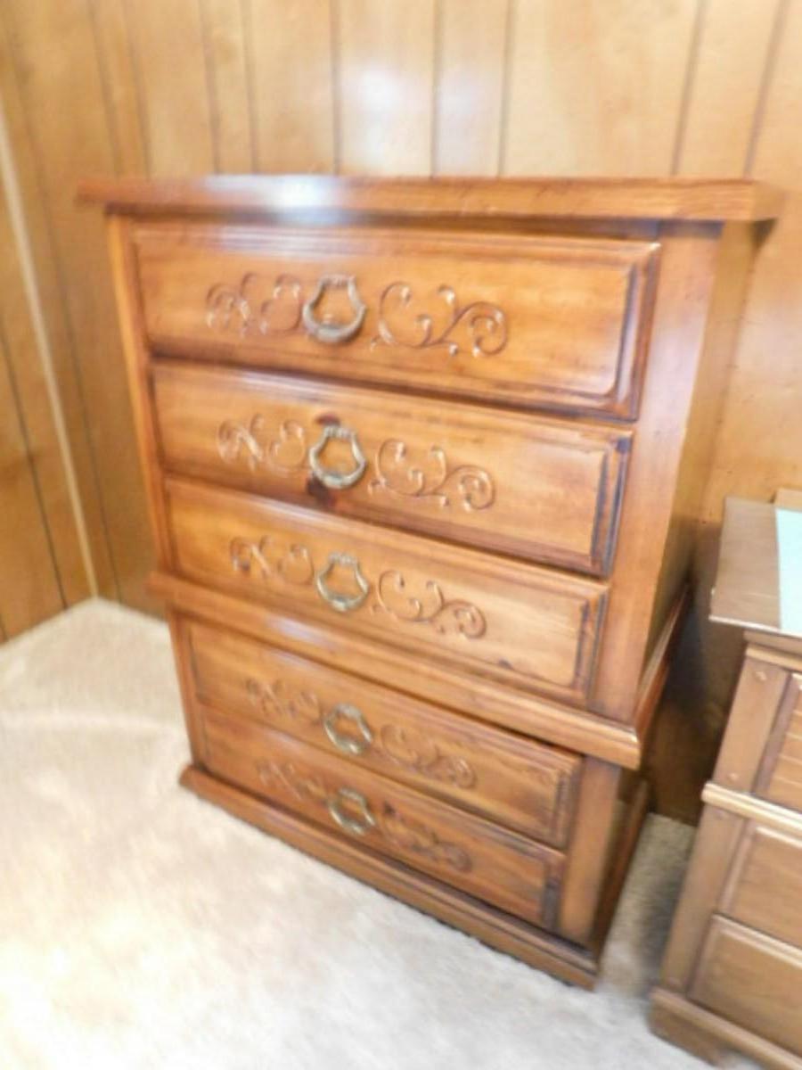 Five Drawer Wood Finish Dresser by LEA. Upstairs item. Please bring assistance to remove from home.