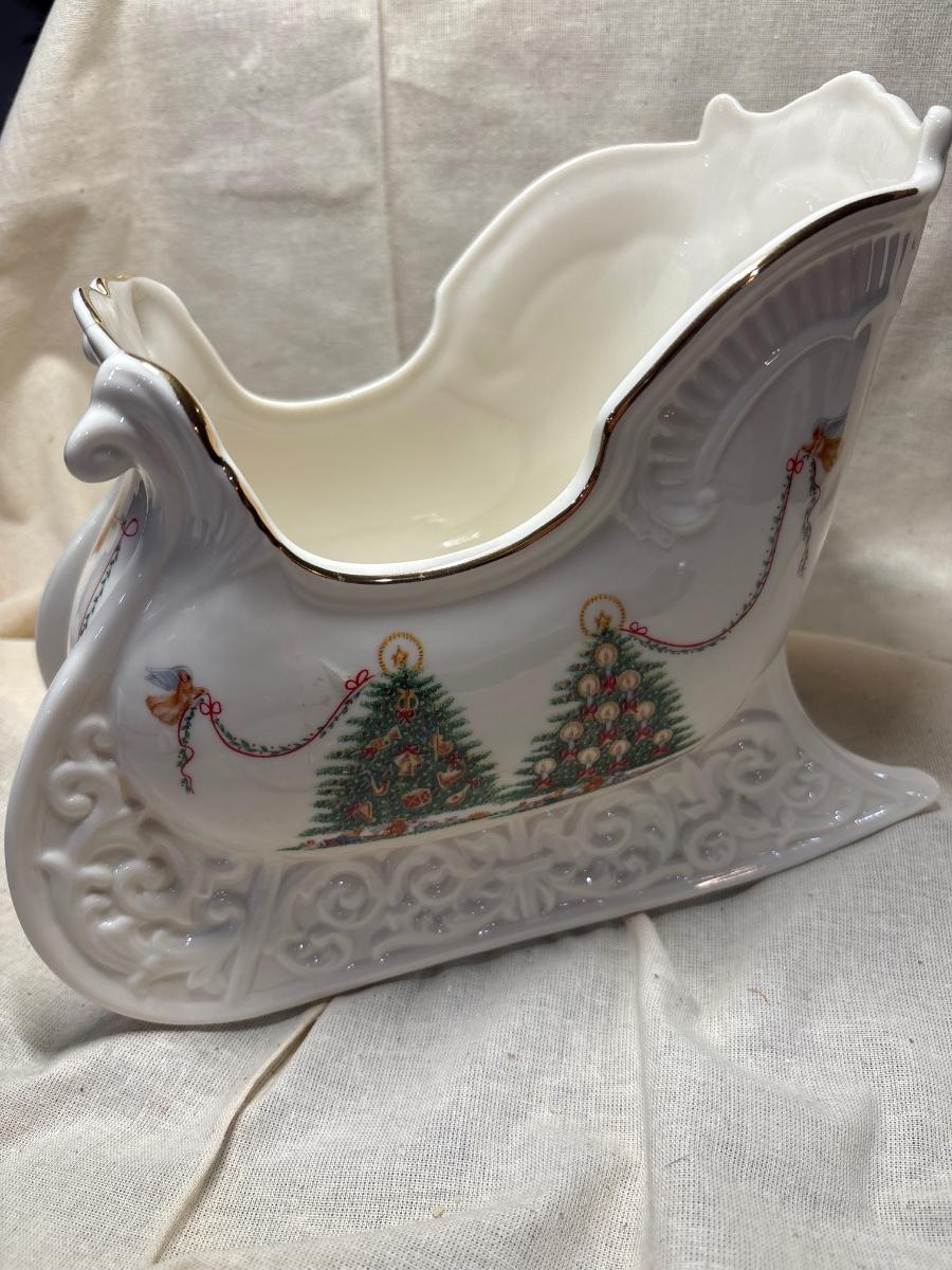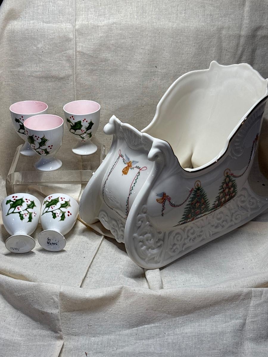 Holiday thoughts! The Joys of Christmas Sleigh Lenox. Five egg cups holly design made in Japan.