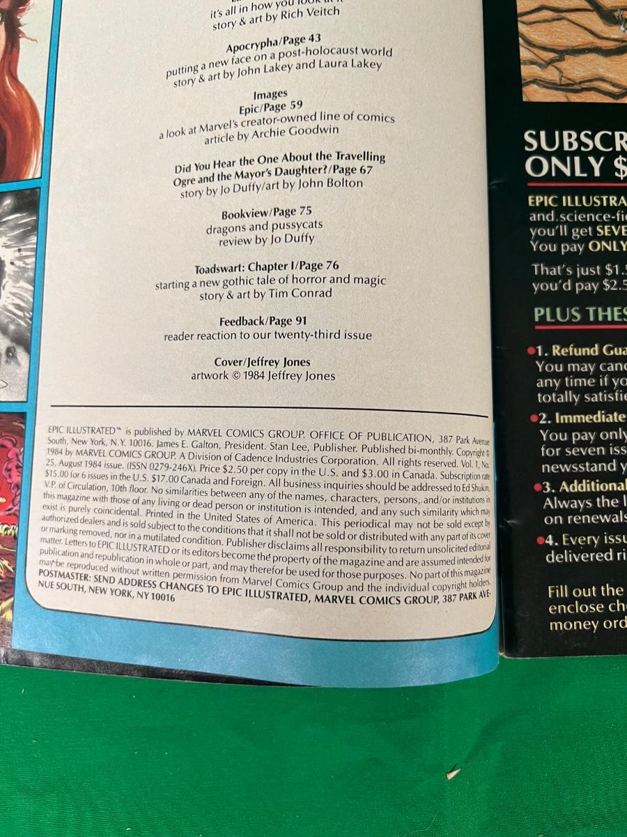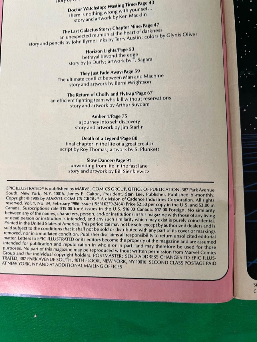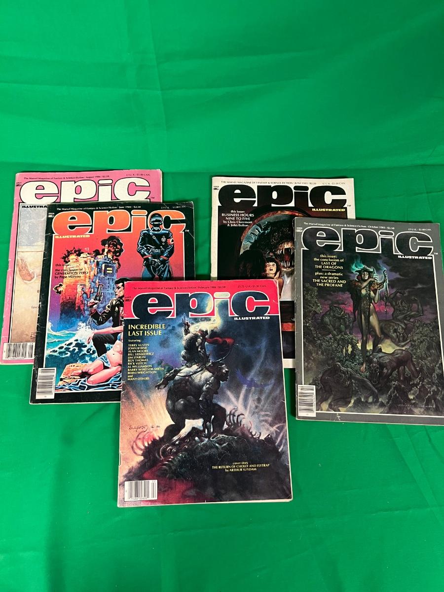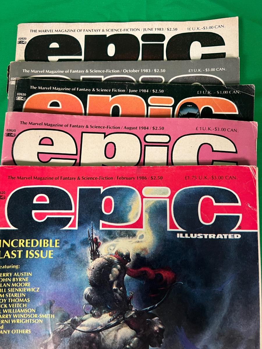 Five Epic Illustrated by Marvel Magazine of Fantasy & Science-Fiction. Dates are February 1986, August 1984, June 1984, October 1983, and June, 1983.