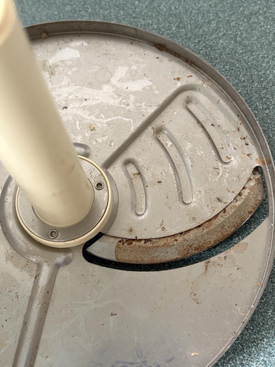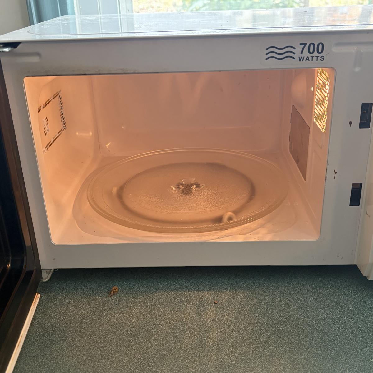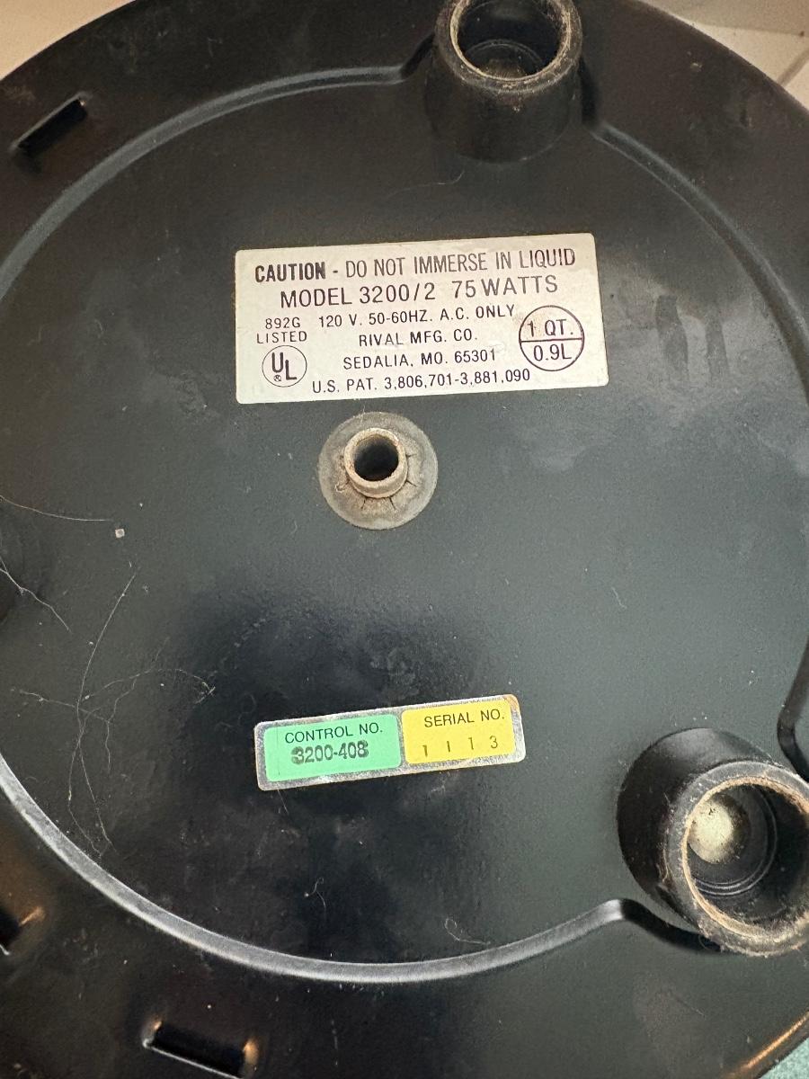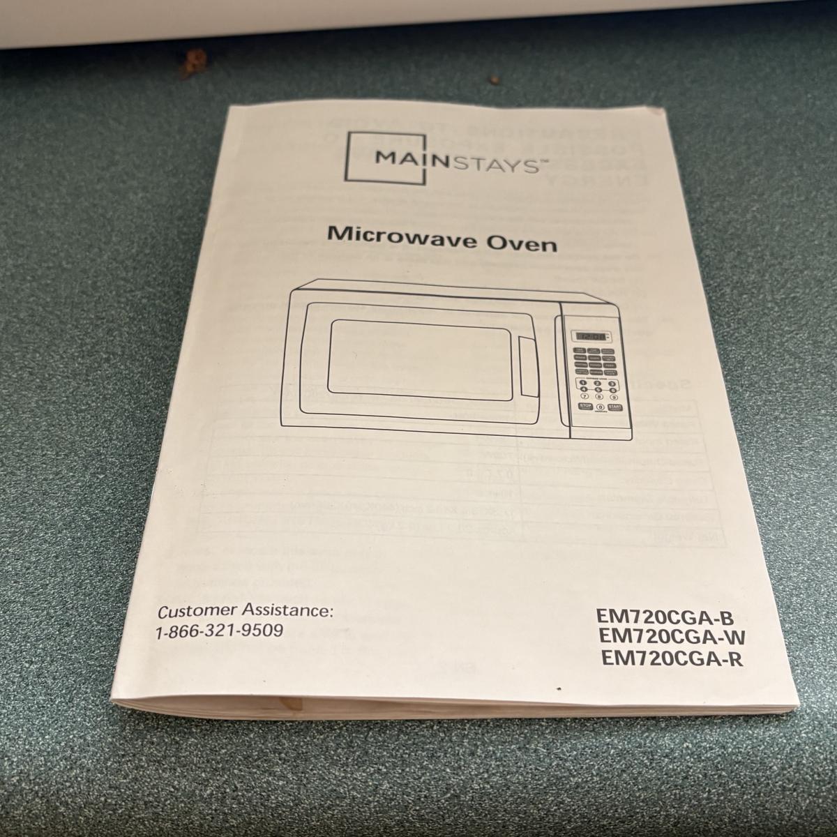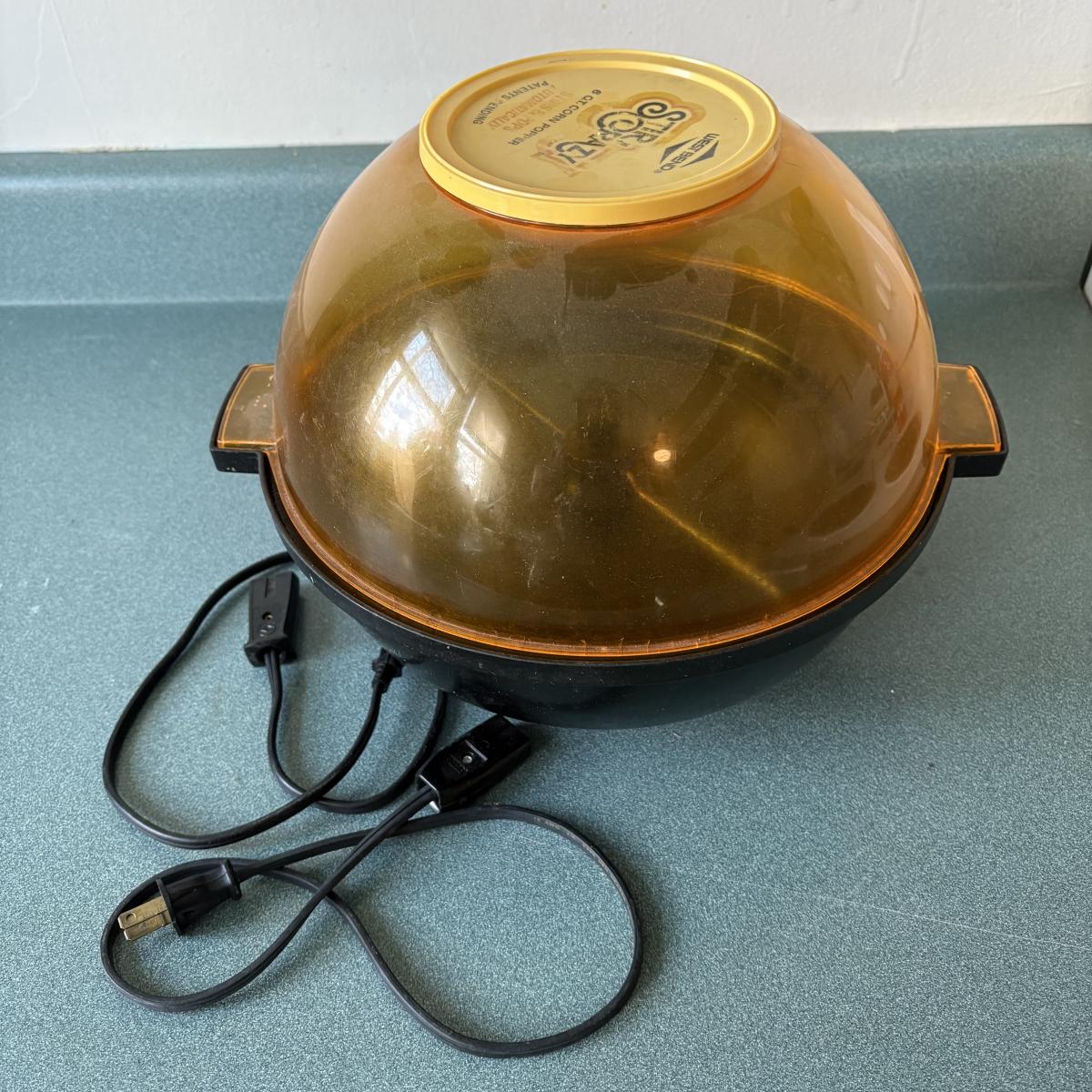 Cuisinart food processor w/chopping, slicing, and grating blades. Slicing blade needs some TLC. Mainstays 700-watt microwave oven measures 17” x 11.5” x 10H. Rival Crockette one-quart slow cooker. West Bend six-quart corn popper. Hamilton Beach hand blender w/chopper and whisk attachments. All powered on when plugged in.