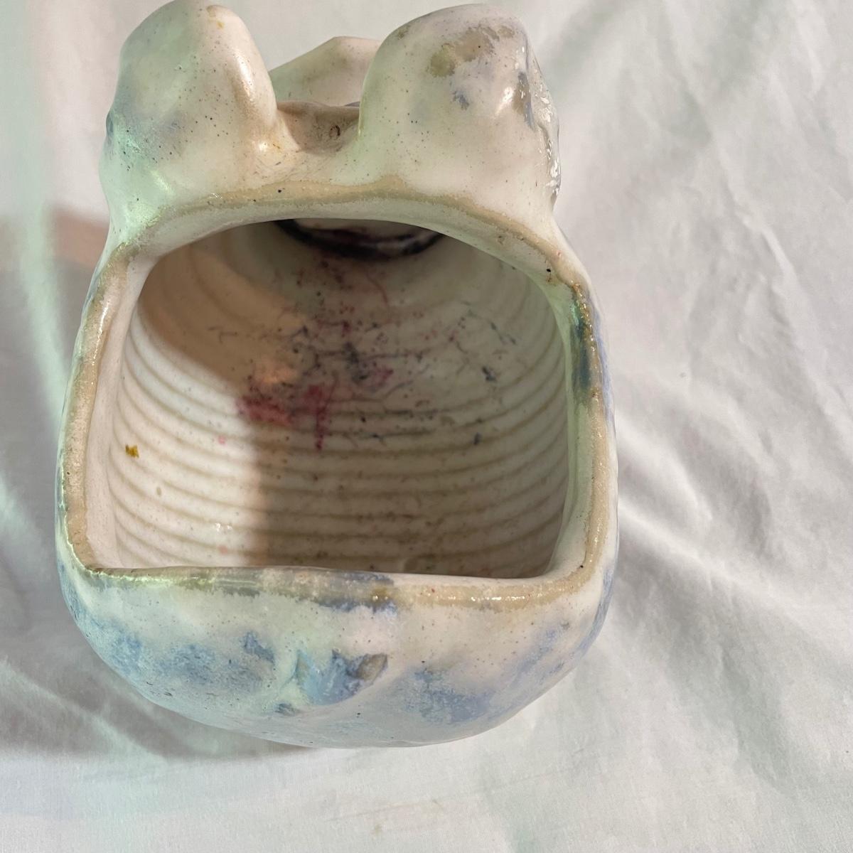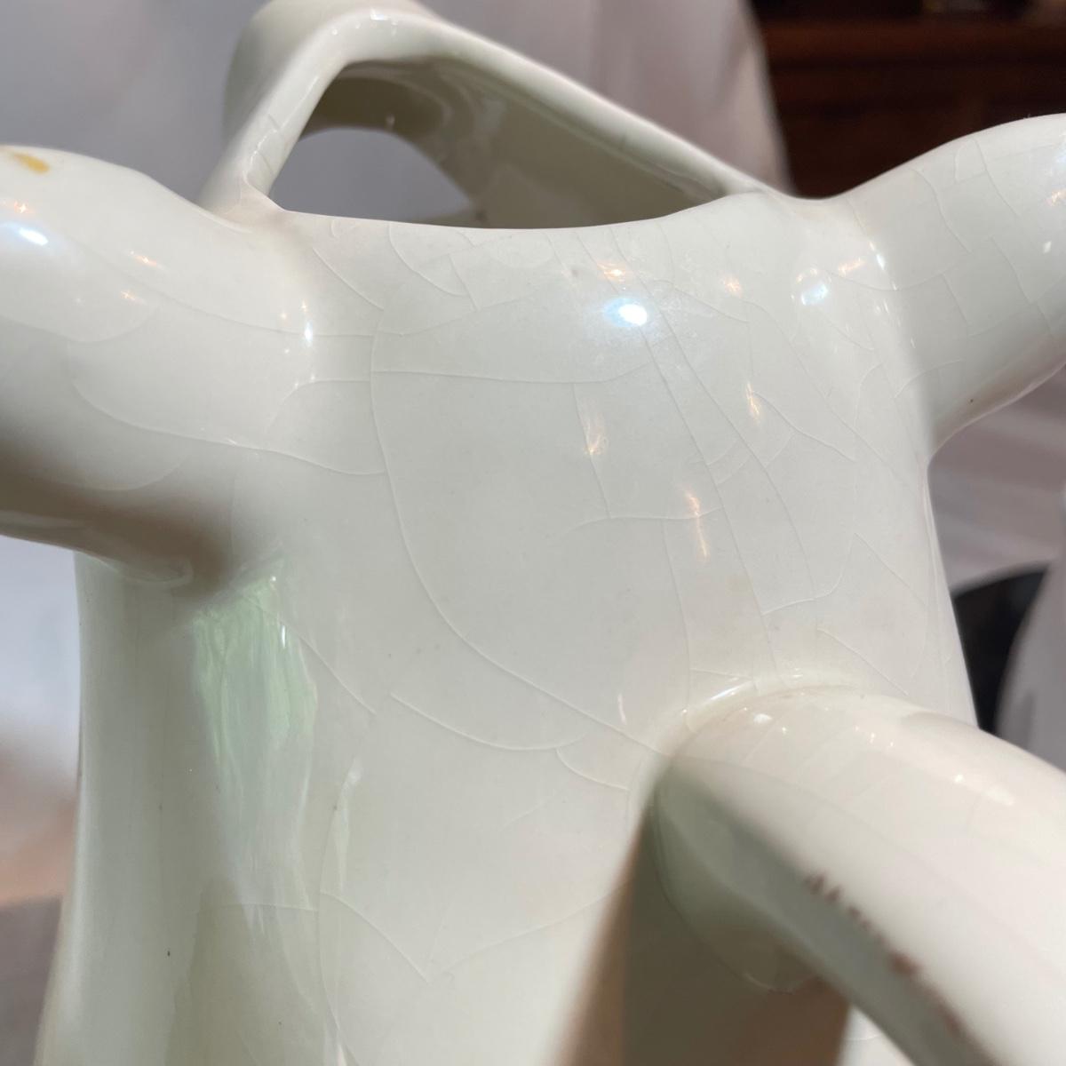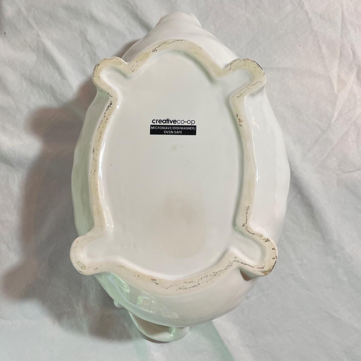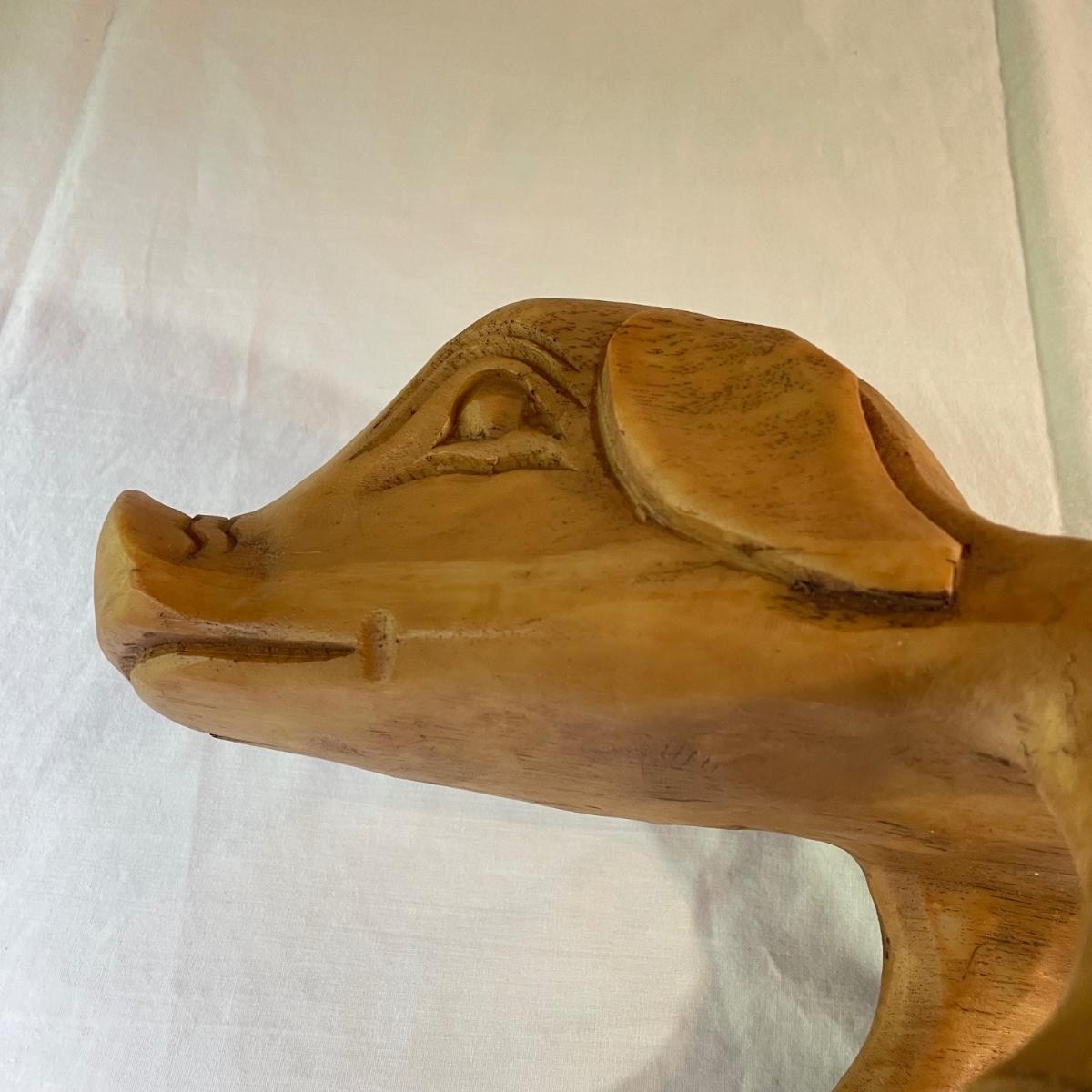 A sweet set of five unique pig dishes and decor. The blueish open-topped ceramic pig likely held pens or markers at some point, the specks inside appear to be ink. The fun pig pitcher shows some crackling and is marked “food safe”. Lot also features a carved wooden tray and a white ceramic bowl from Creative Co-Op. The black pig dish looks like cast iron, but it’s much lighter and likely resin-based. The black pig is 15” x 10” x 2.75”H. Shipping available.